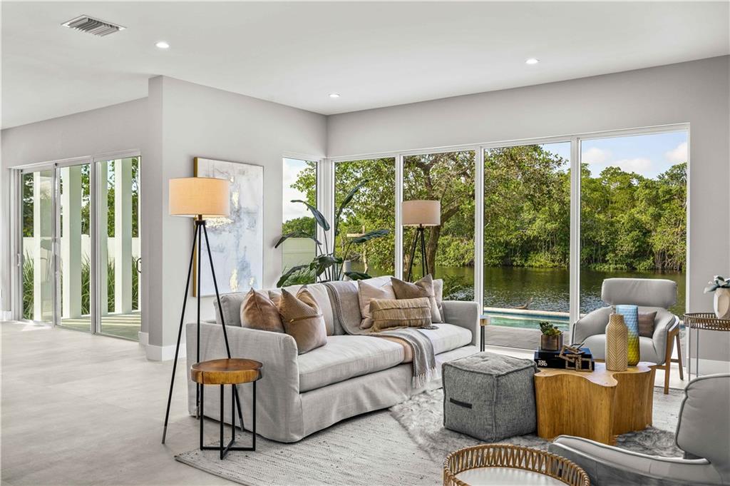 One of two remaining new construction riverfront residences located just a short walk to Wilton Drive. Entering through your private covered entryway, you step inside to a soaring 24' foot open foyer. The eyes pause with fascination gazing through a living room with walls of glass showcasing a private sun-drenched lap pool and a lush, jungle-like nature preserve on the sparkling Middle River. A Chef's kitchen has Euro-cabinetry, stainless appliances and large center island. Upstairs, is the primary suite with a covered balcony and 2 additional guest rooms with bath. Overlooking the first floor is a loft, perfect for your new home office. Other features include a 2 bay garage and optional elevator. Only 2 miles to Fort Lauderdale's famed sunny beaches, minutes to airport!