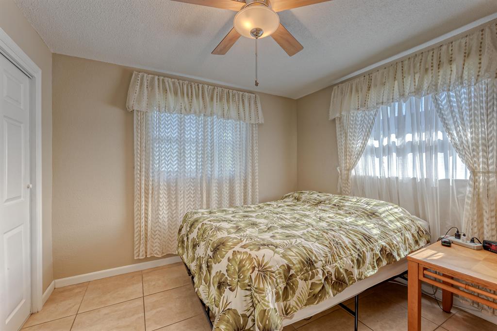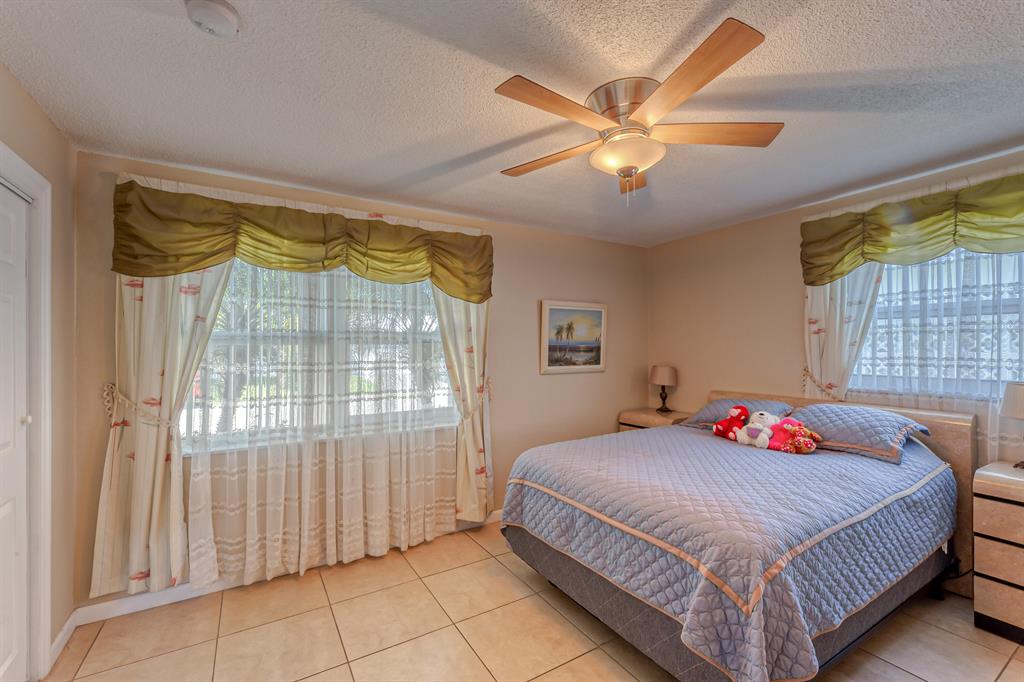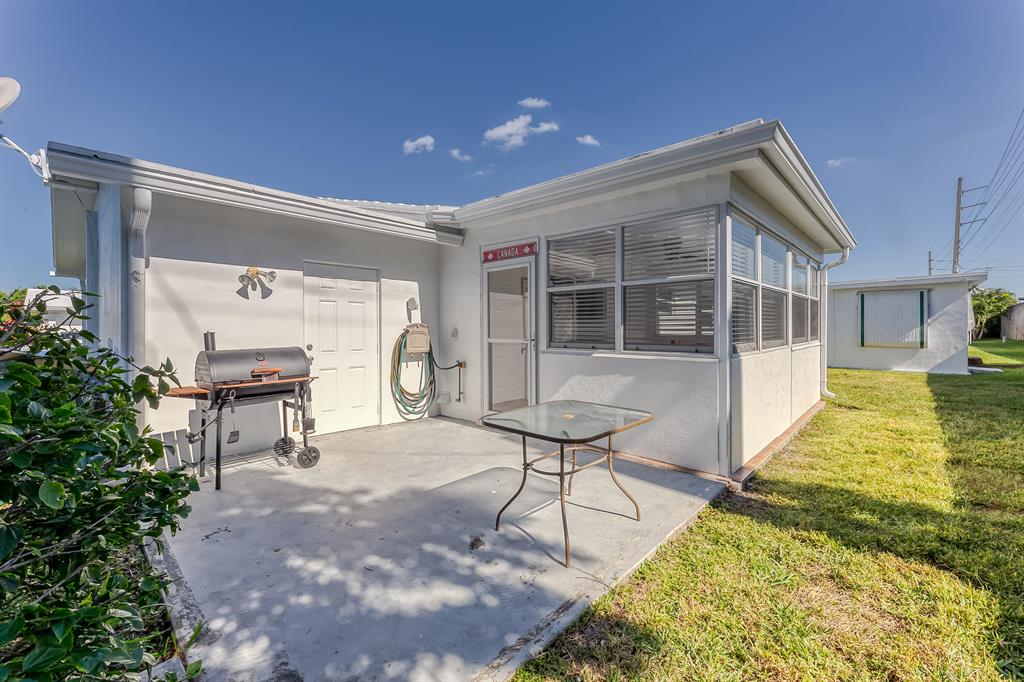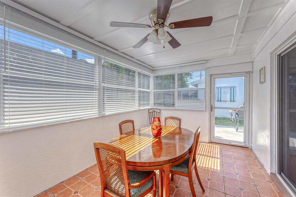 A new tile and flat roof is now being put on this beautifully upgraded 2 Bedroom / l Bath Single Family home in 55+ Leisureville Community. No Land Lease! The LOW Leisureville Community fees include a scheduled Community Shuttle Bus, Common Areas, two heated Pools, use of par 3 golf course and scheduled roof and house painting. Home has Impact Windows EXCEPT the Florida Room windows. Water Heater replaced Nov. 2021.