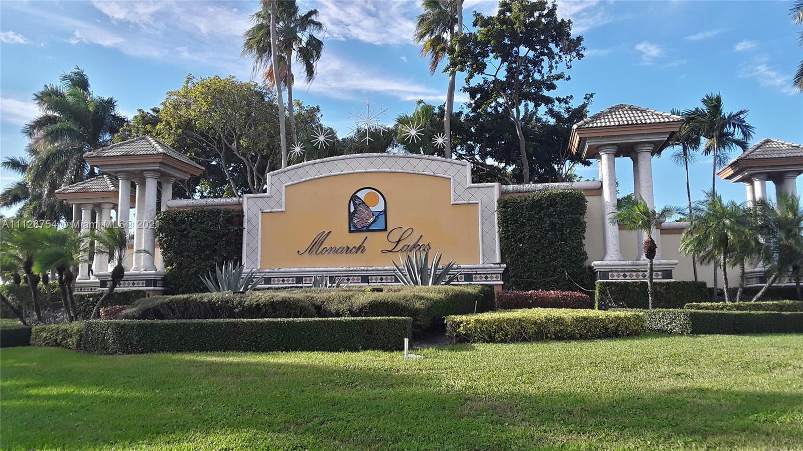 WELCOME HOME TO THE BEAUTIFUL AND HIGHLY DESIRED MONARCH LAKES MIRAMAR COMMUNITY. THIS NICELY MAINTAINED HOUSE FEATURES 4 BEDROOMS TWO AND A HALF BATH ROOMS. HUGE MASTER SUITE WITH ON SUITE. A NICELY UPDATED KITCHEN WITH SS APPLIANCES, WINE RACK DISPLAY, GRANITE COUNTER AND BACKSPLASH. AC IS FIVE YEARS OLD & WATER PUMP THREE YEARS OLD. FROM THE FAMILY ROOM ENJOY MOTHER NATURE AS YOU LOOK OUT ON THE LAKE. YOU ARE RIGHT ON THE WATER WITH AN OVER SIZED LOT. THE BIRDS SWIM RIGHT UP TO YOUR BACK YARD. FOR PEOPLE WHO LOVE FRUIT TREES, THERE ARE MATURE MANGOES, NESBERRIES, AND COCONUT TREES. THE COMMUNITY FEATURES THREE CLUB HOUSES FOR ENTERTAINING, BEAUTIFUL COMMUNITY SWIMMING POOL, TENNIS & BASKETBALL COURTS, PLAY GROUND, TOT LOT, WALK PATH ALONG THE HUGE AND SCENIC MONARCH LAKES.