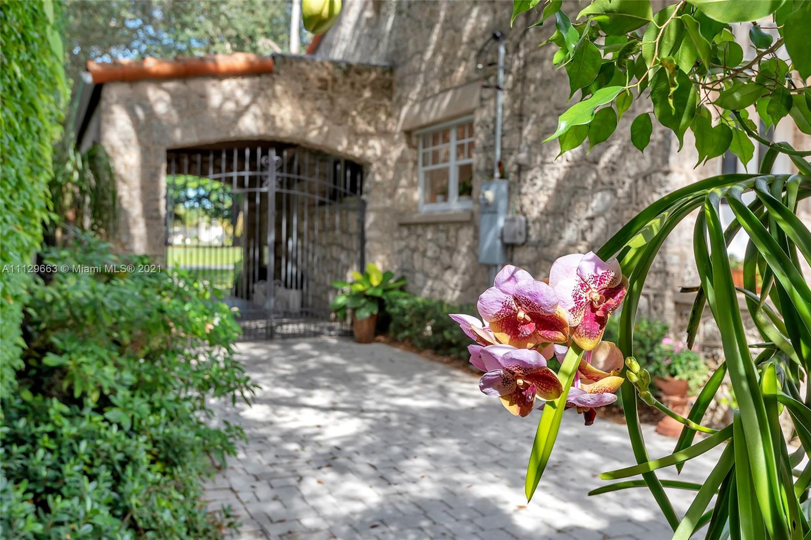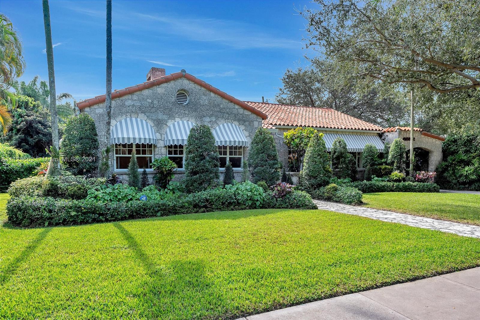 Situated on the Granada Golf Course sits Coral Cottage, the quintessential coral rock historic 3/2 main house with a 1/1/guest house, where in 2016, no expense was spared with this complete designer renovation. New oversized marble master bath with custom coordinating marble California Closets. New kitchen fully renovated. Black & white marble floor imported from Spain in side entrance hall. Partial impact windows and panels for the historic windows and doors. Miami-Dade county pine floors. Impeccably trimmed garden and new Chicago-brick patio. 1/1 guest house maintains quaint garage facade, features a new exquisite foyer, wine fridge/bar, and bathroom. Main house light fixtures not included. Per owner, sq. ft. larger than tax roll.