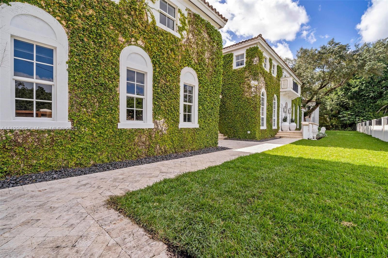Sunset Villa - A custom-built Mediterranean estate in prime Coral Gables location! Comprised of 3 structures for ultimate flexibility, the main residence features four large bedrooms w/central den upstairs. Wonderful living areas and an open kitchen concept downstairs all with 14' ceilings. All rooms are oversized with great natural light & windows. Connected via breezeways are 2 guest suites located above the 2-car garage and a 2-story gym/office/bedroom overlooking the salt-water pool. Mature oak trees create privacy and serenity. Ample covered terraces and open-air patios abound for entertaining and relaxation with family and friends. Smart-house system for audio/visual/lighting. The property is fully gated and secure. Newly polished Brazilian cherry and marble flooring.