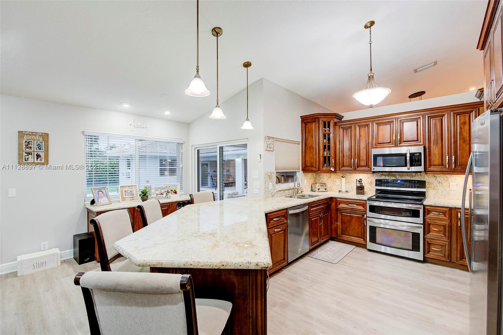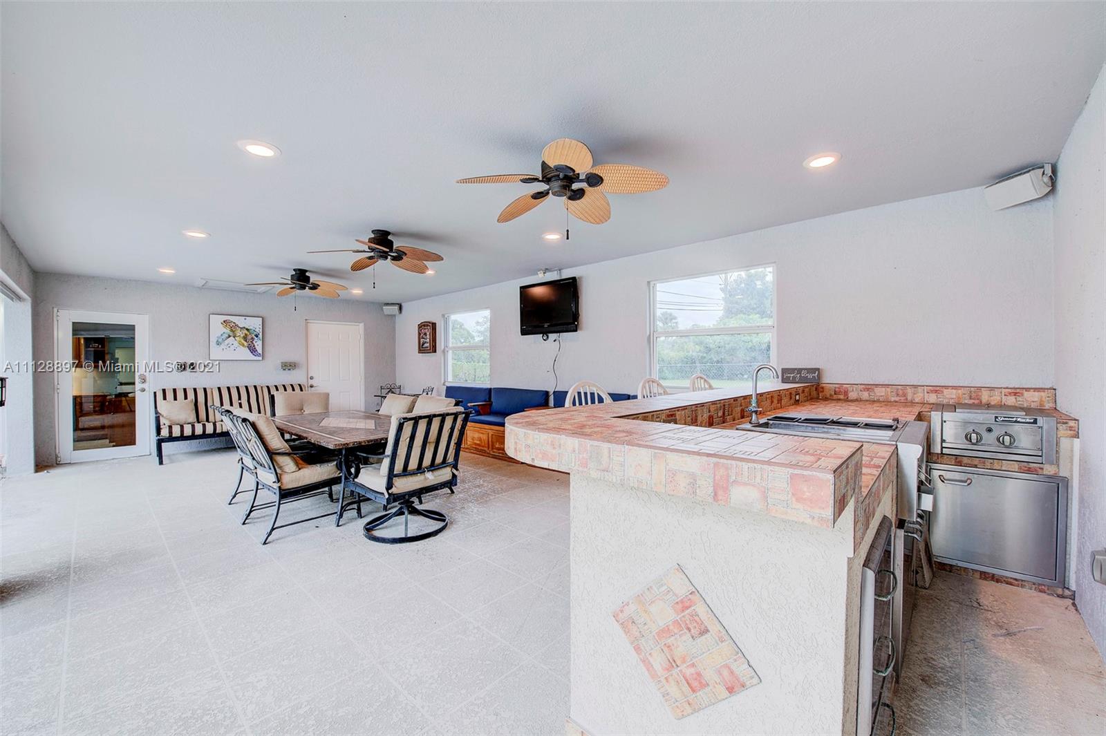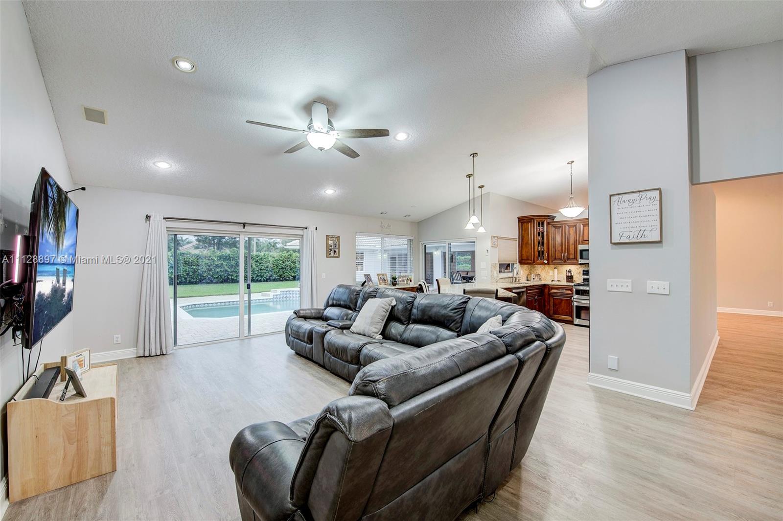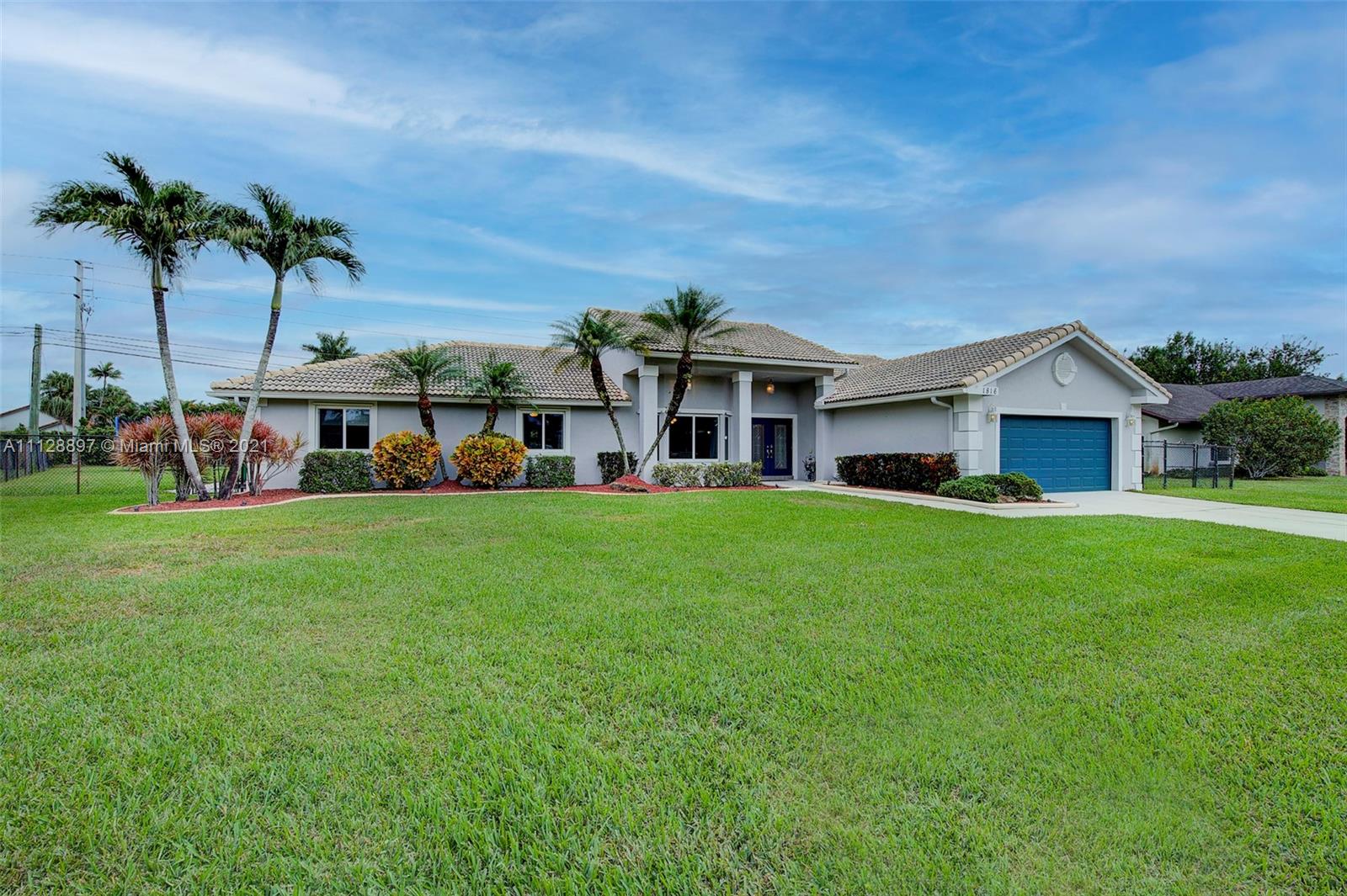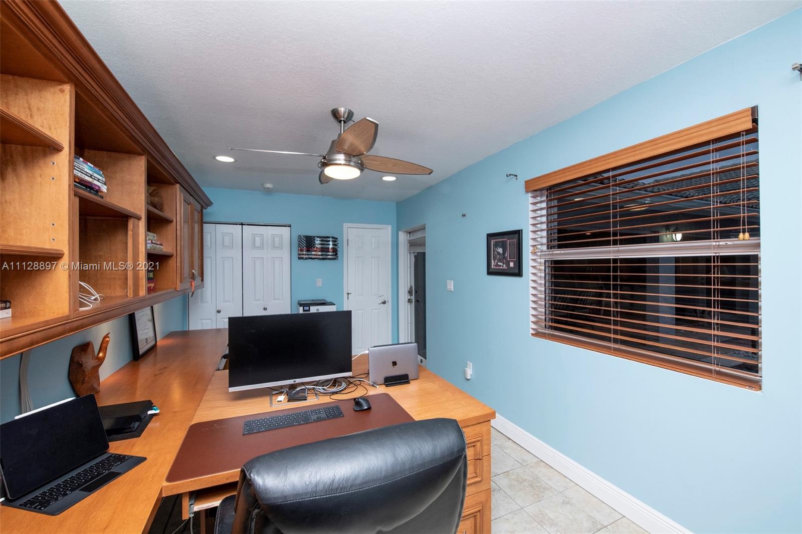 Prepare to be amazed! Incredible one-story pool home situated on a large lot in the desirable Ridgeview Lake Estates! This home boasts 4 bedrooms, 2 full bathrooms + a separate in law suite/offices. Enjoy an open floor plan w/ a remodeled kitchen that opens up to the family room area! Brand new flooring throughout. A/C 2021! Freshly painted interior and exterior! Hurricane impact windows + doors/ shutters throughout. Both bathrooms updated 2021! This is the ideal home for entertaining with an outdoor oasis & spacious lot! Covered patio area + summer kitchen facing serene pool/spa. Huge master suite w/completely gorgeous newly renovated master bathroom. Equipped with audio speakers and smart home features! Low HOA! Excellent location! A+ schools + close to major transportation!
