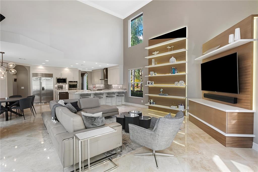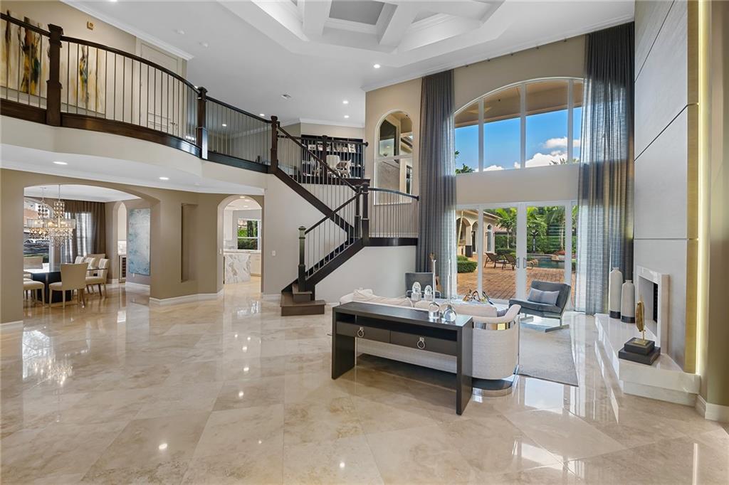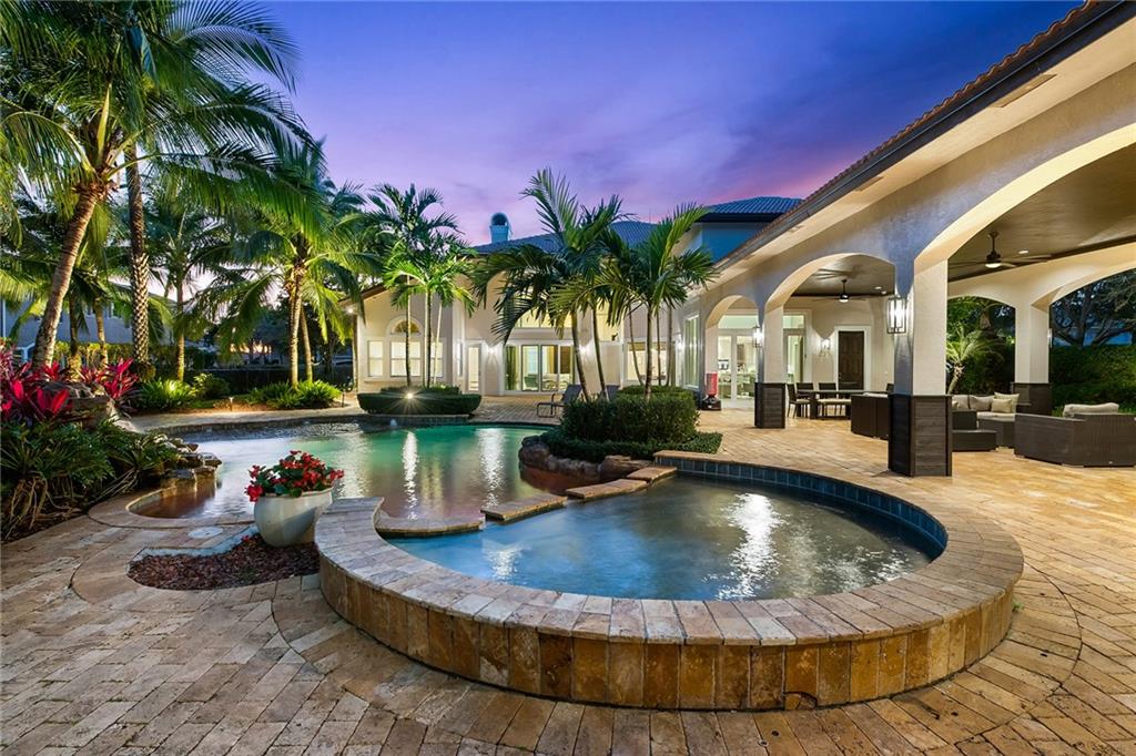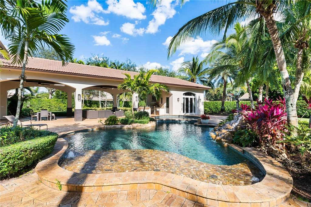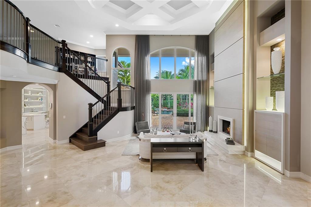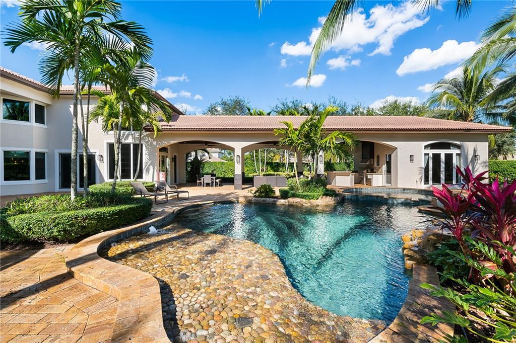 Welcome to your modern tropical paradise. This 5 bed, 6 bath home, plus office & game room, will wow you from the front doors. Enter into the living room with a 24 foot ceiling, fireplace and views of the pool. Marble floors and engineered wood in the office and bedrooms. Beautiful completely redone kitchen with subzero refrigerator & freezer, wine cooler, 6 burner gas stove, double oven & an oversized island. Completely open family room for entertaining and a formal dining area. Outdoor covered space with kitchen and attached game room. This room could easily be converted to a complete guest home. Rock waterfall, beach entry and jacuzzi. Impact glass throughout and a full house generator. Too many upgrades to mention. This home is an entertainers dream with A+ schools.