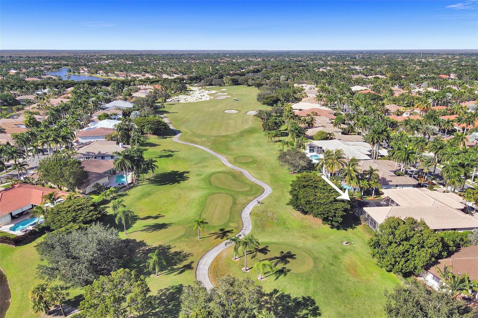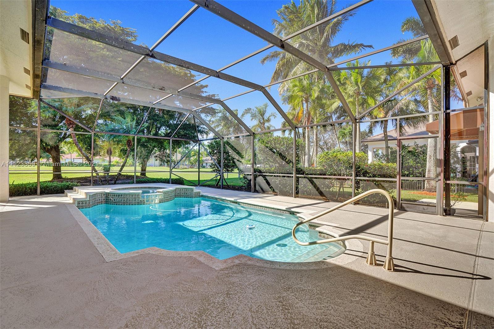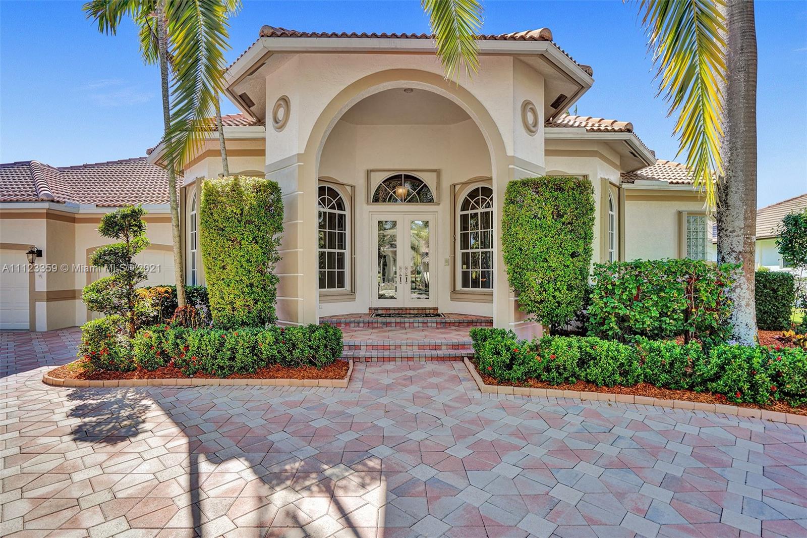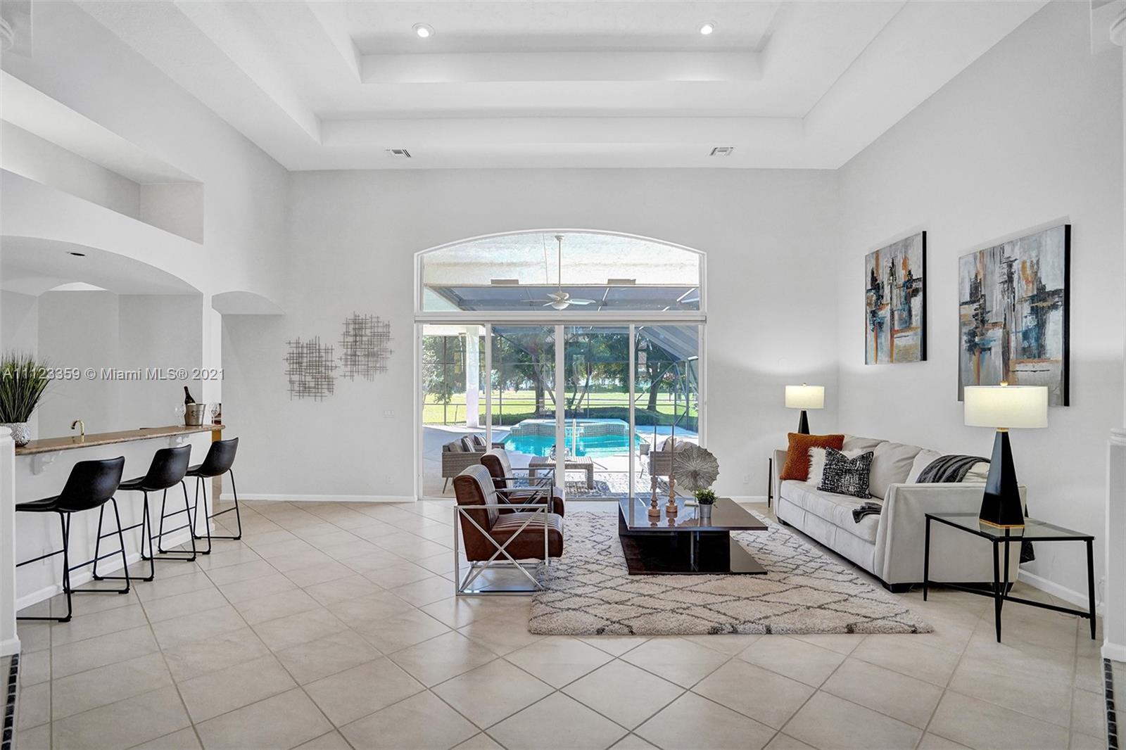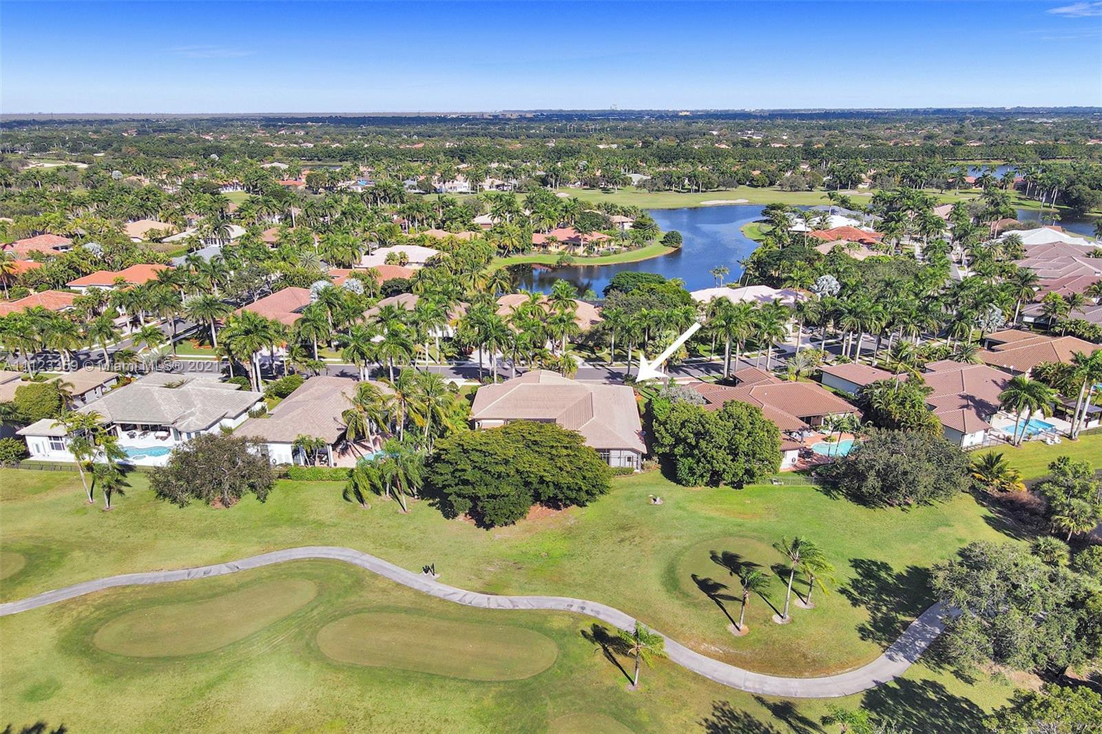 TUCKED ON A ROYAL PALM TREE LINED STREET. THIS MAGNIFICENT HOME BACKS TO GOLF WITH A SCREENED PATIO WITH POOL AND SPA. OVERSIZED 15,046 SQUARE FOOT LOT TO ENJOY. GRAND CIRCULAR PAVER DRIVEWAY WELCOMES YOU HOME. FULL ACCORDION PROTECTION. CUSTOM ONE STORY FRESHLY PAINTED IN TODAY'S NEUTRAL COLORS. PRIMARY BEDROOM HAS FRENCH DOORS TO THE POOL AND PATIO. TWO SPACIOUS CLOSETS WITH A RENOVATED BATH, DUAL SINKS, OVERSIZED SHOWER. KITCHEN WITH MAPLE WOOD CABINETS AND GRANITE COUNTERTOPS. NEUTRAL TILE FLOORING THROUGHOUT LIVING AREAS. GRAND BILLIARD/PLAYROOM (CAN BE CONVERTED TO BEDROOM) PLUS CABANA BATH.