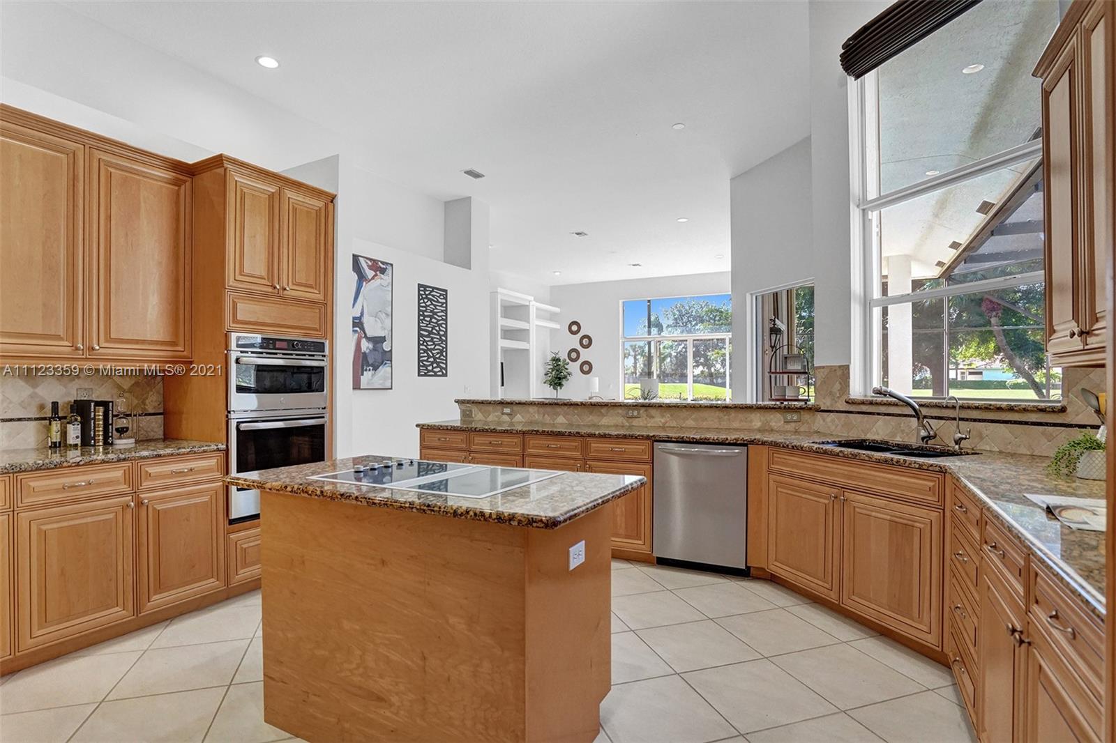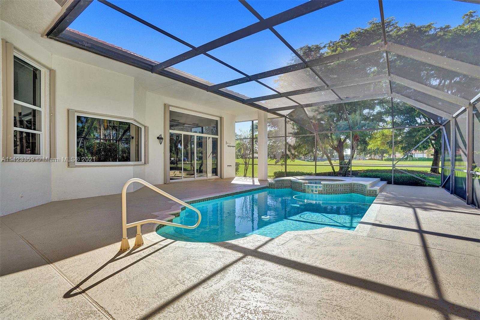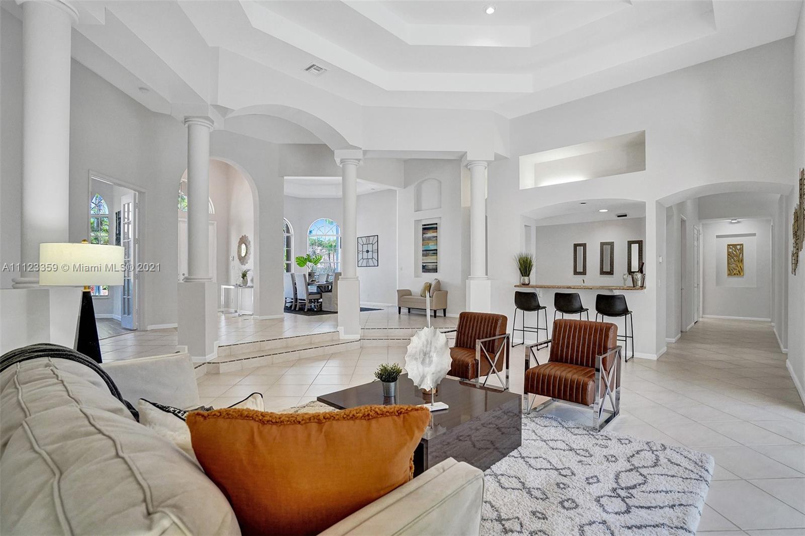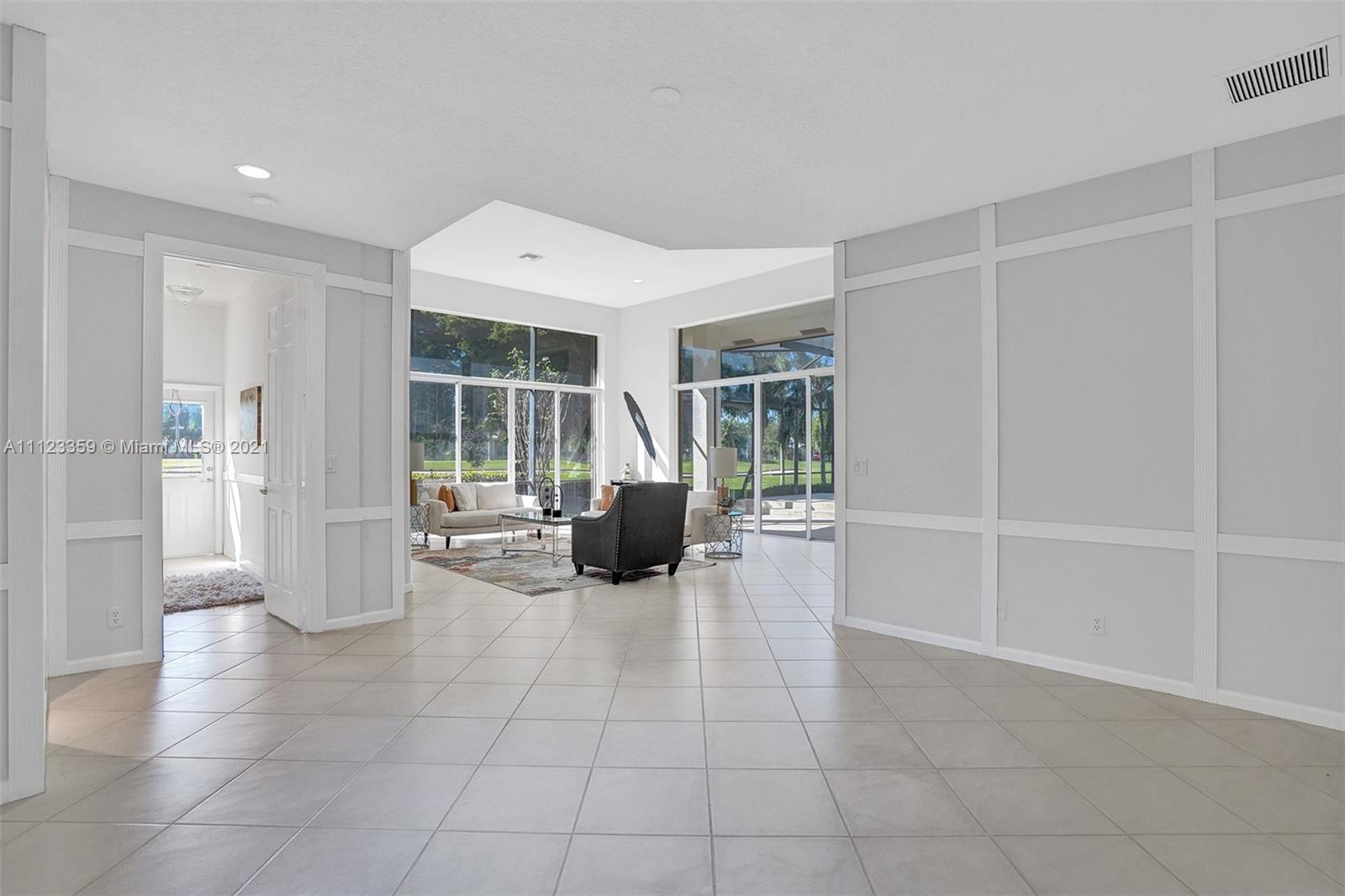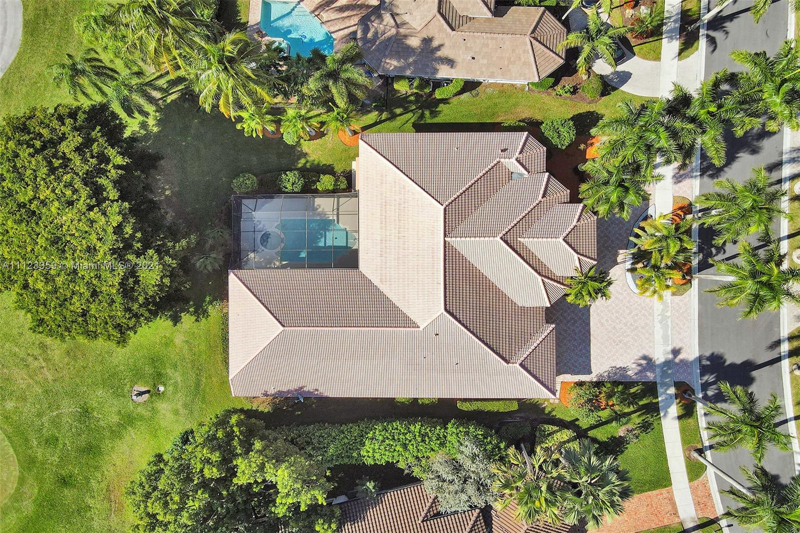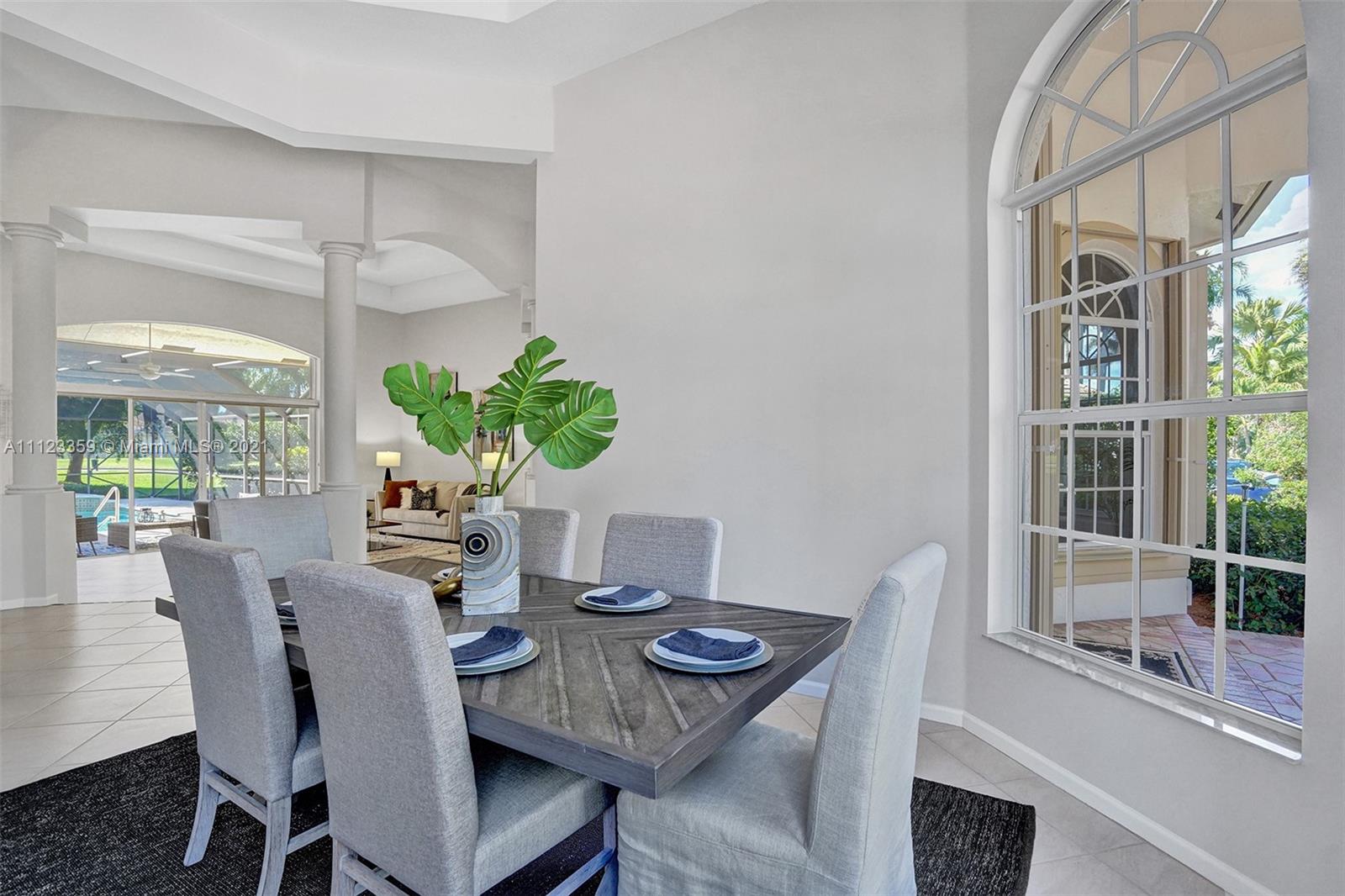 TUCKED ON A ROYAL PALM TREE LINED STREET. THIS MAGNIFICENT HOME BACKS TO GOLF WITH A SCREENED PATIO WITH POOL AND SPA. OVERSIZED 15,046 SQUARE FOOT LOT TO ENJOY. GRAND CIRCULAR PAVER DRIVEWAY WELCOMES YOU HOME. FULL ACCORDION PROTECTION. CUSTOM ONE STORY FRESHLY PAINTED IN TODAY'S NEUTRAL COLORS. PRIMARY BEDROOM HAS FRENCH DOORS TO THE POOL AND PATIO. TWO SPACIOUS CLOSETS WITH A RENOVATED BATH, DUAL SINKS, OVERSIZED SHOWER. KITCHEN WITH MAPLE WOOD CABINETS AND GRANITE COUNTERTOPS. NEUTRAL TILE FLOORING THROUGHOUT LIVING AREAS. GRAND BILLIARD/PLAYROOM (CAN BE CONVERTED TO BEDROOM) PLUS CABANA BATH.