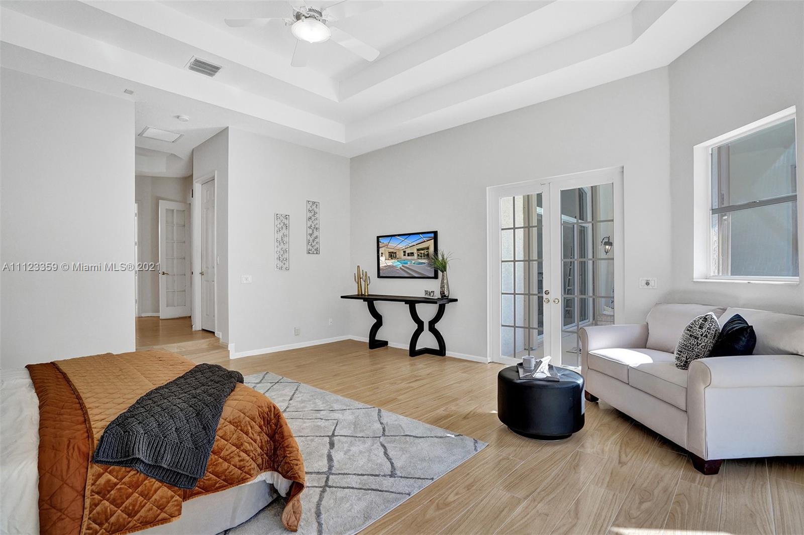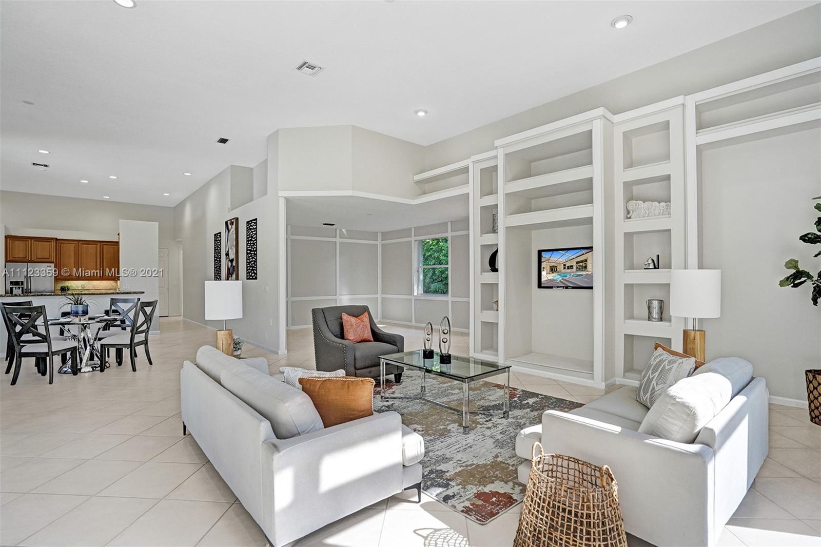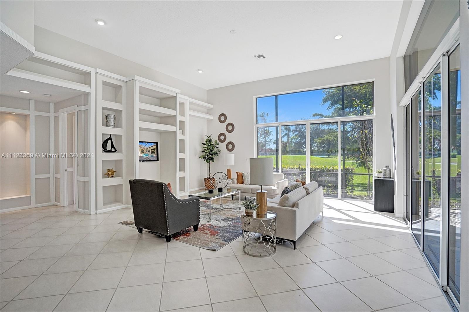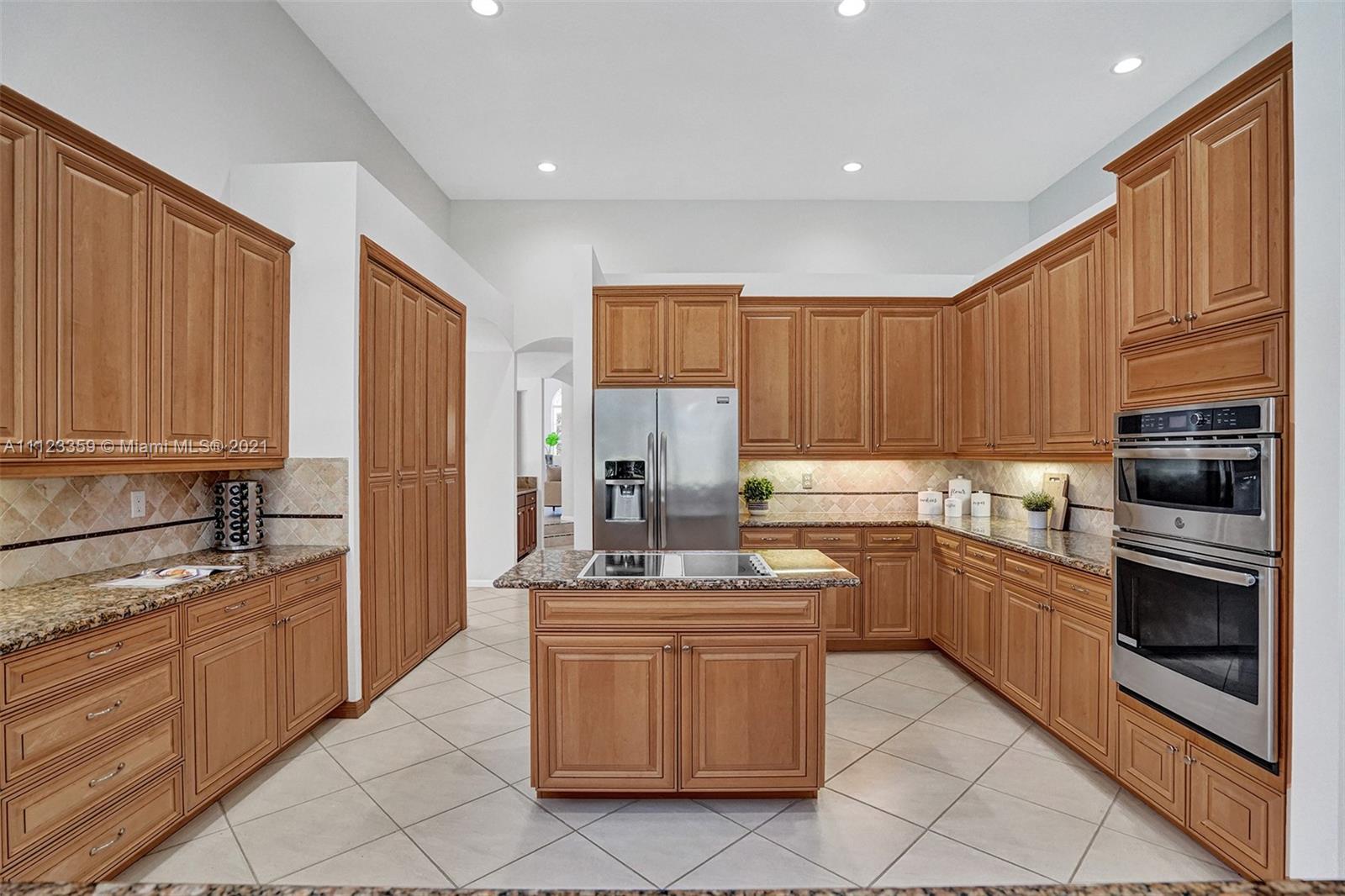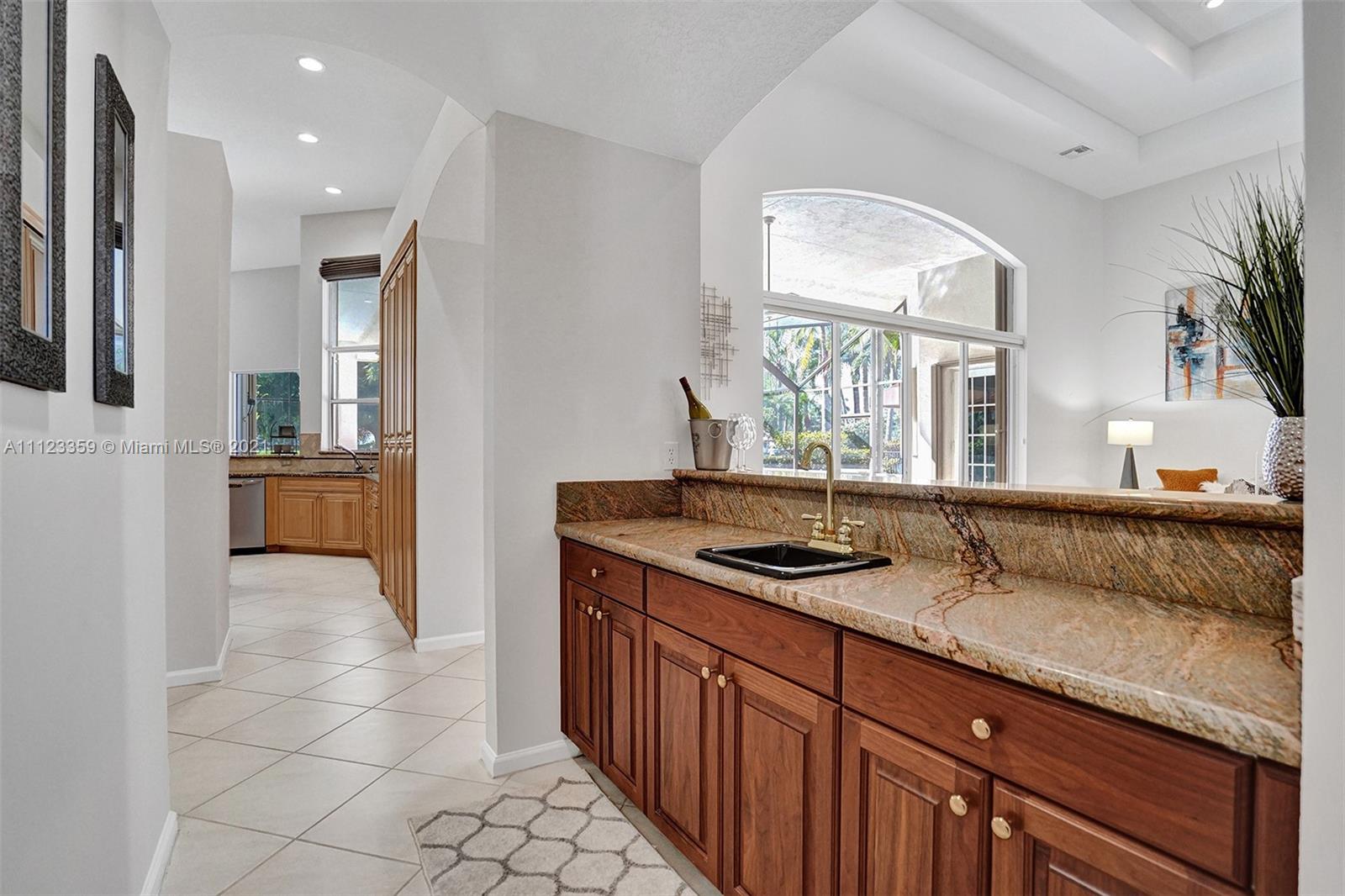 TUCKED ON A ROYAL PALM TREE LINED STREET. THIS MAGNIFICENT HOME BACKS TO GOLF WITH A SCREENED PATIO WITH POOL AND SPA. OVERSIZED 15,046 SQUARE FOOT LOT TO ENJOY. GRAND CIRCULAR PAVER DRIVEWAY WELCOMES YOU HOME. FULL ACCORDION PROTECTION. CUSTOM ONE STORY FRESHLY PAINTED IN TODAY'S NEUTRAL COLORS. PRIMARY BEDROOM HAS FRENCH DOORS TO THE POOL AND PATIO. TWO SPACIOUS CLOSETS WITH A RENOVATED BATH, DUAL SINKS, OVERSIZED SHOWER. KITCHEN WITH MAPLE WOOD CABINETS AND GRANITE COUNTERTOPS. NEUTRAL TILE FLOORING THROUGHOUT LIVING AREAS. GRAND BILLIARD/PLAYROOM (CAN BE CONVERTED TO BEDROOM) PLUS CABANA BATH.