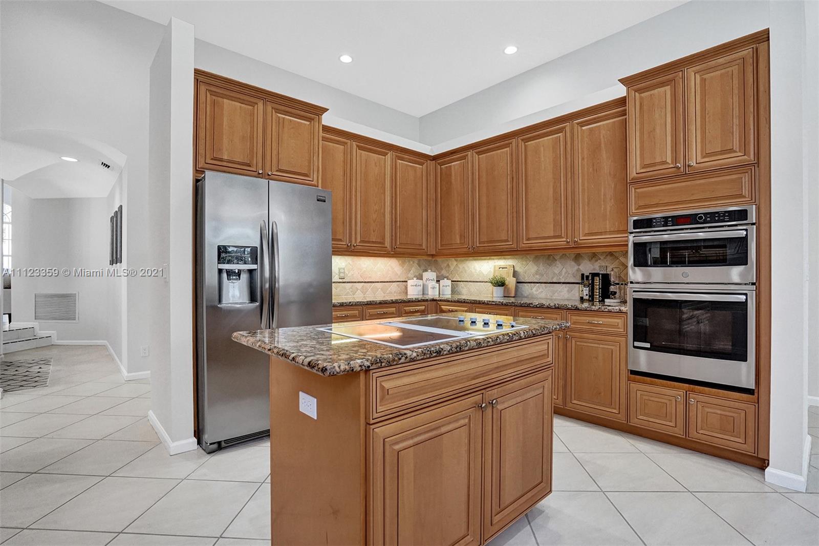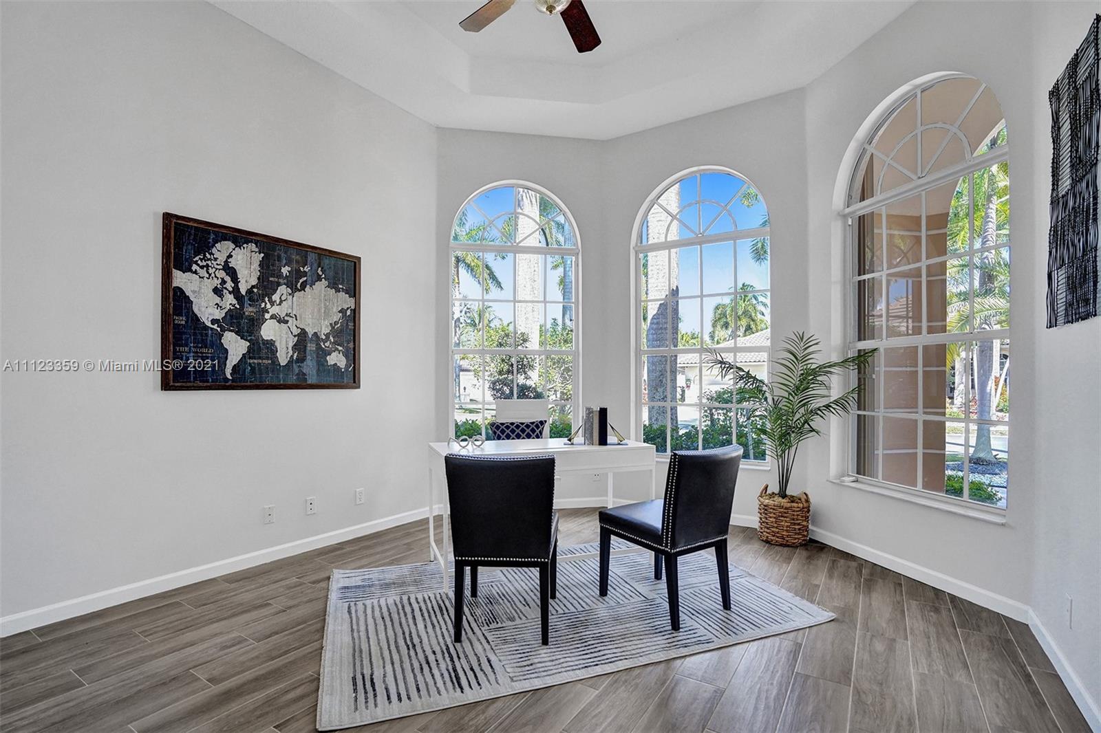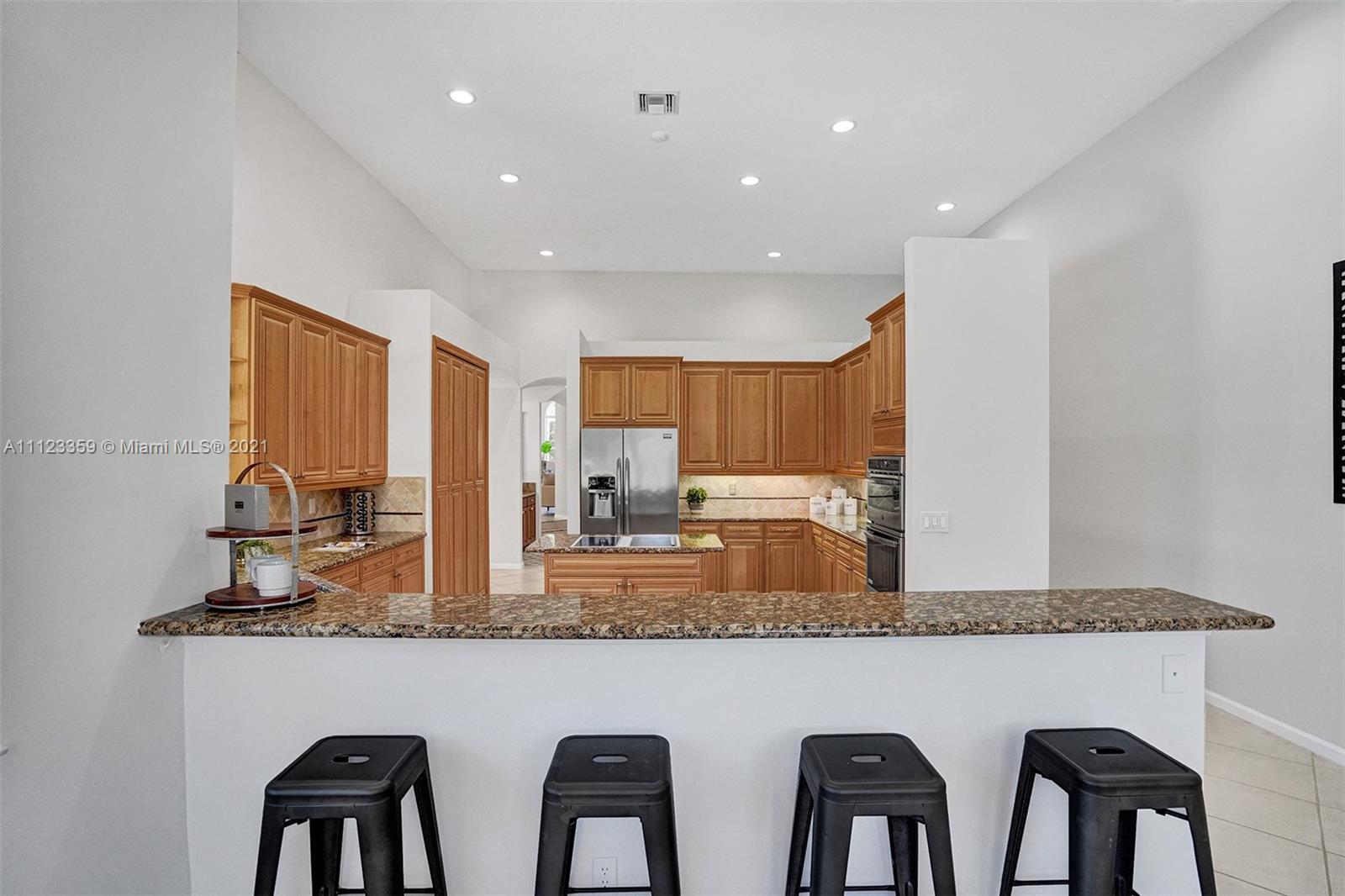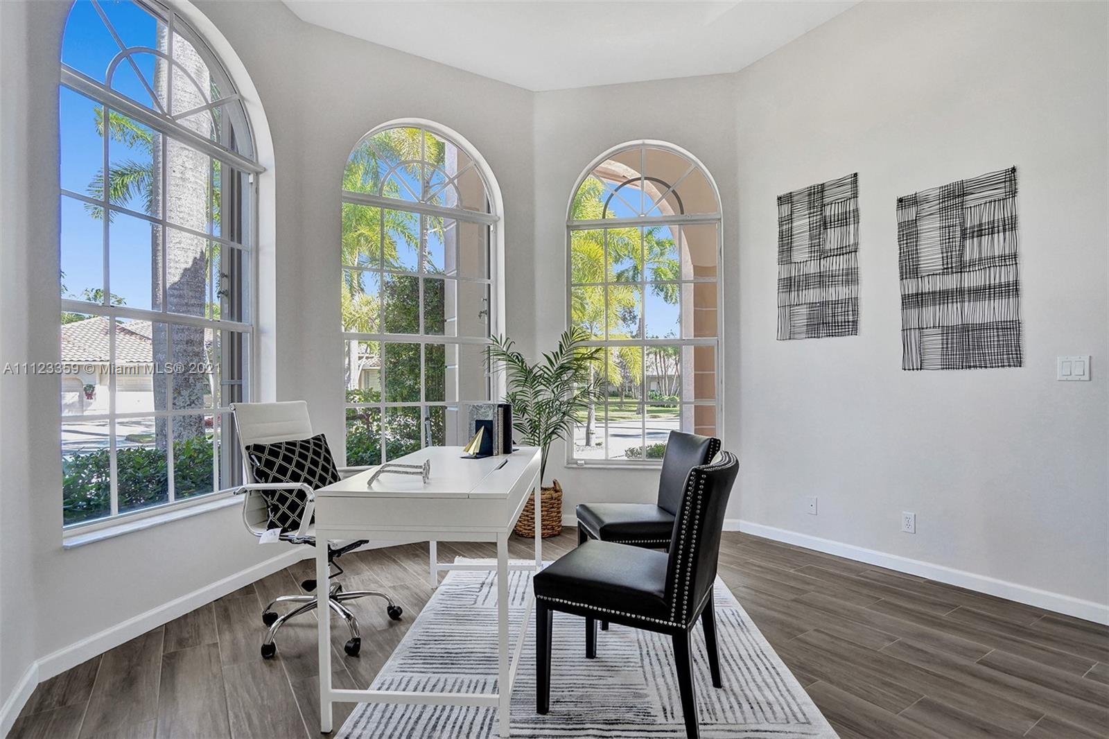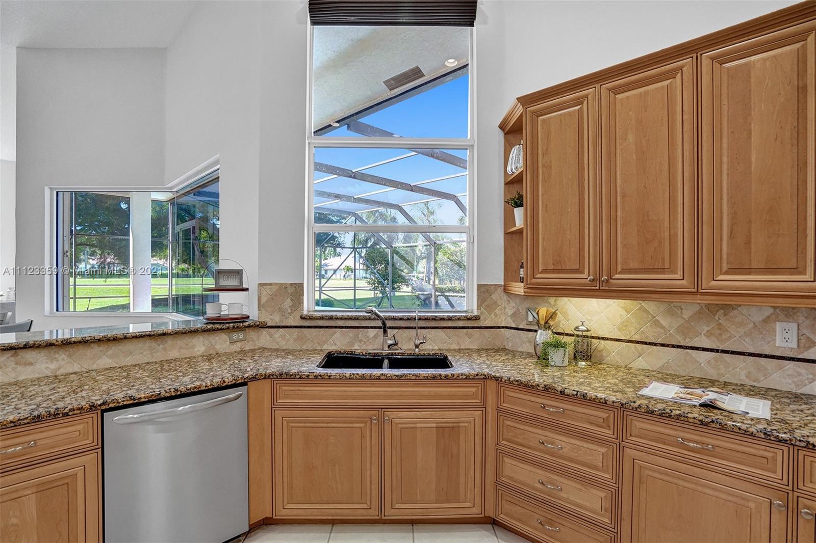 TUCKED ON A ROYAL PALM TREE LINED STREET. THIS MAGNIFICENT HOME BACKS TO GOLF WITH A SCREENED PATIO WITH POOL AND SPA. OVERSIZED 15,046 SQUARE FOOT LOT TO ENJOY. GRAND CIRCULAR PAVER DRIVEWAY WELCOMES YOU HOME. FULL ACCORDION PROTECTION. CUSTOM ONE STORY FRESHLY PAINTED IN TODAY'S NEUTRAL COLORS. PRIMARY BEDROOM HAS FRENCH DOORS TO THE POOL AND PATIO. TWO SPACIOUS CLOSETS WITH A RENOVATED BATH, DUAL SINKS, OVERSIZED SHOWER. KITCHEN WITH MAPLE WOOD CABINETS AND GRANITE COUNTERTOPS. NEUTRAL TILE FLOORING THROUGHOUT LIVING AREAS. GRAND BILLIARD/PLAYROOM (CAN BE CONVERTED TO BEDROOM) PLUS CABANA BATH.