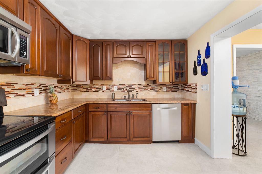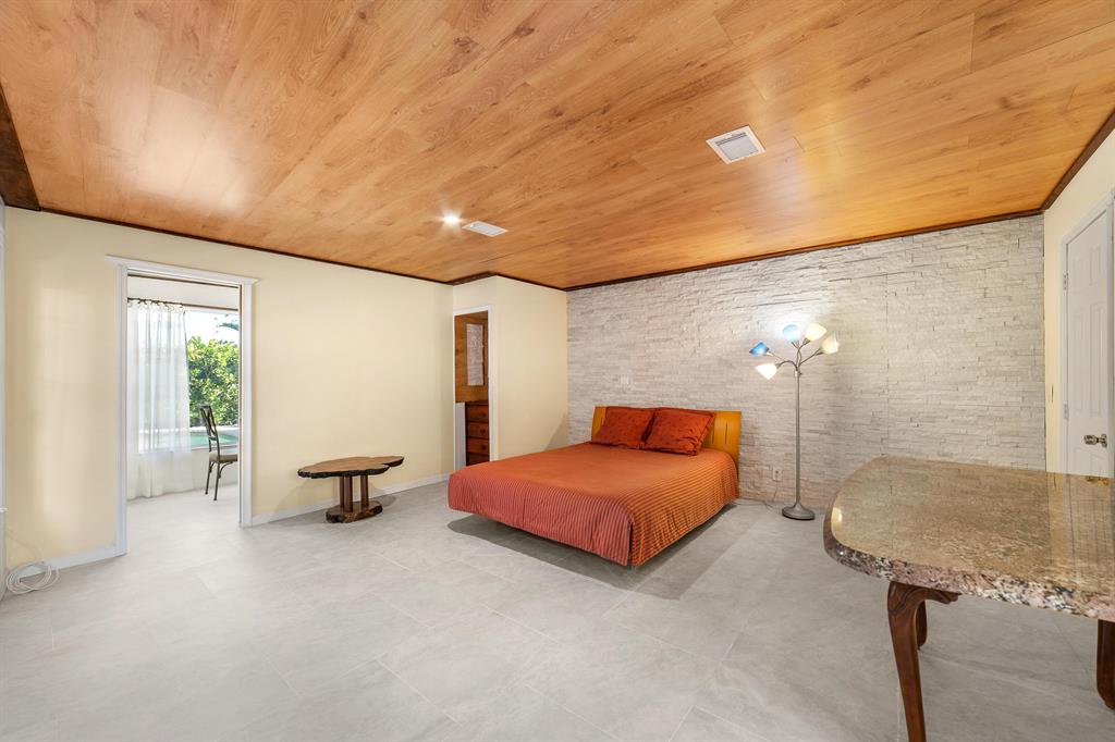 Welcome home! This Pompano Beach home is a unique oasis and true diamond in the rough. NO HOA! The home boasts large tile flooring throughout the living areas and tons of natural light. The property features a split bedroom floor plan with two bedrooms with wood flooring, sharing a bathroom on one side with a huge primary suite on the other. This suite has tons of room with a large bathroom and even a kitchenette! This space also has its own private side entrance and could double as an in-law suite or possible rental space. The home features a large, open updated kitchen with rich finishes and large dining room with accent wall. The backyard is a tropical destination unto itself with large pool, huge patio and mini orchard of fruit trees. The property also has a large 'red barn'