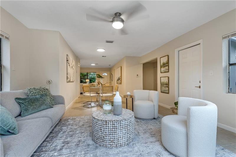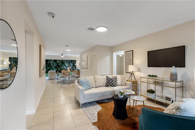 Completely remodeled 3 bed 2 bath home.Beautiful open concept living with formal living room, dining room and large family room all open to the kitchen.All rooms have a view through the huge 12' wall of sliding glass doors,outdoor patio and the large fenced yard.The interior features brand new stainless appliances,new LG washer/dryer,new paint inside and out,new vanities,kohler sinks,all new faucets and fixtures.Designer black and satin nickel hardware throughout,beautiful landcaping,new double car driveway,new electrical panel,all new lights and fans, both bathrooms and kitchen are remodeled, porcelain flooring throughout and LVP waterproof wood plank flooring in the kitchen.All rooms are large.The home is located on a street with beautiful well kept homes.Close to downtown and the beach.