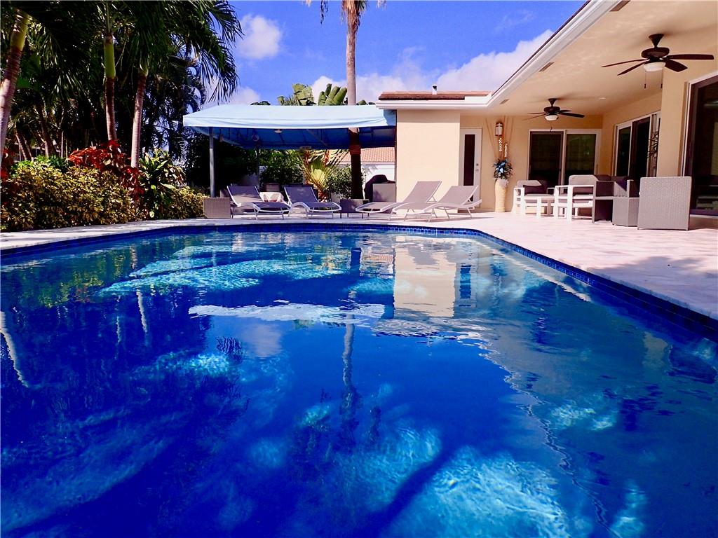 Rarely available in The Landings, this 3 bed/3 bath home was remodeled from top to bottom in upscale, open concept design, with chef inspired kitchen, energy efficiency throughout and high end finishes. Only a few blocks to Lauderdale By The Sea Beach. New natural gas lines installed for hot water on demand, indoor cooking, dryer, outdoor grill, glass stone fire pit and heated saltwater pool with waterfall. Cabana offers tons of seating with tropical pool view & 85' dock space with boat lift. Too many extras to mention! Home is luxuriously furnished and currently occupied with a tenant until June 2022. Do not walk the property or disturb tenant. Showings will be scheduled only with an executed offer and proof of funds or approved funding. (Fixed bridge APPROX. 10.5' depends on tide)