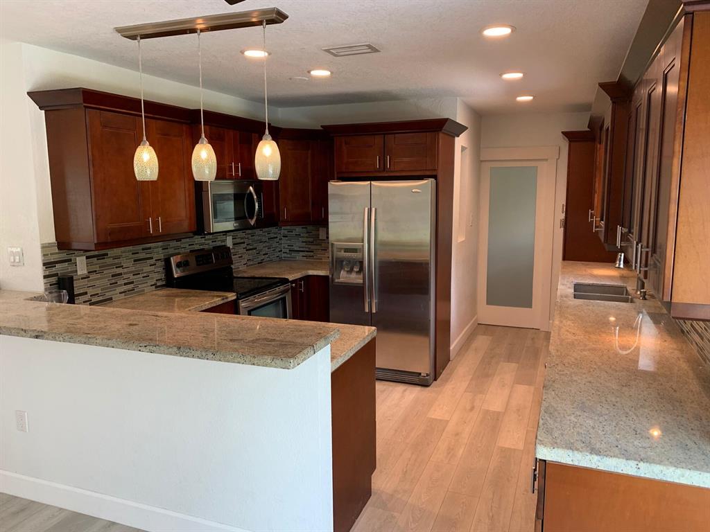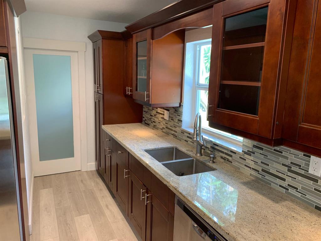 Beautifully renovated 3BR 2 BA home located on private quiet dead- end street. The home has been renovated with a modern flair with an open floor plan, allowing the sunlight to flood the interior. The gourmet chef's kitchen is a highlight with custom cherry cabinets, granite countertops, custom tile backsplash and all stainless steel appliances and double sink. There is a separate laundry room inside the home. The floors are a new custom vinyl throughout. There are full impact doors and windows, saving you money on insurance and AC. The spacious back patio has new travertine flooring that matches the travertine on the front porch. The curb appeal is amazing! The newly modernized duct work and insulation increases the efficiency of the air conditioning system. This home is a gem and will