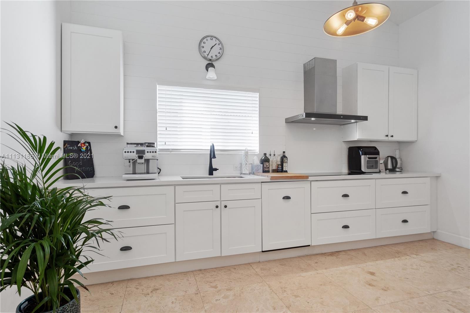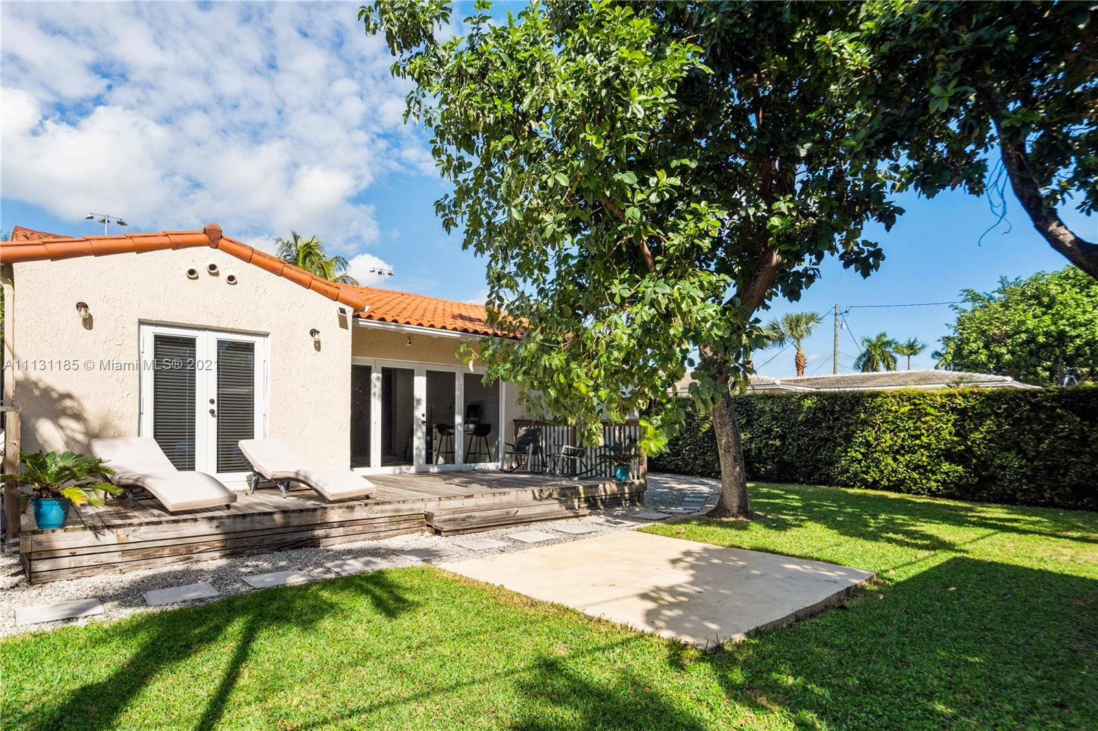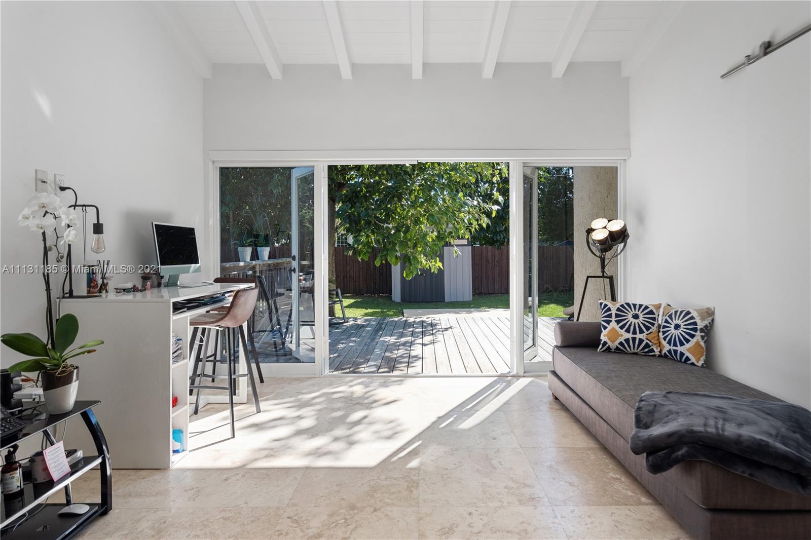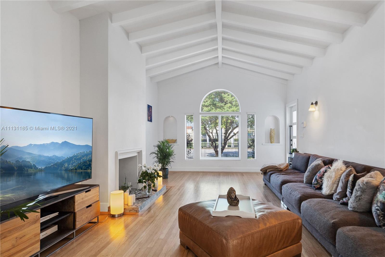 This stunning single-family home was completely updated in 2017 and sits on a 6,500sqft lot with a new automatic sliding gate that offers 2 secure parking spaces. The house features original hardwood floors & travertine flooring throughout, high vaulted ceiling with exposed beams, fireplace, and hurricane impact windows and doors. The open floor plan allows a lot of natural light to come in. The remodeled kitchen equipped with quartz countertops, stainless steel appliances, has enough space to add an island or table. The garage was turned into a laundry room with lots of storage. All 3 bedrooms have new customized closets. The master bathroom has porcelain flooring and a large shower, the second bathroom has a bathtub.