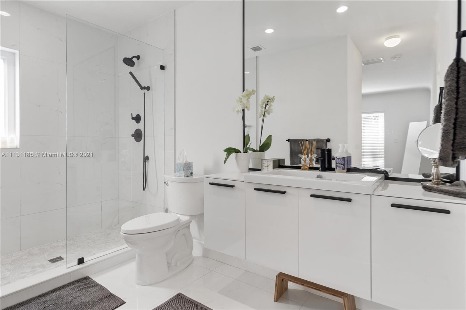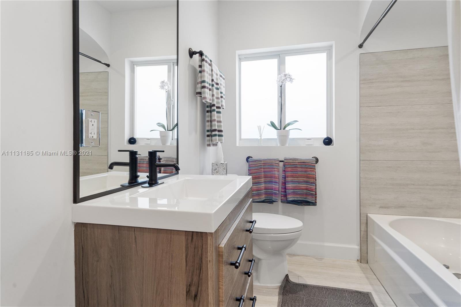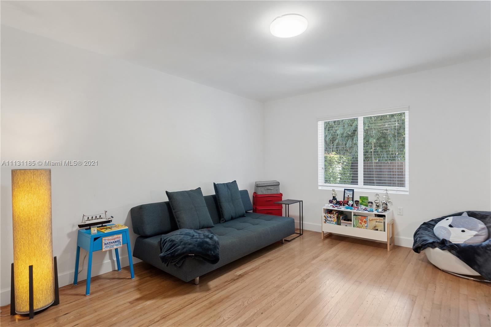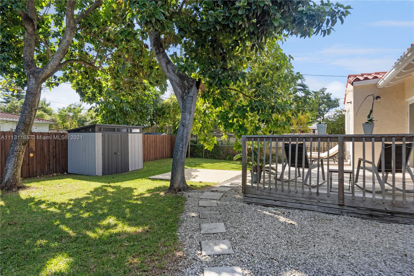 This stunning single-family home was completely updated in 2017 and sits on a 6,500sqft lot with a new automatic sliding gate that offers 2 secure parking spaces. The house features original hardwood floors & travertine flooring throughout, high vaulted ceiling with exposed beams, fireplace, and hurricane impact windows and doors. The open floor plan allows a lot of natural light to come in. The remodeled kitchen equipped with quartz countertops, stainless steel appliances, has enough space to add an island or table. The garage was turned into a laundry room with lots of storage. All 3 bedrooms have new customized closets. The master bathroom has porcelain flooring and a large shower, the second bathroom has a bathtub.