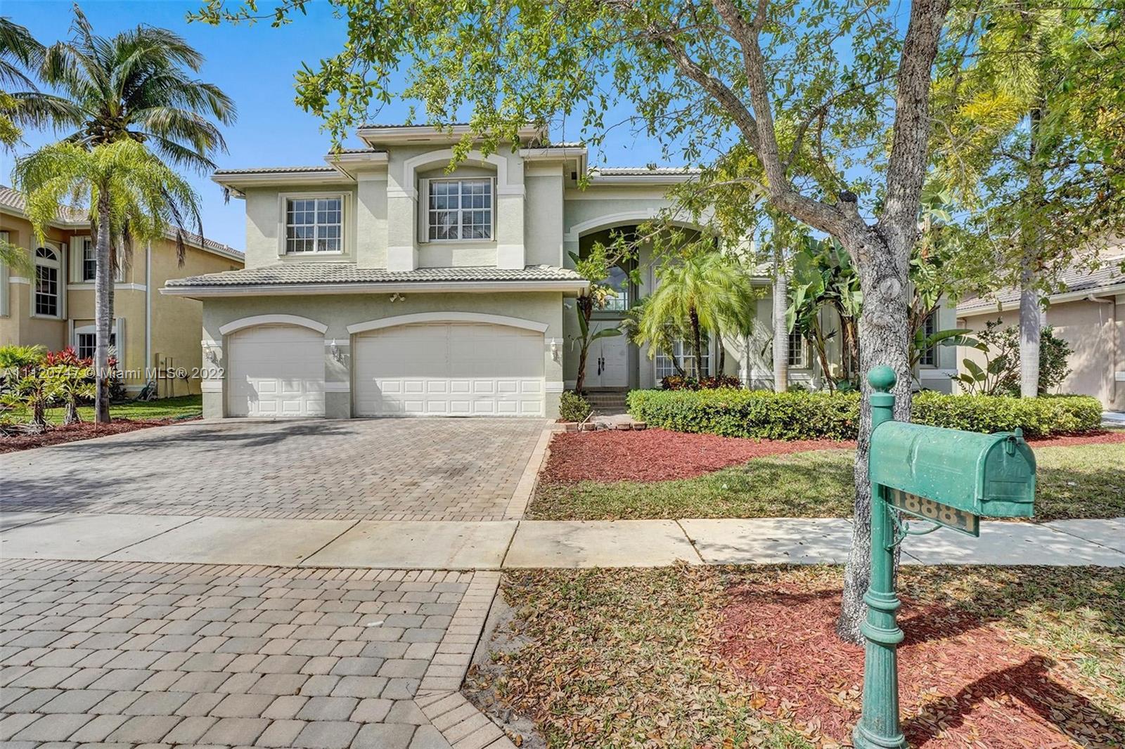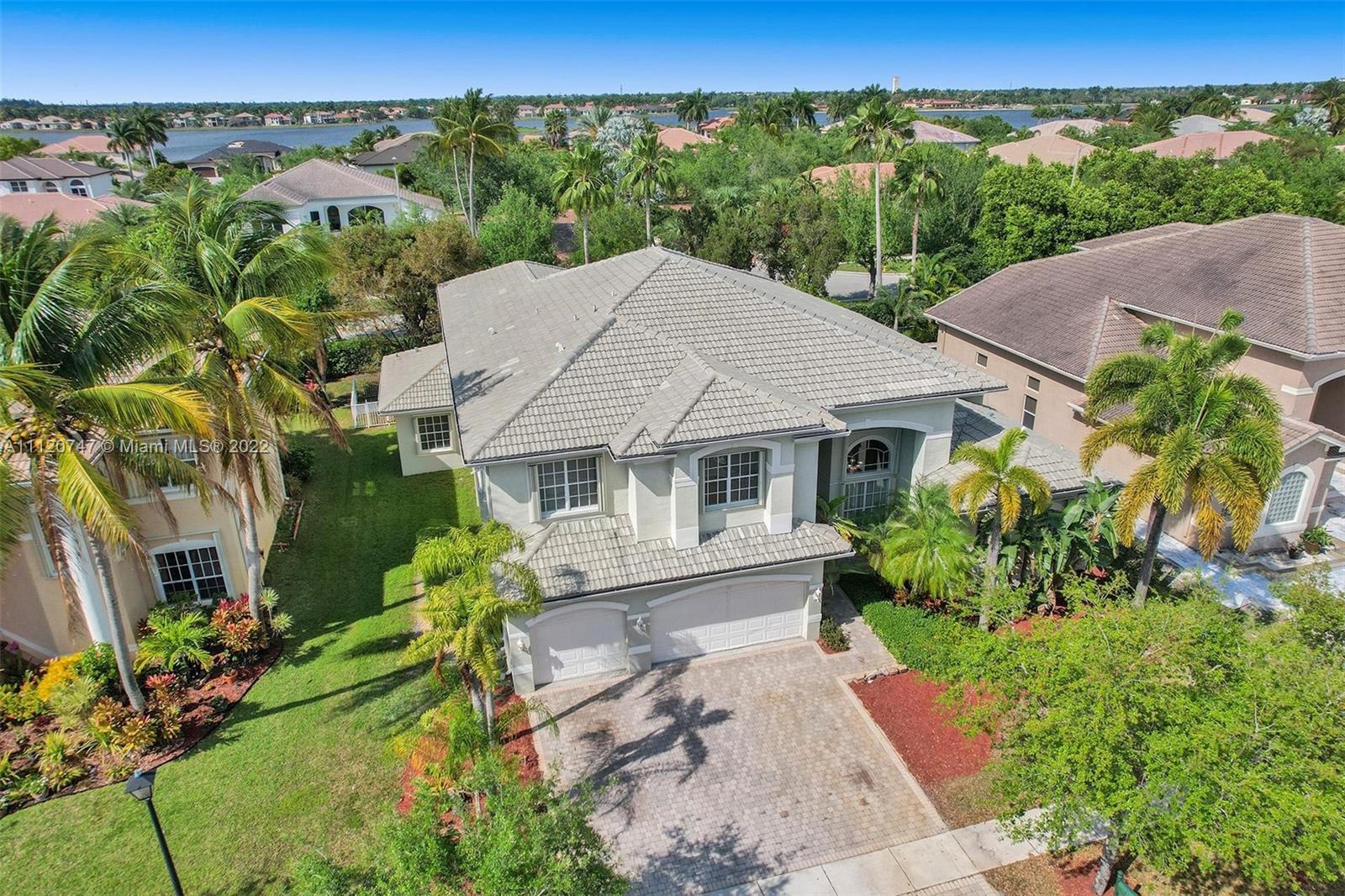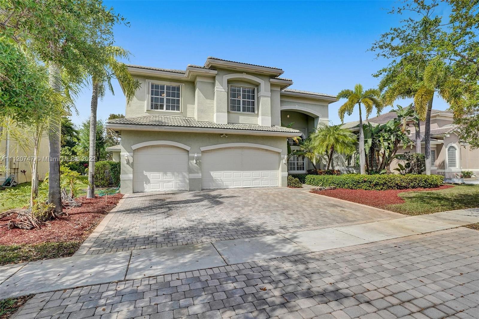 This home features 5 Bedrooms, 4 baths, library and 3 car garage. Over sized owner's suite with sitting area. One additional full bedroom with bath on main level. This home is very spacious with vaulted ceilings, tile flooring, a large kitchen with double ovens and flat stove top, center island, and wood cabinetry. Large family room & eat in kitchen area. 3 bedrooms on second level. One bedroom has full size bath. Second floor features a large loft perfect for a game room or second sitting area. Beautiful pool area. Home also features accordion shutters. Beautiful Sunset Lakes home located in Miramar one of the most sough after communities. Well kept Gated community and near to top rated schools! Great commuting distance to Miami and close to shopping malls, restaurants, and entertainment.