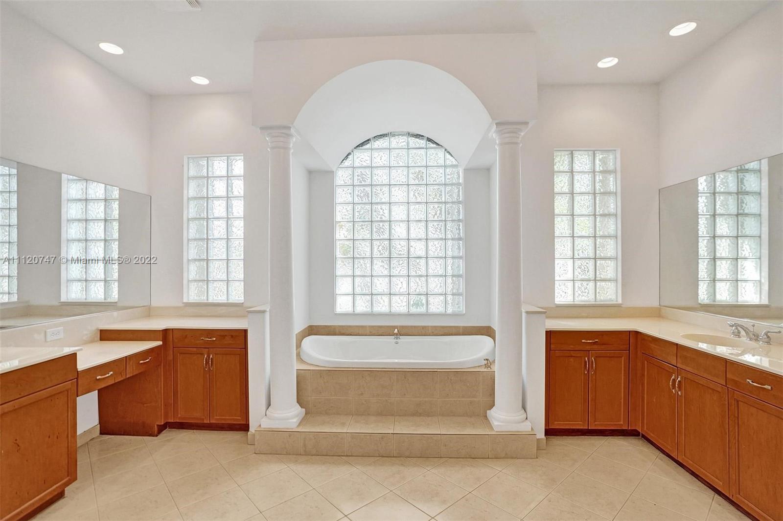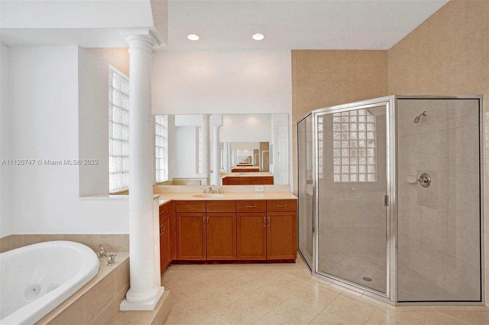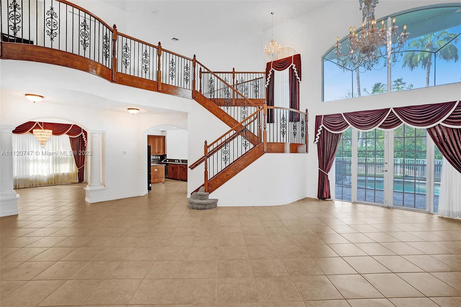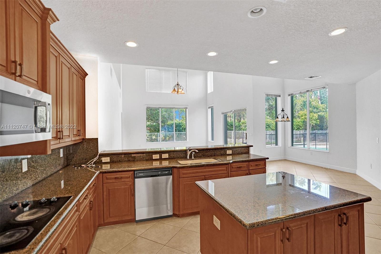 This home features 5 Bedrooms, 4 baths, library and 3 car garage. Over sized owner's suite with sitting area. One additional full bedroom with bath on main level. This home is very spacious with vaulted ceilings, tile flooring, a large kitchen with double ovens and flat stove top, center island, and wood cabinetry. Large family room & eat in kitchen area. 3 bedrooms on second level. One bedroom has full size bath. Second floor features a large loft perfect for a game room or second sitting area. Beautiful pool area. Home also features accordion shutters. Beautiful Sunset Lakes home located in Miramar one of the most sough after communities. Well kept Gated community and near to top rated schools! Great commuting distance to Miami and close to shopping malls, restaurants, and entertainment.