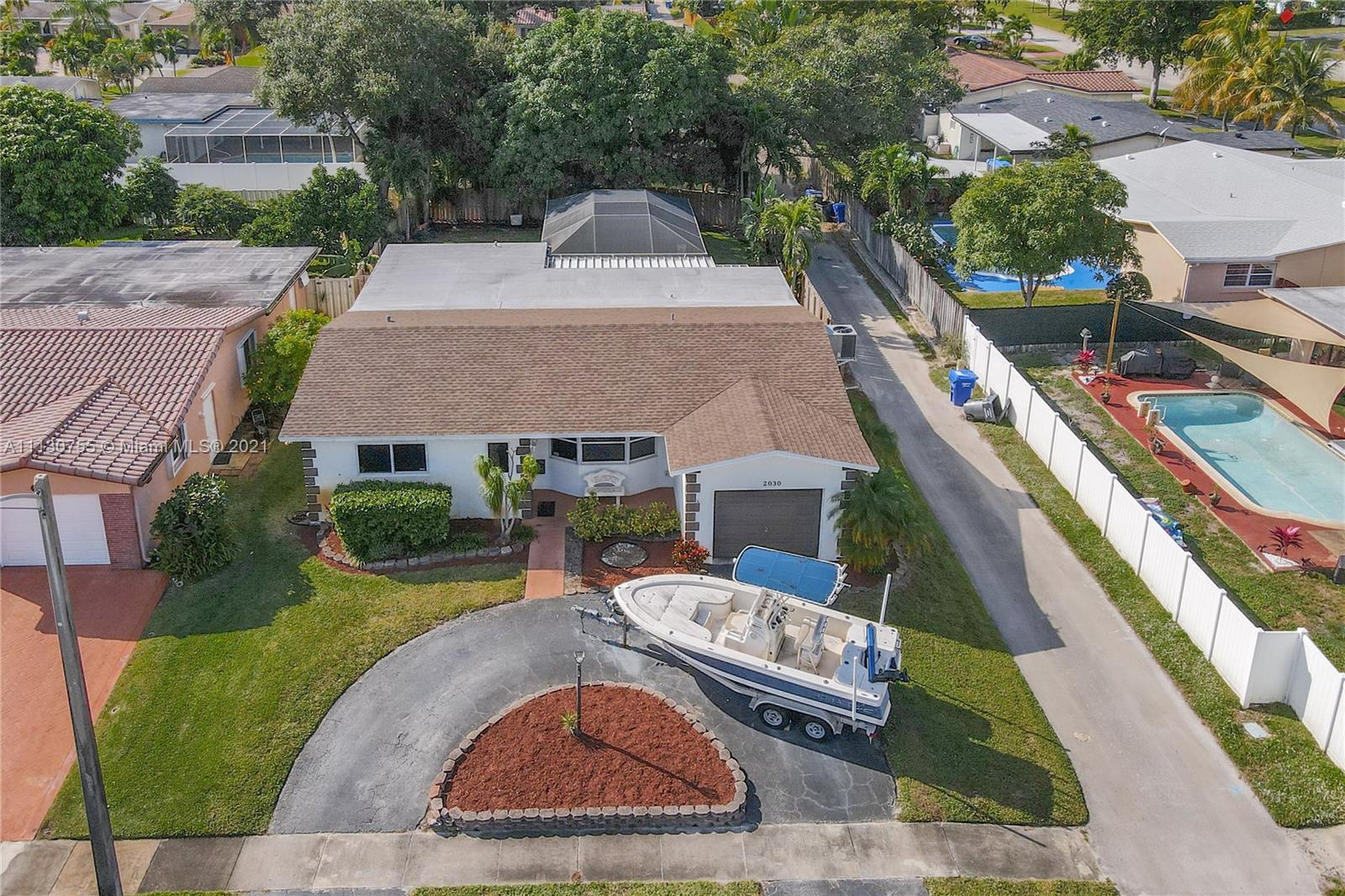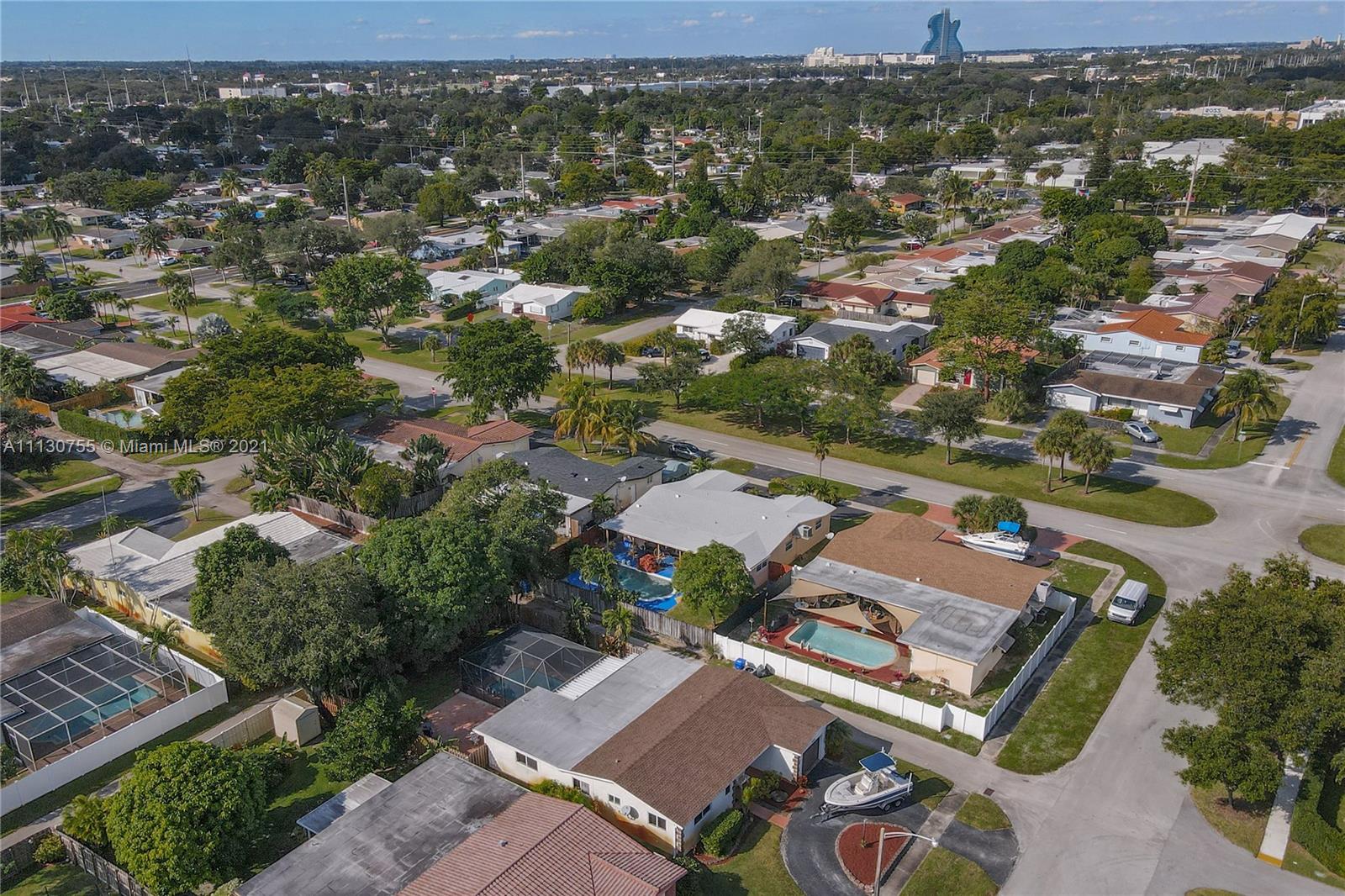 OPPORTUNITY IS KNOCKING! This home delivers the HOLLYWOOD HILLS’ TRIFECTA… size, location and condition. Offering 3 beds/2 baths, family room, formal dining room, open porch, one car garage, circular driveway and pool. The living area is bright and open w/ recessed lights, tile floors and natural light. Updated kitchen w/ a modern look, custom made wood cabinets and ample cooking space. Storm ready w/ IMPACT WINDOWS and 2018 ROOF. Florida outdoor living at its best w/ dome screened-in SALT WATER POOL, covered patio, large concrete deck, shaded by fruit trees and 2020 privacy wood fence… making this beauty perfect for entertaining family and friends. In addition, central ac, CITY SEWER, laminate wood floors in bedrooms, 242 SQFT family rm and 160 SQFT Florida room. RECIPE FOR A HAPPY OWNER!