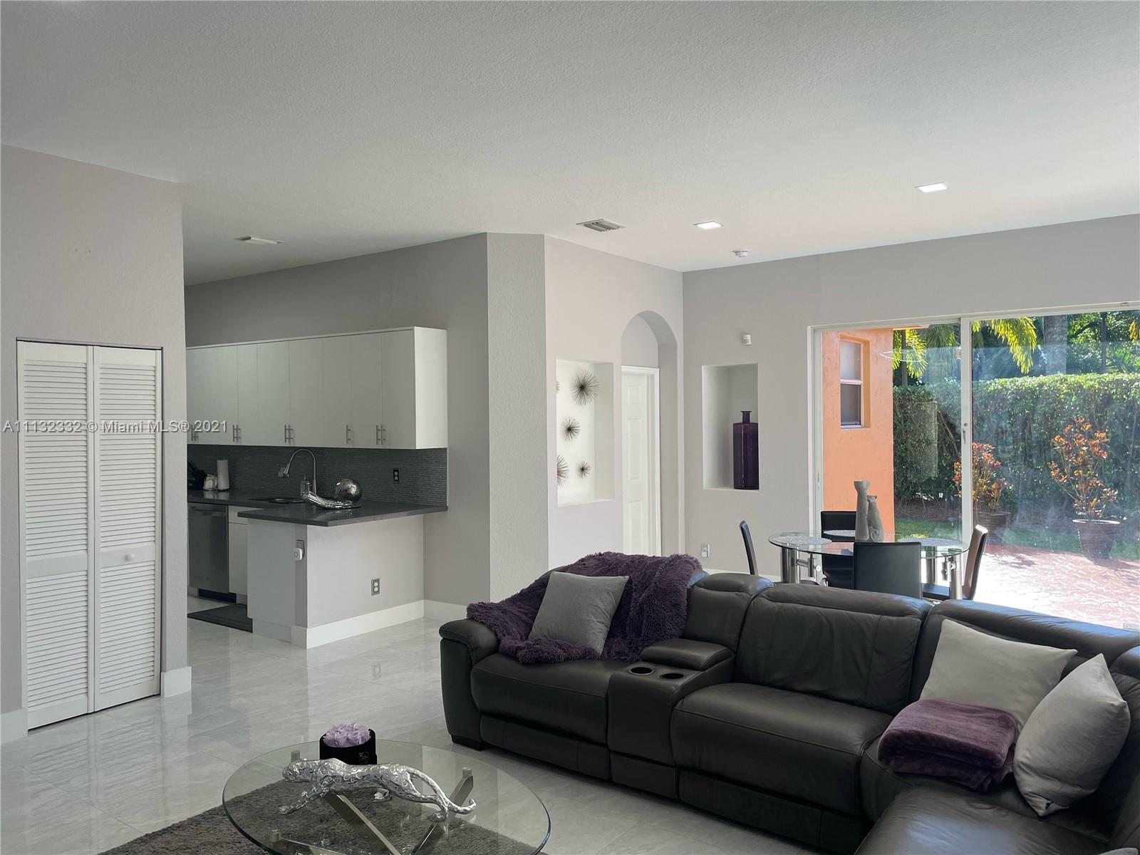 Located in the desirable Vizcaya community, 3 bedroom/2 bathroom split floor plan home was remodeled in 2017, received a new roof in 2019, and boasts luxurious upgrades. Large gray & white porcelain tile throughout the entirety of the home, extravagant chrome light fixtures and finishes, stainless steel appliances, Nest thermostat, and an oversized backyard are just some of what this home has to offer. The master bedroom features a raised tray ceiling and walk-in closet with enough shoe, hanger, and shelf space for two. The master bathroom includes an oversized shower including a multi-function panel, glass barnyard shower door, and floating vanity. The den is functional as a sitting room, dining room, study, or easily converted to a third bedroom. The community is gated and secured 24/7.