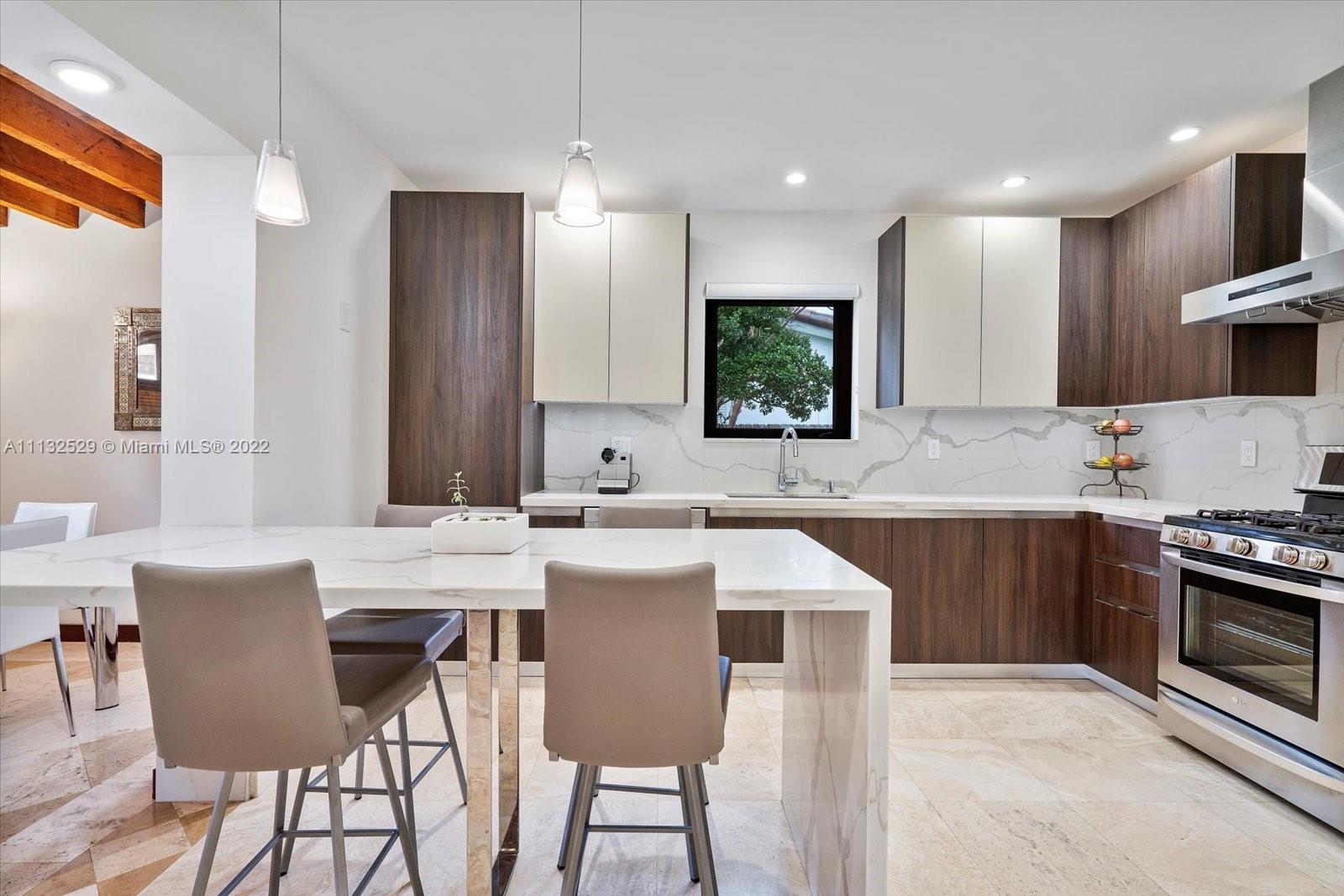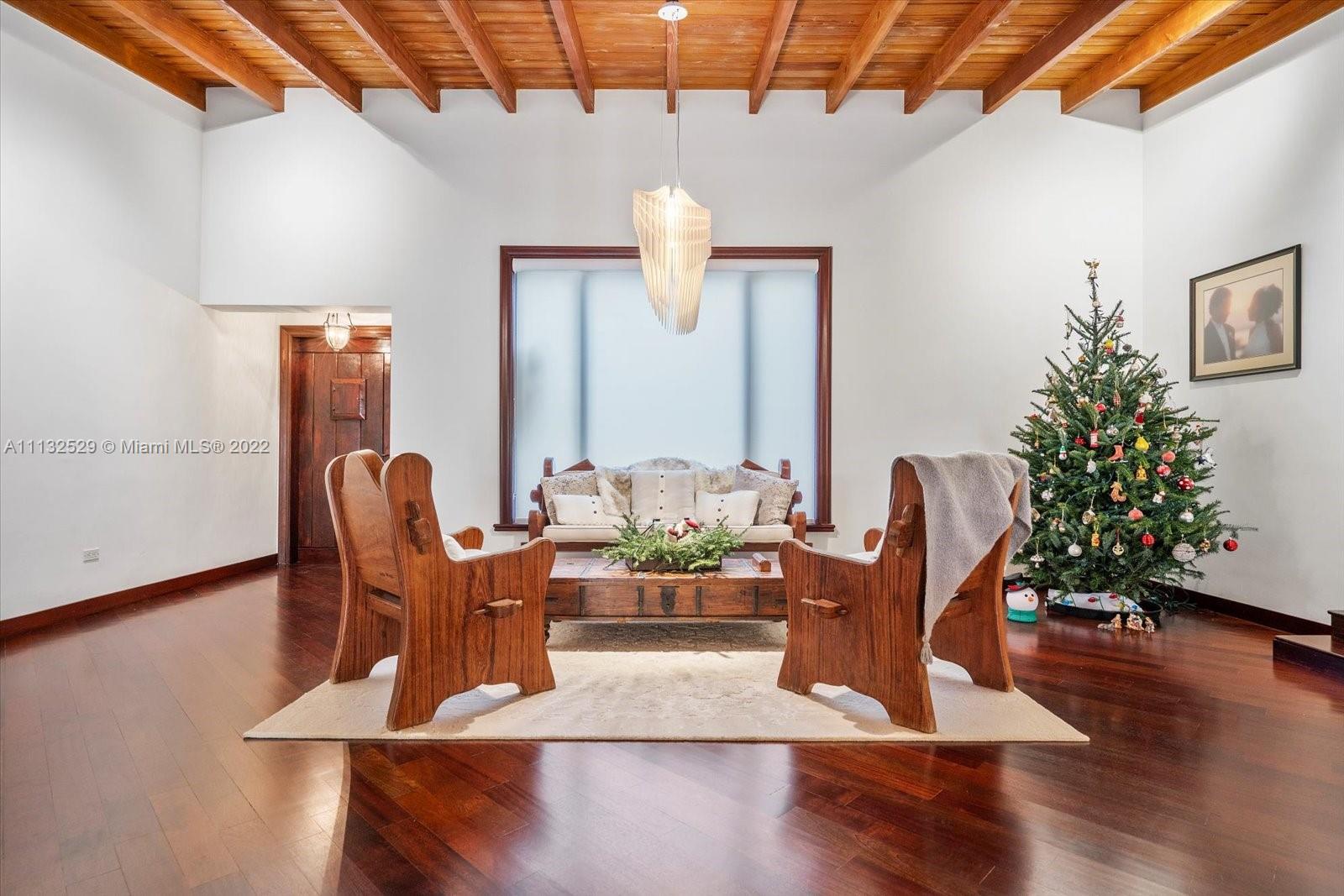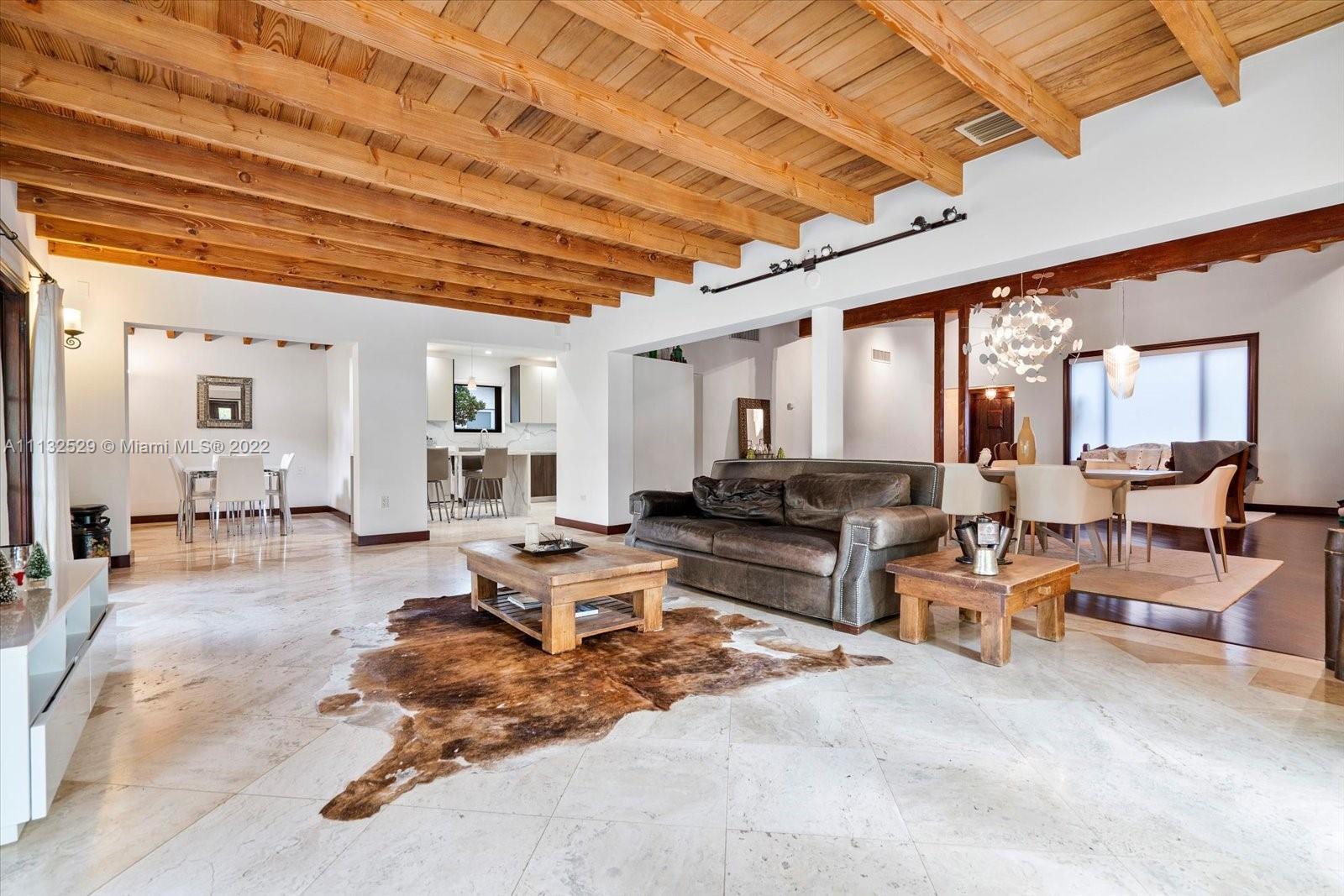 Rarely available 11,560 sq. ft. lot!!!! Across from prestigious Ritz Carlton Residences. Beautiful home boasting expansive formal living and dining room with 13 ft. high exposed wood beam ceilings. Recently remodeled kitchen with custom cabinetry and quartz center aisle and counters opens to the casual dining area and family room for an open concept. All bedrooms have original Dade County pine floors and plenty of natural light. Home has newly installed impact windows and Honduran mahogany impact French doors that lead out to a beautiful gallery and peaceful pool area. Ritz Residences construction is in the final stages. Street will be paved and landscaped upon completion.