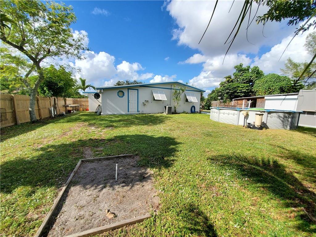Corner lot. Huge backyard with swimming pool and plenty of room for RV, Trailer or good old ,down home recreation. Great for Pets!!!Well maintained home with impact windows, new roof and history of TLC. Out building for storage or ancillary use. Shed with covered patio. New Tool Shed. New Water Heater. Floorplan includes Extra Room for multiple use.