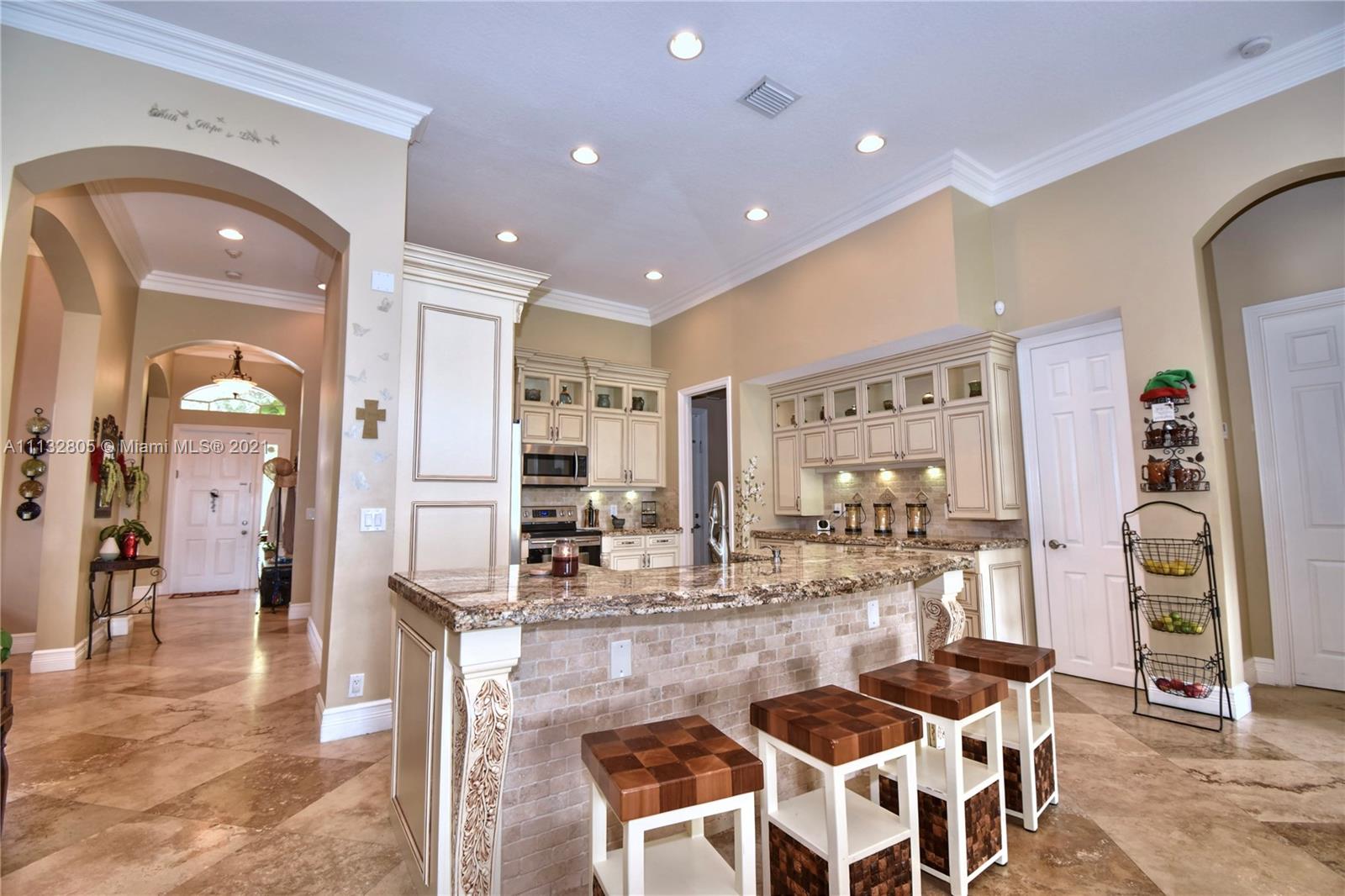 Spectacular home in Biltmore Estates. 1 Story Waterfront 4 bedrooms 2 1/2 bath .No expense was spared with every upgrade imaginable! Lake front, Room for Pool, cul-de-sac, stunning lake views from master and all living areas, crown molding thru out, sky-high ceilings, hard wood kitchen cabinets with granite counter tops, laundry room ,2 car garage and more.Within walking distance to the clubhouse, pool and playground!! Talk about Living In South Florida !!!!