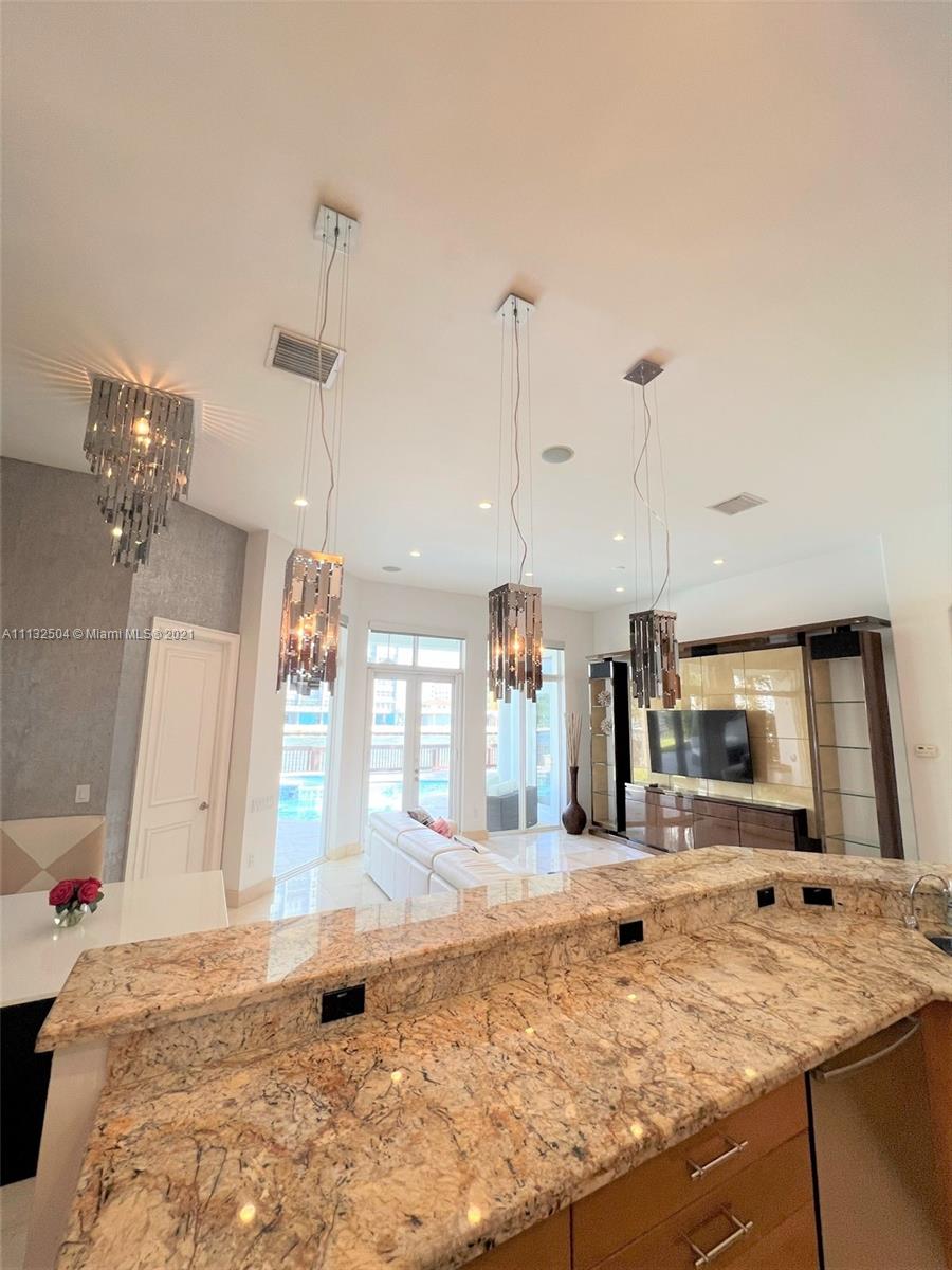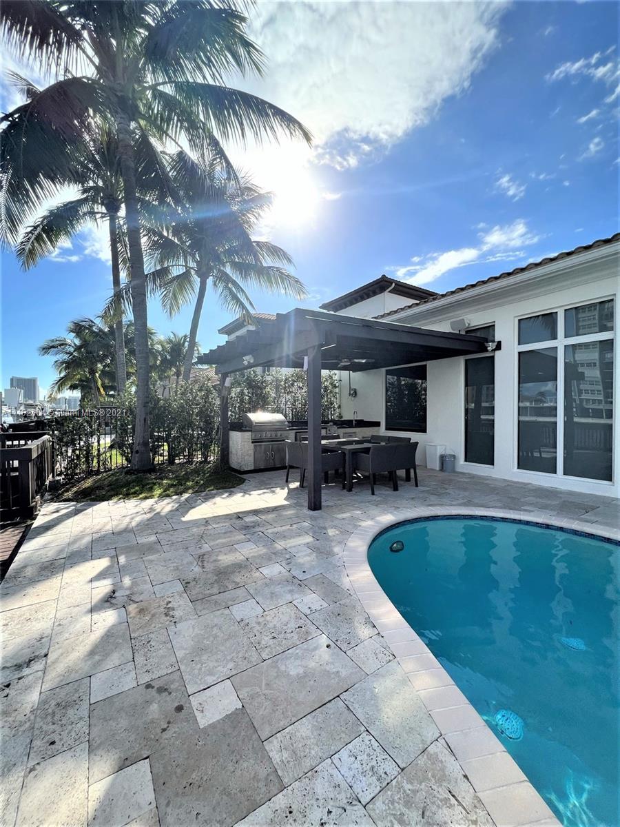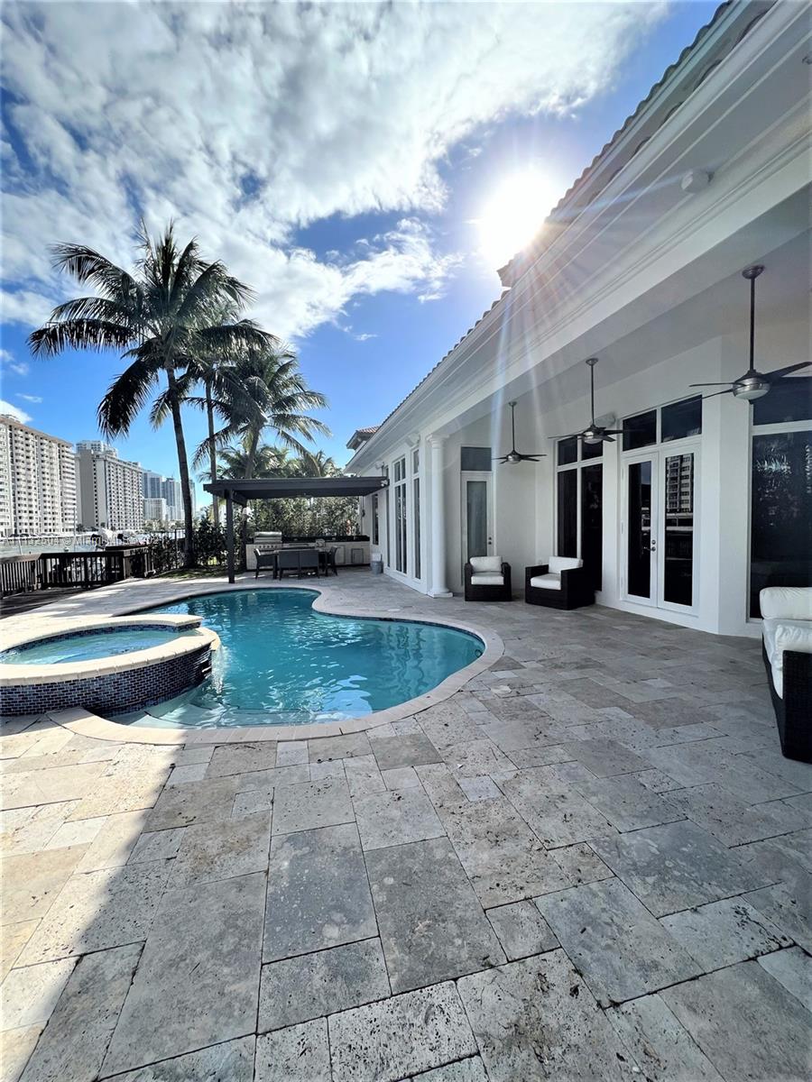 Elegant and unique house has 5 Bedrooms, 5 Full Bathrooms and 2 Half Baths,Huge ground level Master Suite is on the entry level Overlooking the Pool and Intracoastal. Open and spacious Floor Plan, 2 story high volume Ceilings, dramatic 2 story high Marble Fireplace , Gourmet Kitchen, Marble and Wood Floors, Steam Shower, Surround Sound System, Impact Windows, ,Entertainment Pool area with Summer Kitchen and Gazebo, Boat lift for 34 footer, Waterfront Planned Gated Community offers to residents a Fantastic ClubHouse with Tennis Court, Pool, Playgrounds, Fitness Center, Spa, Lush landscaping, Biking and Jogging Paths, 24 hours Security, minutes from the Beaches.