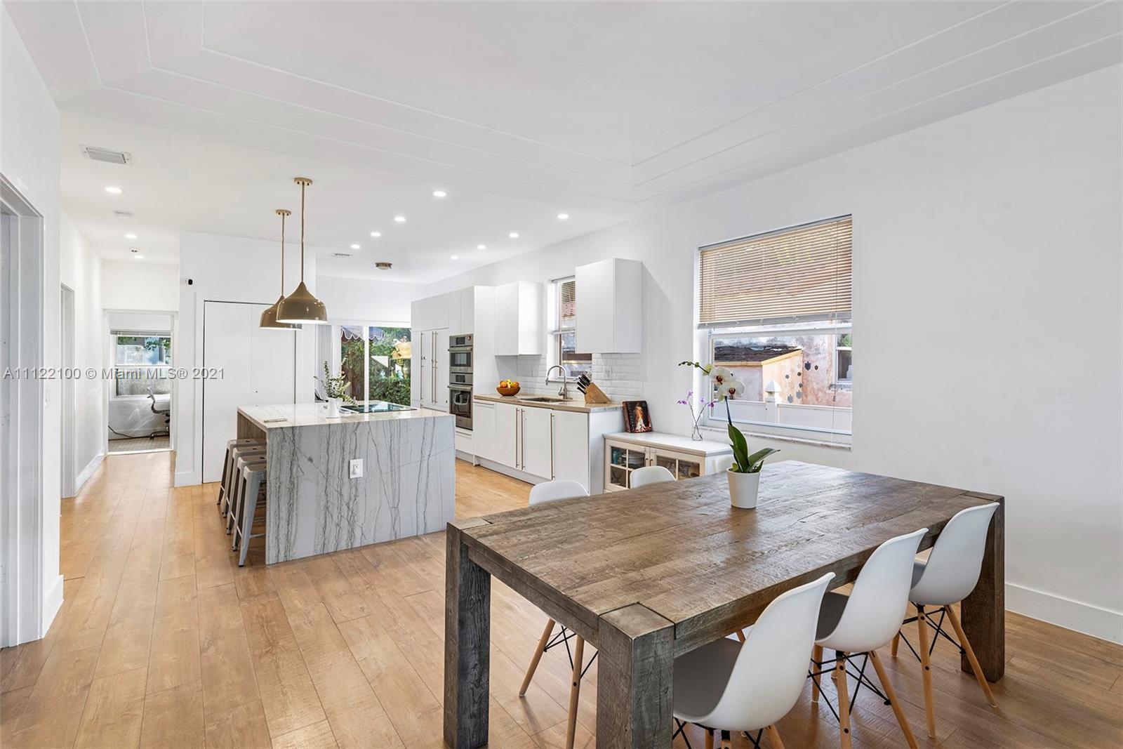 This charming Art Deco-style cottage is a true gem. Immaculately renovated, the 3 bed, 2.5 bath residence captures natural light and showcases thoughtfully curated interiors, with chic finishes and impact glass throughout. Open kitchen features oversized marble waterfall island, breakfast bar and top-of-the-line appliances. Spacious master bath offers double sink and pristine attention to detail. Located in the highly sought-after neighborhood of Surfside, this home is blocks from the Beach, Bal Harbour Shops, some of Miami’s best dining, A+ schools, this is the perfect place to call home. Total square footage for living area is 1850 sqft (Per Owner).