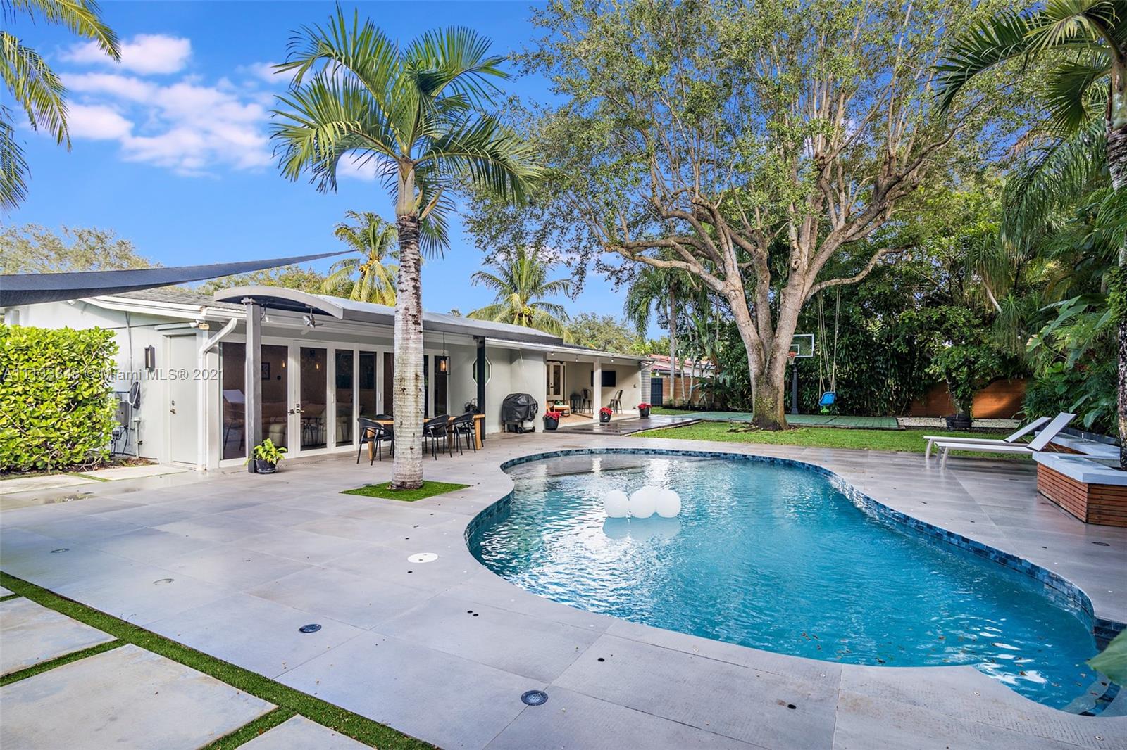 PINECREST BEAUTY WITH AN OPEN AND AIRY FLOORPLAN. TASTEFULLY RENOVATED WITH CHARACTER AND CHARM. ENJOY LOTS OF NATURAL LIGHT THROUGOUT AND THE COMPLETE PRIVACY AND COMFORT OF YOUR LUSHLY LANDSCAPED OVERSIZE YARD AND POOL AREA, COMPOSITE WOOD DECK IDEAL FOR ENTERTAINING. HOME OFFERS 3/2.5 LAYOUT WITH SPLIT BEDROOM PLAN. GOURMET KITCHEN WITH CUSTOM FINISHES, WOLF HOOD, WINE COOLER, QUARTZ COUNTER TOPS, GLASS BACKSPLASH. ALARM SYSTEM, IMPACT WINDOWS, MASTER SUITE HAS JACUZZI TUB, SHOWER, HIS/HERS SINKS. "A+ SCHOOLS IN A HOT & DESIRABLE AREA. AT FULL PRICE OWNERS MIGHT INCLUDE FURNITURE. LOTS OF POTENTIAL. A MUST SEE PROPERTY.