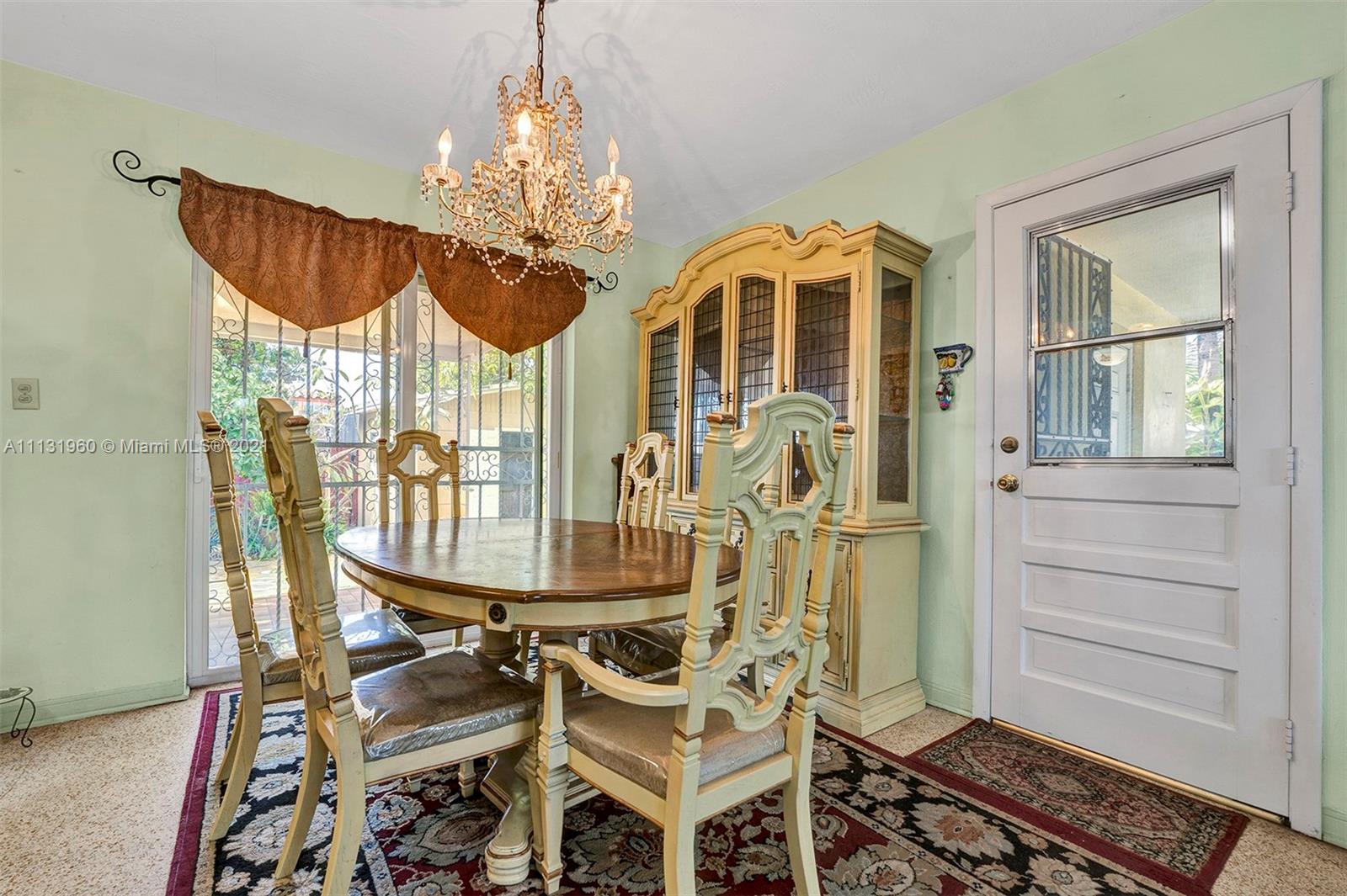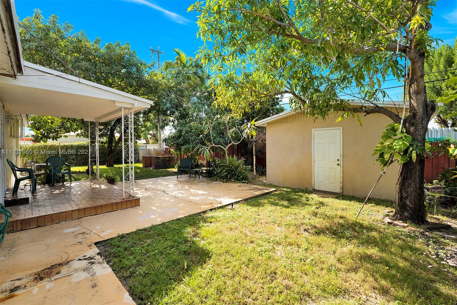 This 3bed/2bath, 1 carport, single family home with room for an additional car in the driveway has two bedrooms and a spacious living area greeted by natural sunlight with it's eastern front facing exposure. 2021 NEW ROOF! Conveniently located to shopping, schools, medical offices and local favorite restaurants. Plenty of room to dream and make this space your own with the oversized bedrooms and living space with nicely kept Terrazo flooring throughout the home. Take care of your DIY Projects in the dedicated Storage/Workspace in the backyard. Wind down in the evenings watching the sunsets from your back porch with western exposure surrounded by lush landscaping and tropical fruit trees including avocadoes, mangos and oranges. Hurricane inpact windows. Furniture and car do not convey.