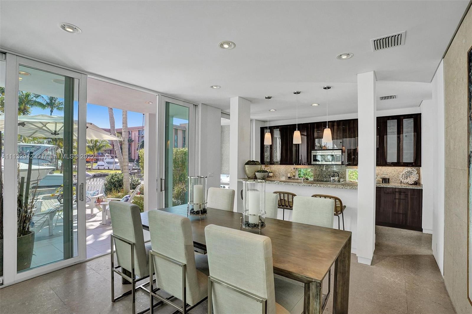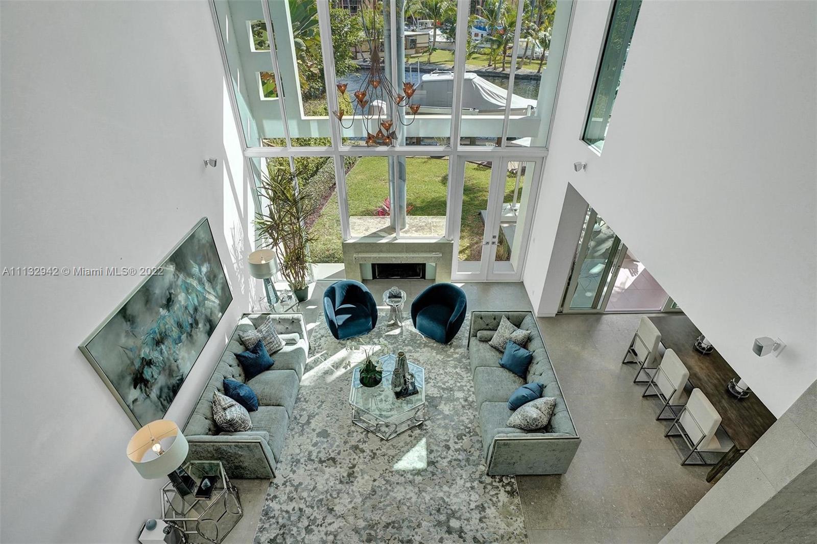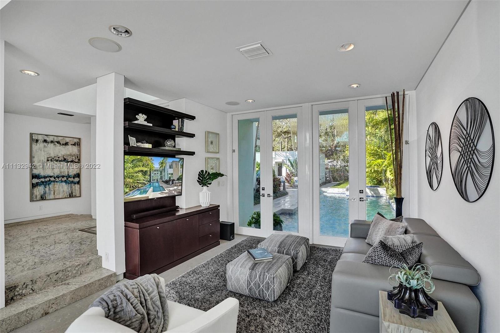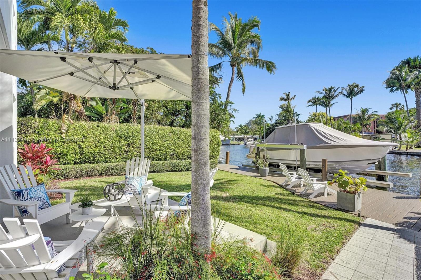 A beautiful and luxurious sanctuary on the New River with direct ocean access and no fixed bridges. Designed and built by a well-known architect/designer as his personal residence, this modern home features 3 bedrooms with an upstairs owner's suite comprised of a spacious bedroom with balcony overlooking the water; yoga/ meditation room; spa-like bath with double shower and Jacuzzi tub; separate office with views of the pool and River; and morning kitchen. The lower level is an entertainer's dream with dining and living rooms that feature full height glass French and sliding doors that open to the pool and River-side patio. Situated on a heavily treed and landscaped site, this home offers privacy and outside views from every angle.