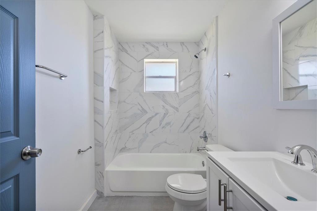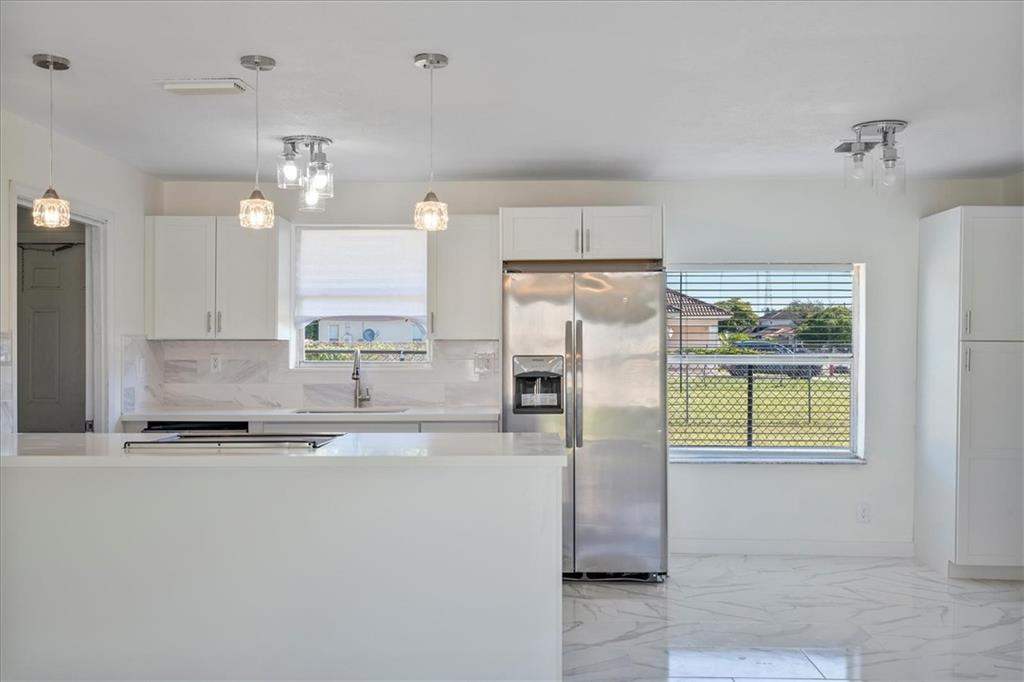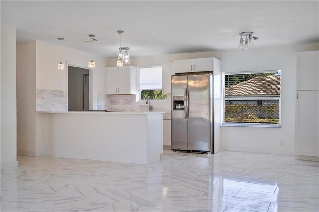 Completely remodeled 3/2 home with oversized 2 car garage. Home features new kitchen with white shaker cabinets, quartz counter tops and stainless steel appliances. New waterproof laminate flooring in all bedrooms. All living areas have marble look tile. Bathrooms have also been remodeled with designer tile and fixtures. New 3.5 ton AC and water heater. New ceiling fans and light fixtures. Newer electrical panel and storm shutters for all windows. Washer and dryer hook up in laundry room. Easy show.