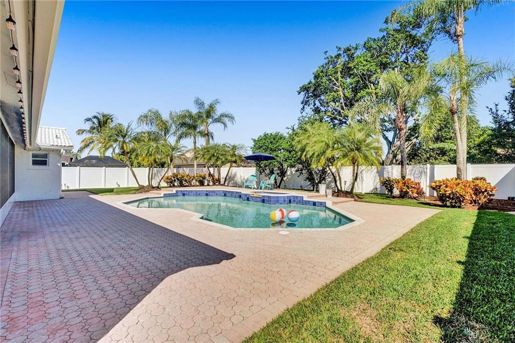 Beautiful King Arthur model 4/3.5 absolute must see! Immaculate and move-in ready! This house has so much to offer;Gorgeous impact door was just installed 2021;Split ACs; Beautiful kitchen offers wood cabinetry, granite counters & stainless appliances;Newly renovated bathrooms are a dream come true;His & Hers walk in closets;His and Hers full bathrooms;Spacious master w/ room for office;HUGE 11,253sq.ft. lot;LOW HOA$340/YR;2006 S-tile roof (no flat roof);Salt Water Pool & spa;10’x30’ covered screened patio w/ pavers throughout patio;Beautiful tile flooring in living area & higher profile baseboards;paver driveway;hurricane panels;impact garage door;sprinkler system;2020 beautiful white fence;Under-air laundry room w/ laundry tub;Great schools; close to hospitals,places of worship, =parks