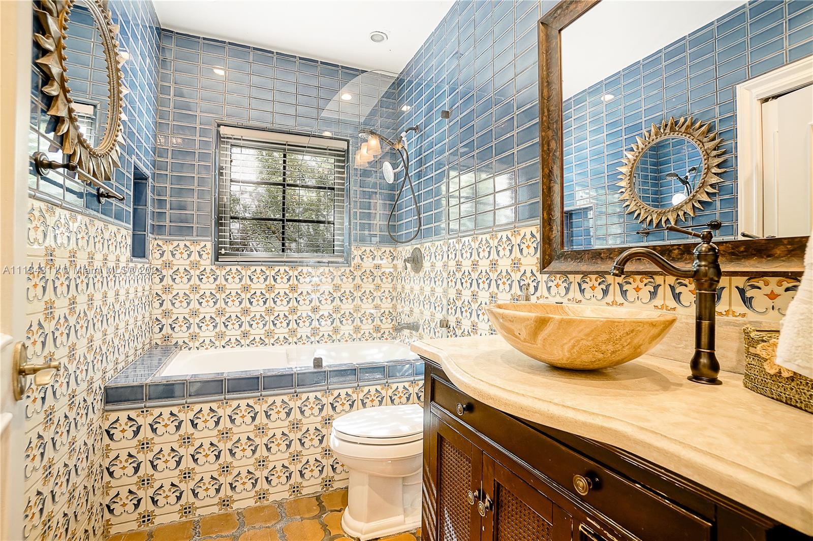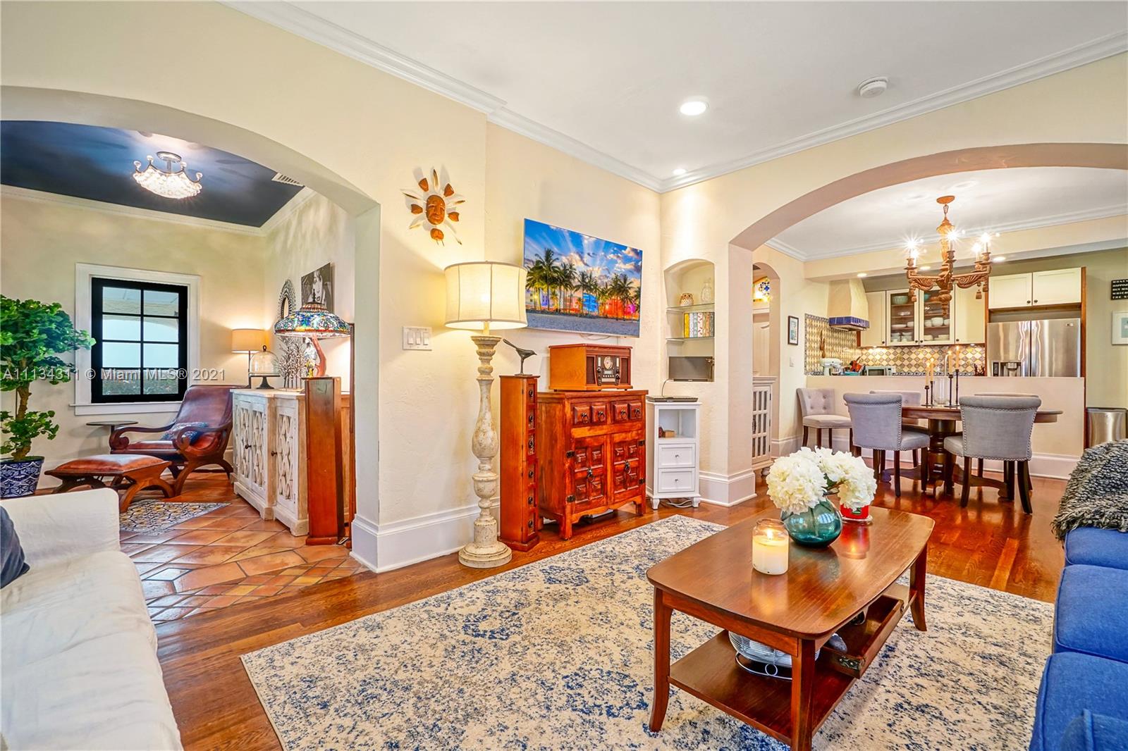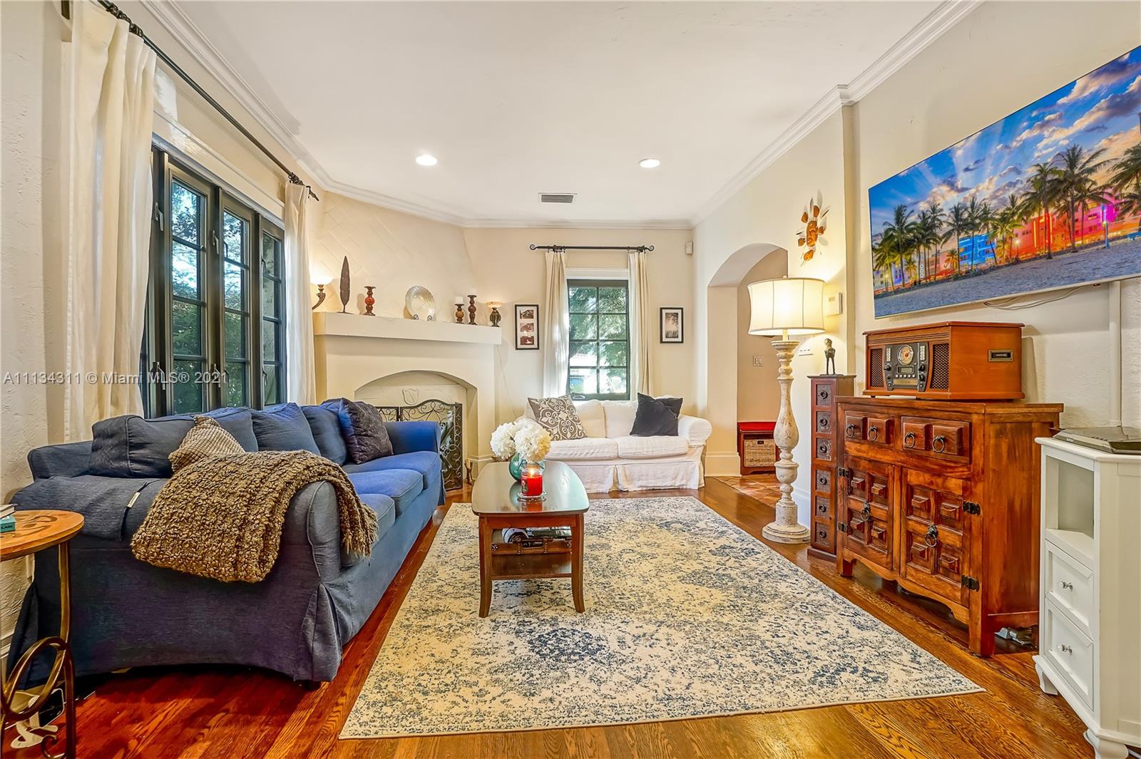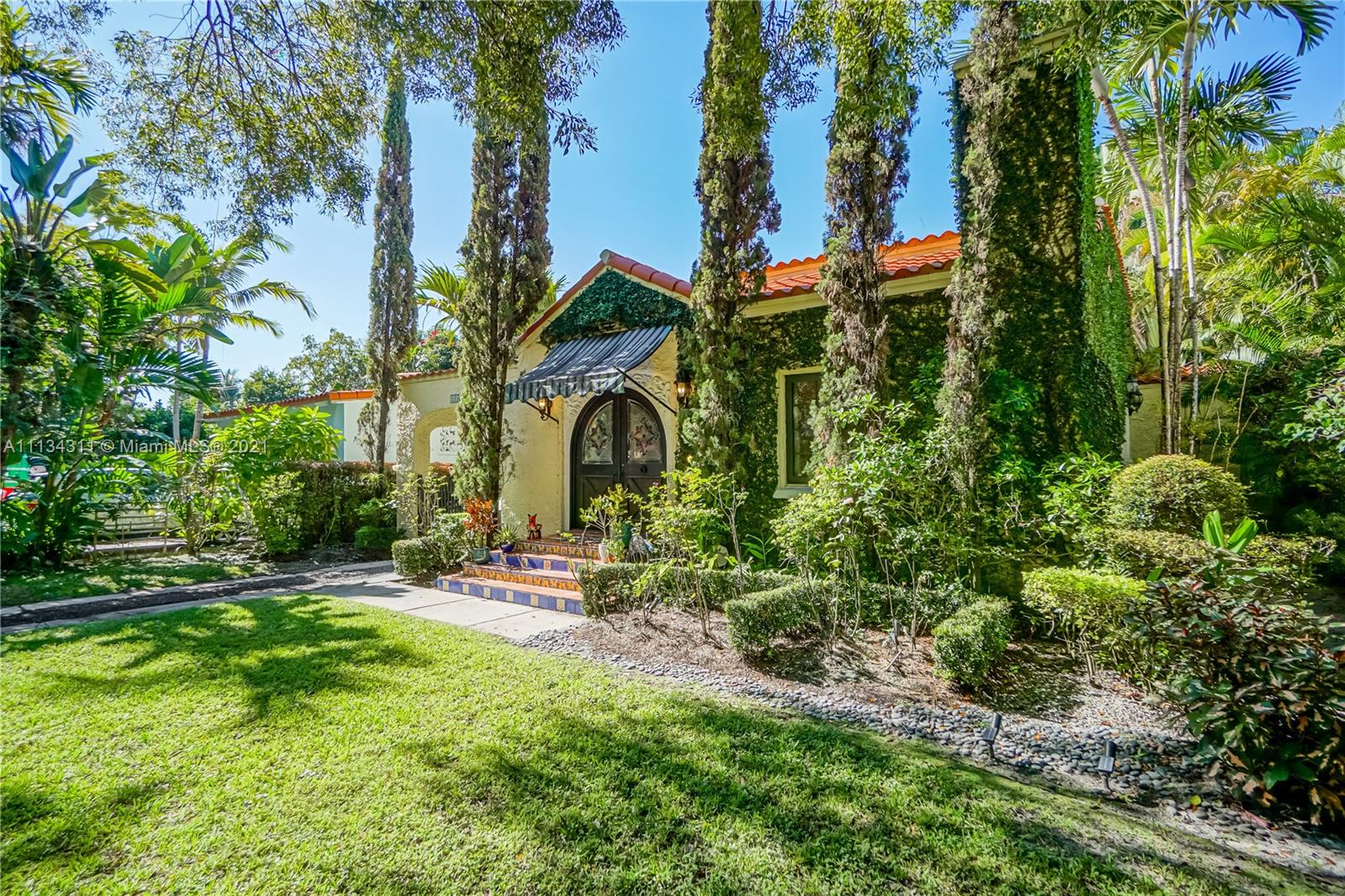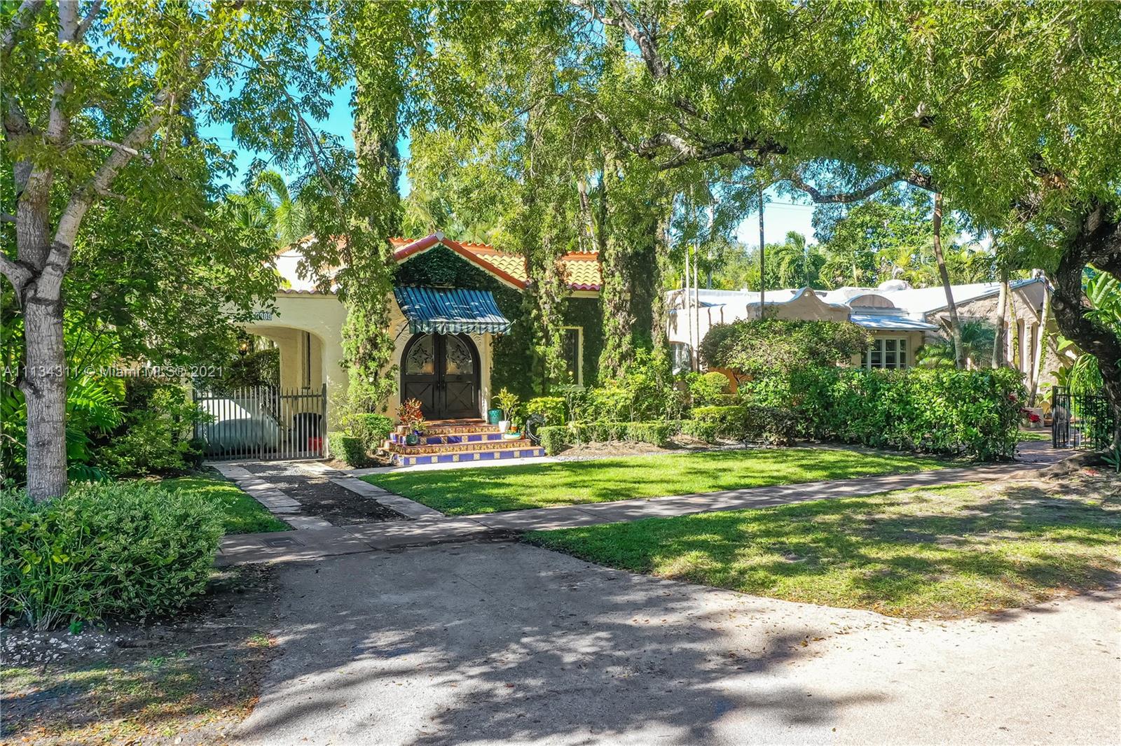 Stunning Old Spanish gem in desirable quiet neighborhood minutes from downtown Coral Gables. Charming 2/1 in main house with open floor plan, working fireplace, hardwood floors, beautiful tiles and renovated kitchen/gas stove plus 1/1 detached guest house cottage. All new impact windows, new roof (2020), new pipes, new ducts/insulation, updated electric, new tankless water heater. Large master bedroom with oversized closet and high ceilings. Cozy garden with old Chicago brick pavers perfect for outdoor entertaining. Washer/Dryer area off from kitchen. Completely move-in ready!