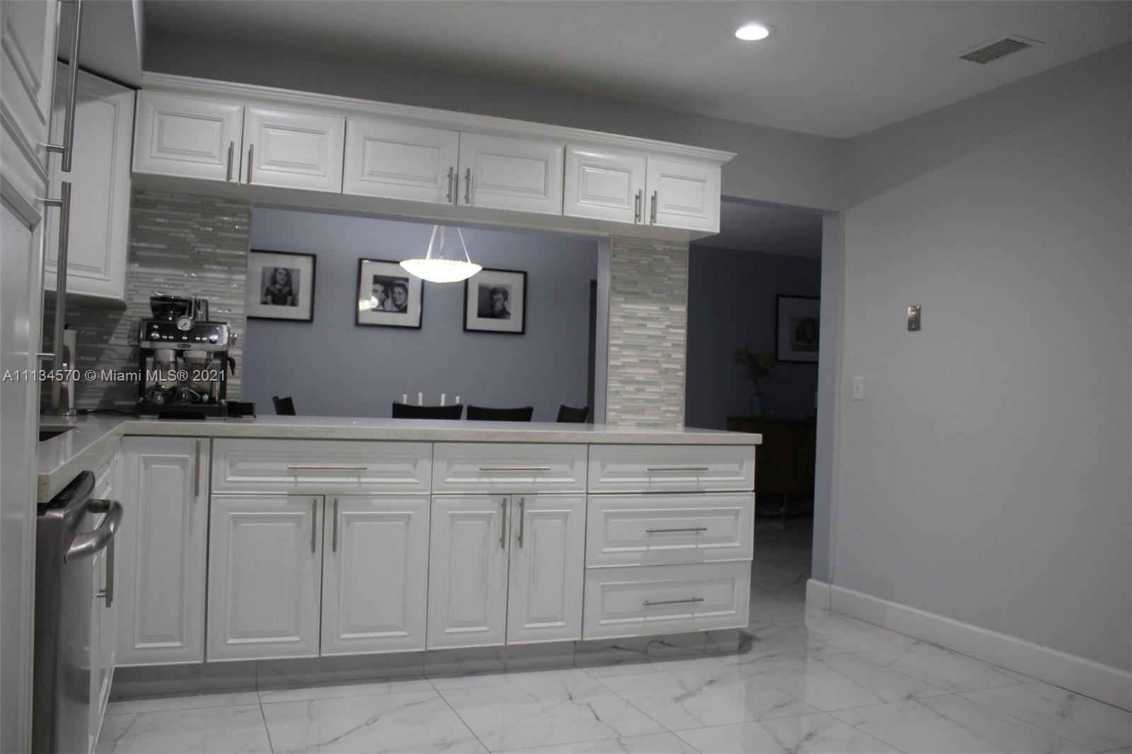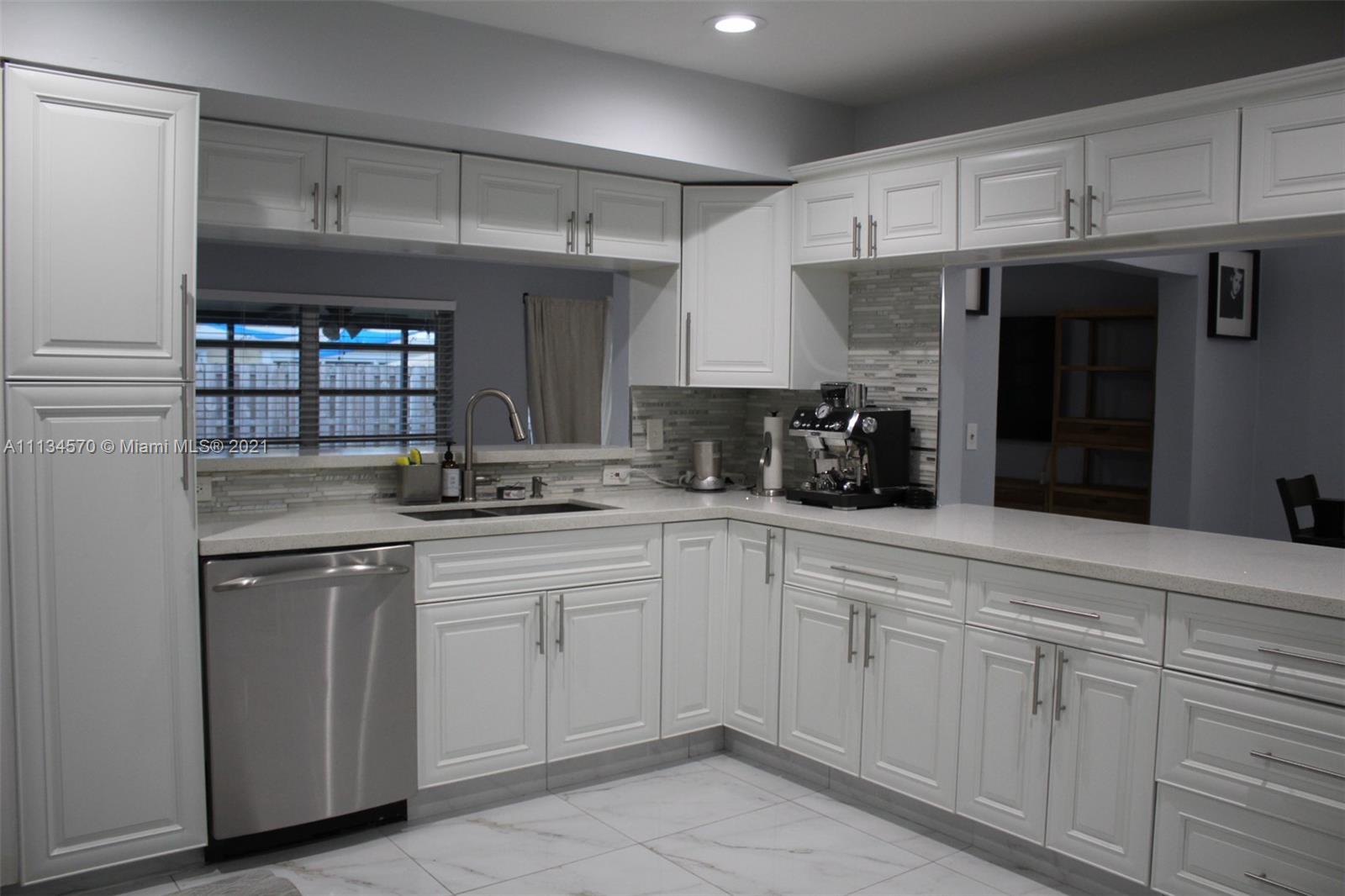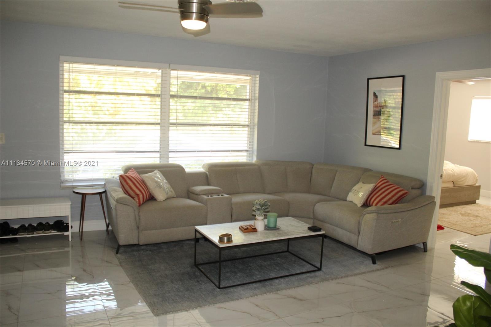Your dream home awaits in the beautiful Hollywood Lakes neighborhood, walking distance from Downtown Hollywood's vibrant Young Circle and Hollywood Beach Boardwalk. This 2,155 sqft 4 bed 2 bath home has been renovated and updated. It features a split layout with large porcelain floors, oversized updated quartz countertops throughout with gorgeous white cabinets providing plenty of storage for the cook in you. The large master bedroom has 2 closets and a huge modern master bathroom that is sure to please. The other 3 bedrooms are stacked yet split from the master and Florida room that is open to the kitchen and dining. Wait until you see the large laundry room with extra storage, it will blow you away. Enjoy the screened-in patio that is nicely placed inside of a completely fenced yard.