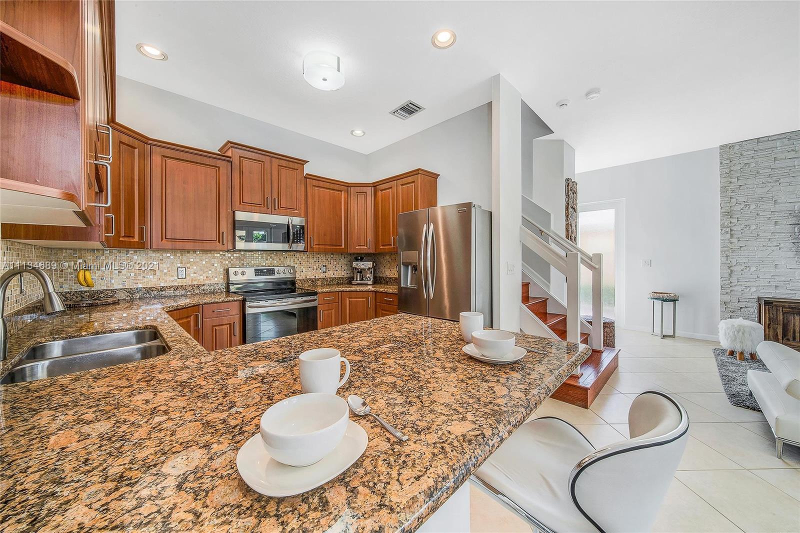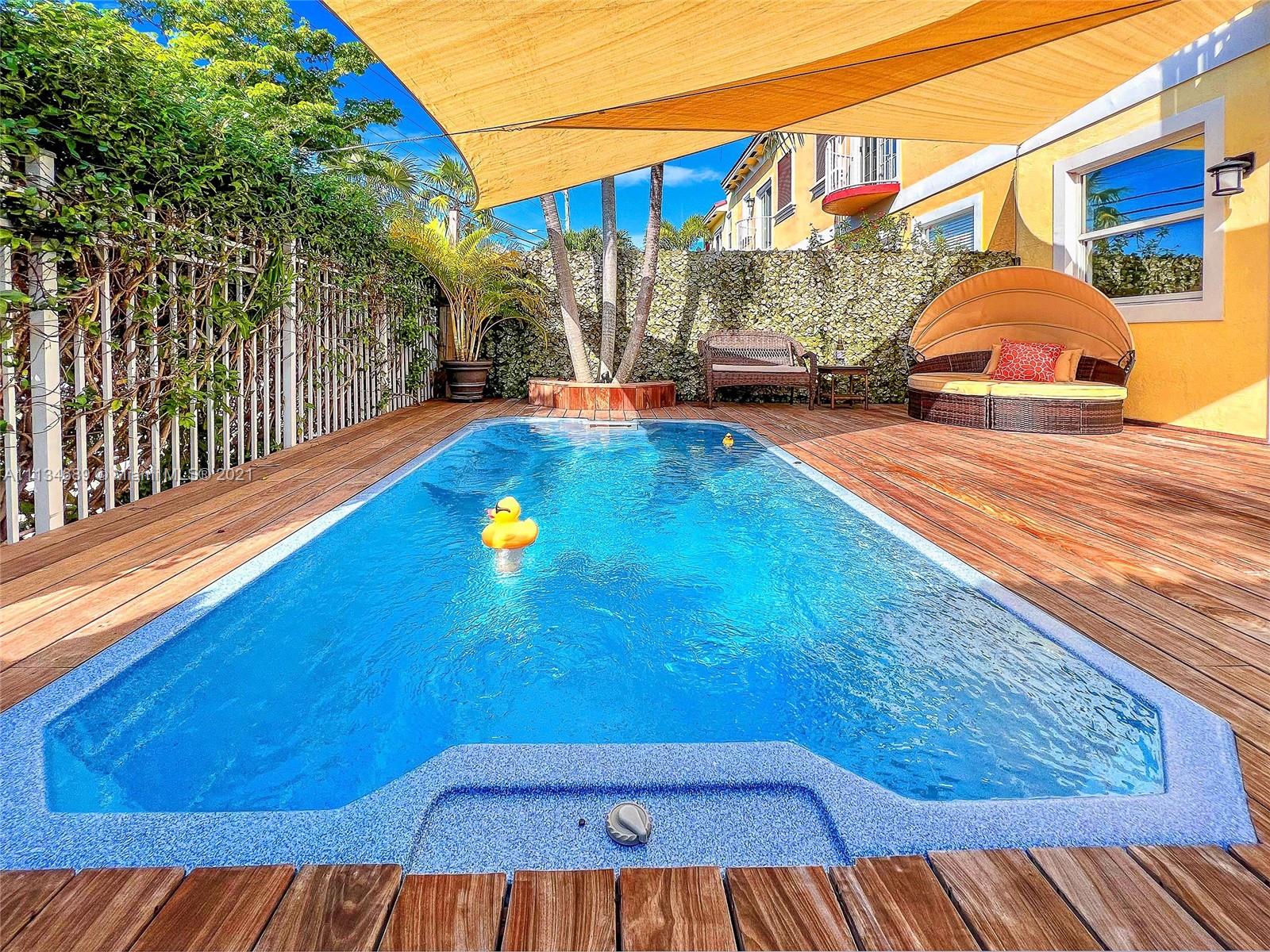 Enjoy carefree luxe living in this spacious updated two-story Lake Ridge corner townhome. Totally turnkey with volume ceilings, new designer stone veneer wall, bright open flow living, dining and eat-in kitchen with double French doors to the private fenced entertainment patio with plunge pool and beautiful Ipe wood deck—great to entertain or relax! Unwind in the large main suite retreat with vaulted ceilings, spa-like bath with soaking tub, large textured porcelain-walled shower, pebble stone floor, double vanity, and walk-in closet. Bonuses: spacious guest rooms, updated baths, large two car garage, impact windows-doors, newer washer-dryer, and updated appliances. All in a boutique community in a fantastic Lake Ridge location close to the beach, Galleria, Sunrise shops and restaurants.