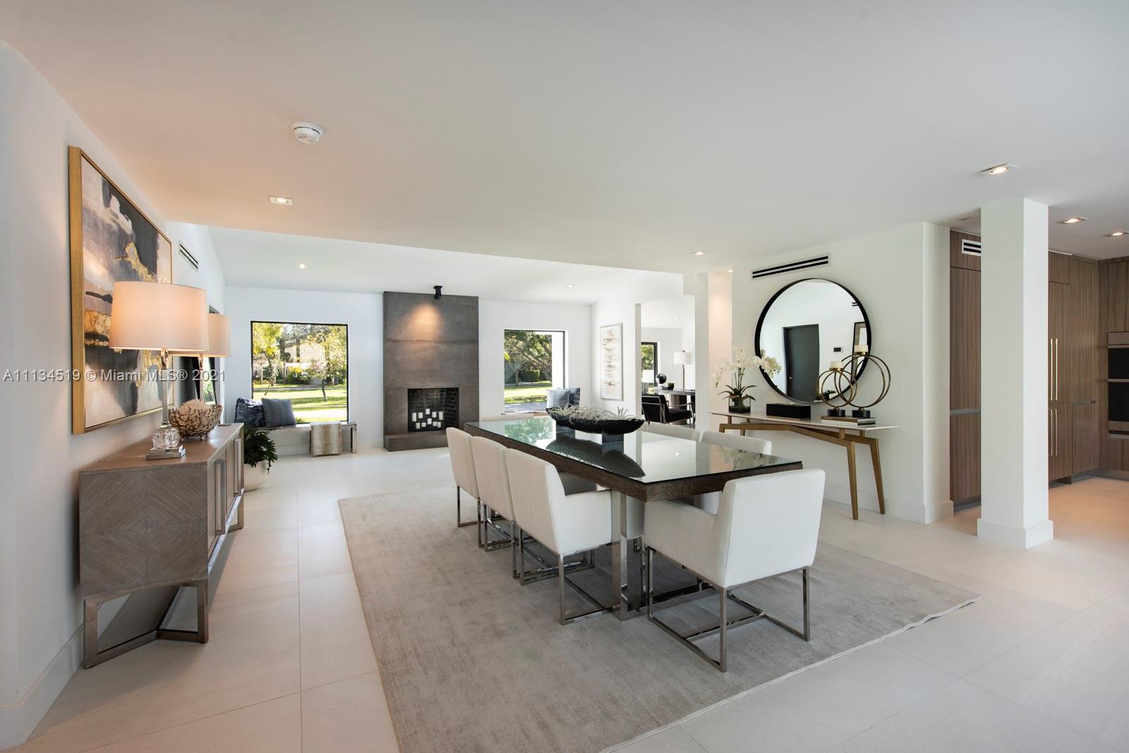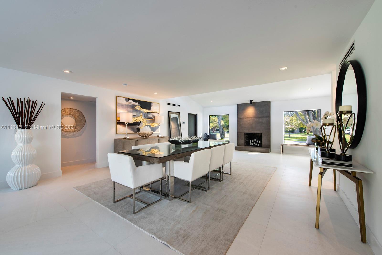 This mid-century modern home is located in the heart of the desirable Village of Miami Shores, situated in front of Constitution Park. The 2021 renovation is complete with cascading terraces, a spacious entry accented with a wood burning fireplace and open floor plan with porcelain floors and sliding doors opening to an equally expansive veranda. The open gourmet kitchen with quartz countertops and full suite of Dacor professional grade appliances. A lower level living space with a full bath could be used for a playroom, office or gym. The downstairs living area offers a wall of sliding doors leading to a covered outdoor kitchen and dining area, fully built out with an ice maker, beverage center, sink and 36” gas grill. Close to shopping, restaurants, and world class beaches!
