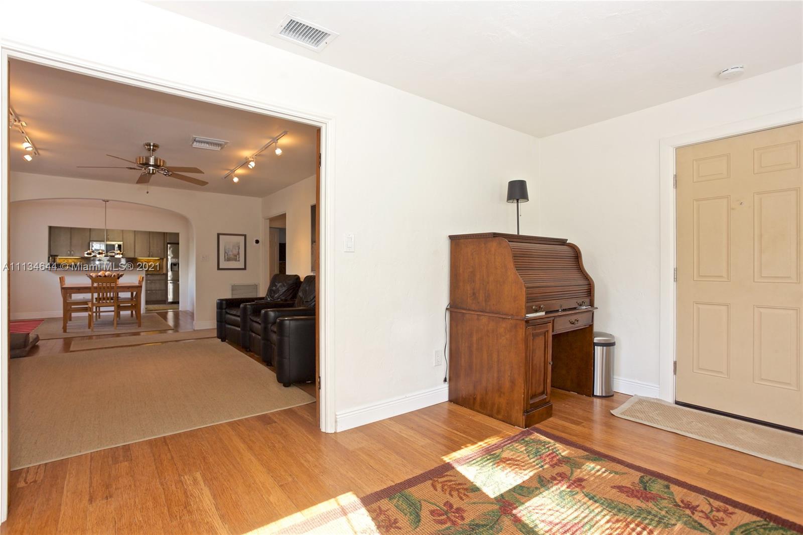 Stylish and unique home in the heart of Hollywood Lakes. Perfect family home or high-end Airbnb. The main house is a 2 bedroom 1 bath with wood floors and a custom kitchen, and the addition is a freshly renovated 1/1 with a large storage space AND 1-car garage. Impact windows on the entire property. Designer finishes in both bathrooms. Fantastic front porch overlooking the park with tennis court. A short walk to South Lake and bike ride to Hollywood Beach and Young Circle. A truly beautiful East Hollywood home you don't want to miss. View the Zillow 3D tour to get a full sense of the property. Move quick...owner's preference is to close by the end of the year. Note: county under-air square footage does not include addition.