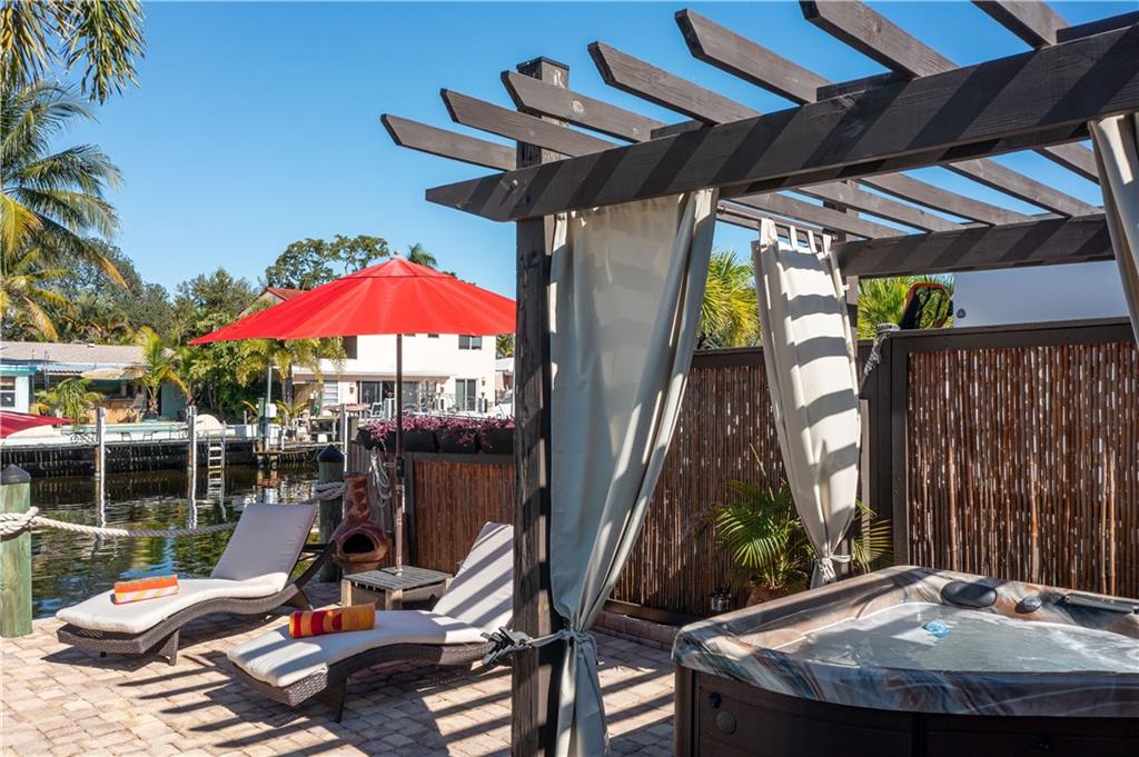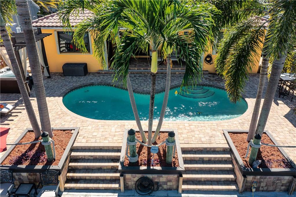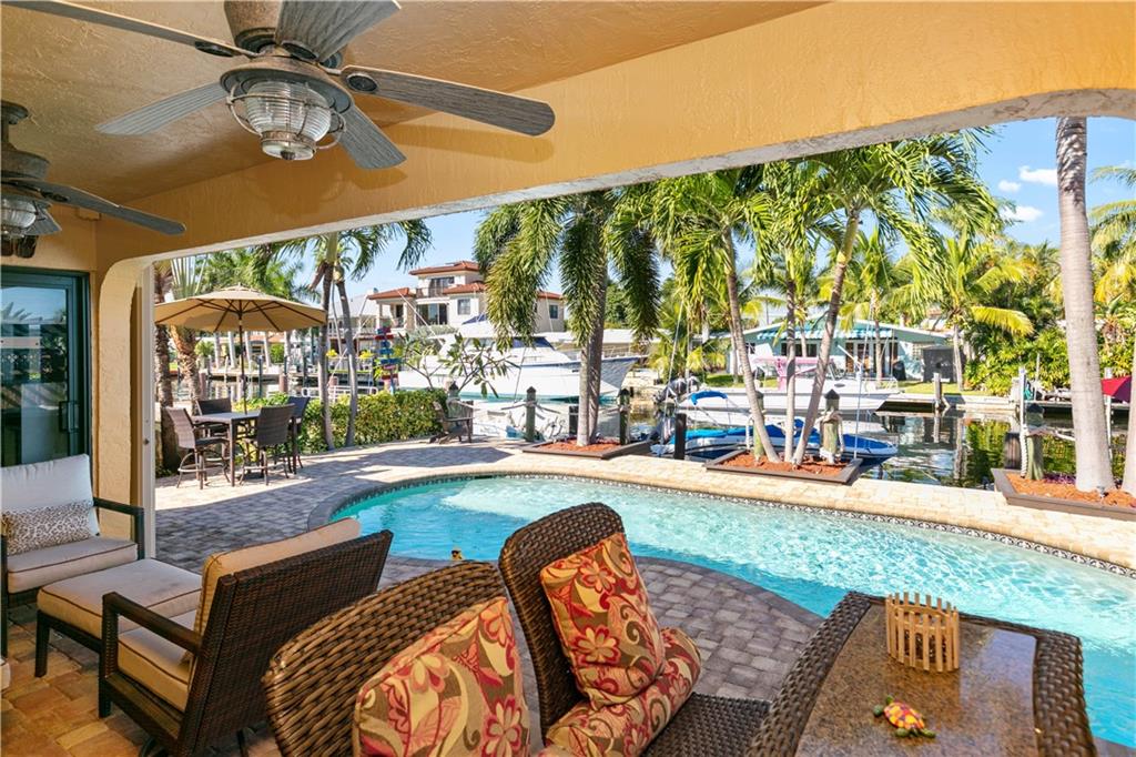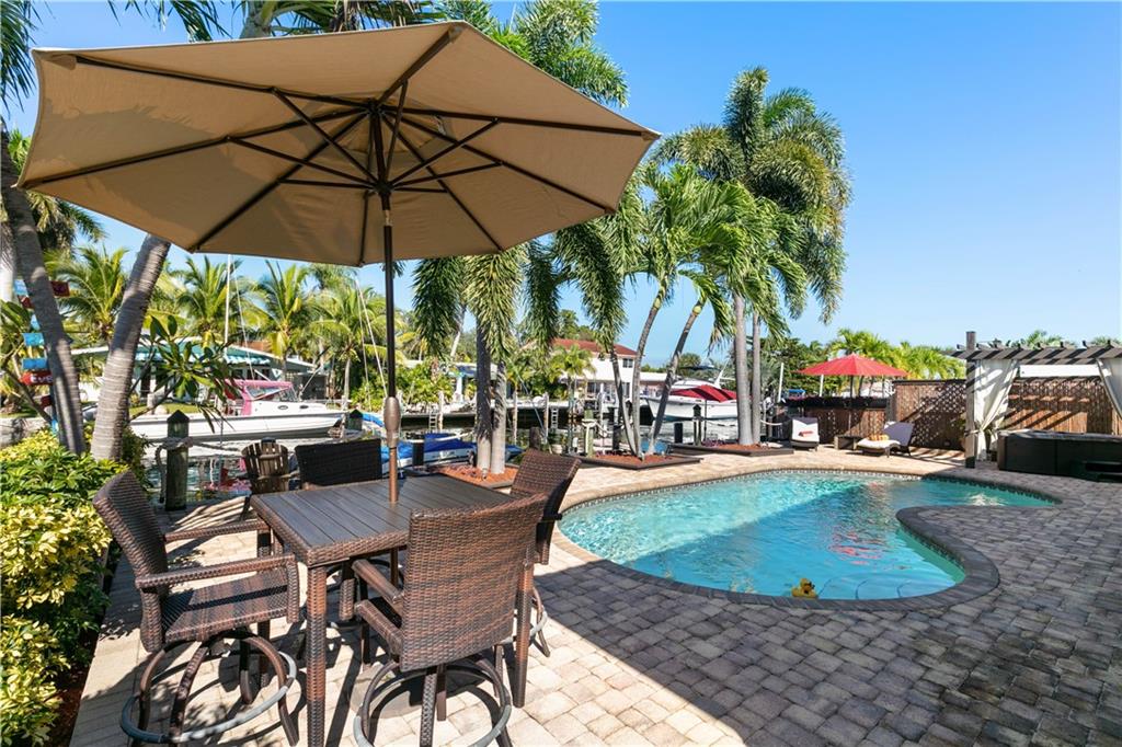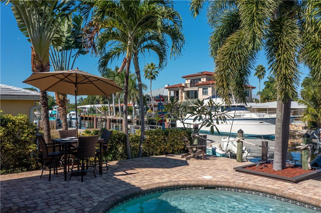 Immaculate resort home with safe dockage for your sailboat or yacht! No fixed bridges, minutes to the sparkling Atlantic Ocean. Split 3 bdrm plan, each with their own bath, plus an office provides ideal space while working from home. Great storage w/walk-in closets. Sleep enhancing blackout blinds. Gourmet kitchen overlooks pristine backyard. Entertain in style--covered patio area, newly surfaced pool, jacuzzi w/multicolored waterfall & privacy curtains, newly paved front & back yards, awesome outdoor sound system & mood enhancing lighting. All impact windows plus extra protection accordion shutters, 22 kw whole house generator, reverse osmosis water purifier, security system, natural gas connection at house, new storage shed, brand new 3 ton variable speed A/C, upgraded 200 amp electric.