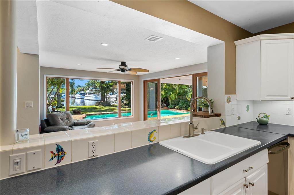 Your secluded + convenient waterfront paradise awaits at this updated meets classic-Florida-charm home. A 1/2-acre lot has 50 feet of water frontage. It is situated at the end of a canal w/ views of Secret Woods Nature Preserve. The back yard is colored w/ mango + shade trees and an in-ground pool w/ new pump. Open floor plan w/ Spanish Saltillo tile, neutral walls, large windows + kitchen (stainless steel appliances, bar seating + white cabinets). The living room flows to a massive covered patio for entertaining. The primary bedroom is separate from 3 other bedrooms. Primary ensuite bath remodeled w/ dual sink, glass shower + fresh tile. Downtown Ft. Lauderdale, FLL Airport, the beach + more in less than 10 minutes! New roof (2021)!