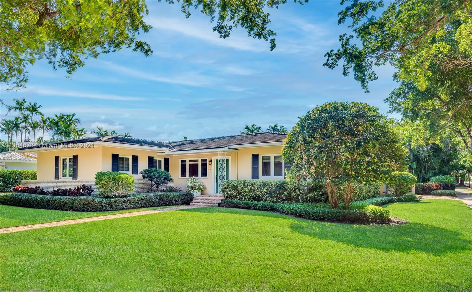 New Listing close to the Library in central Gables. This 4bdrm/4bath home has 3051 adj. sq. ft and sits on an 11,328-ft corner lot. Ready to move into with many charming features. Living room with decorative fireplace, Formal DR, newer kitchen with an island overlooks Family room. Two bedrooms with two baths in the front plus den and a spacious main suite that was an addition in the back. Lots of closets and storage space. Wood floors. The home is built around a courtyard which has a carport, garage, covered patio for entertaining, a guest room with a full bath, plus a putting green in the back yard. Pristine condition. Well located. Short closing possible. FIRM LIST PRICE OR HIGHER EXPECTED. This home has everything the current buyers are seeking. Offers accepted through Sunday, the 19th.