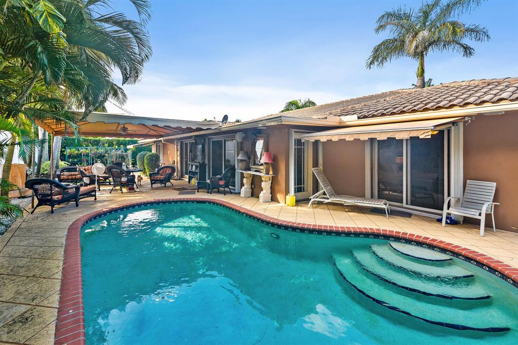 Beautiful home located in one of the most sought after locations in Coral Ridge. Offering 3 bedrooms, 2.5 bathrooms with a split floor plan, this home features a brand new kitchen with quartz counters and stainless steel appliances, new porcelain tile floors throughout living areas, formal and casual dining areas, an extra large family room, and a 2 car garage. Rear sliders open out to the private yard with paver pool deck, lush tropical landscaping and heated pool.