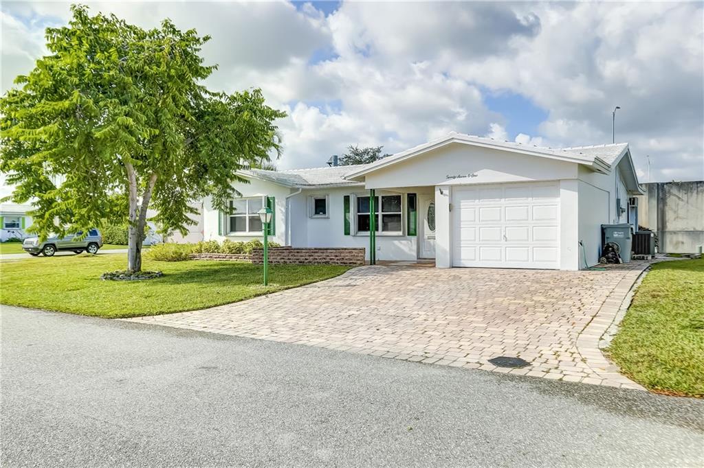 Beautifully remodeled home on a corner lot in the best 55+ community in Broward: LEISUREVILLE. This home has remodeled kitchen, updated bathrooms, walk-in closet; wonderful layout with a separate laundry/utility room, 1 car garage and a large Florida room in the back. Leisurevile is a serene golf course community close to I-95, US-1, minutes from both Pompano Beach & Deerfield beach, close to shopping, dining and lots of parks. Community offers free golf course, 2 heated swimming pools, club house, shuffle board, pool table, ping pong & courtesy bus. The HOA maintains this community perfectly; maintenance fee includes water, sewer, lawn, painting roof every 2 years and painting homes every 4 years. Pets are welcome.