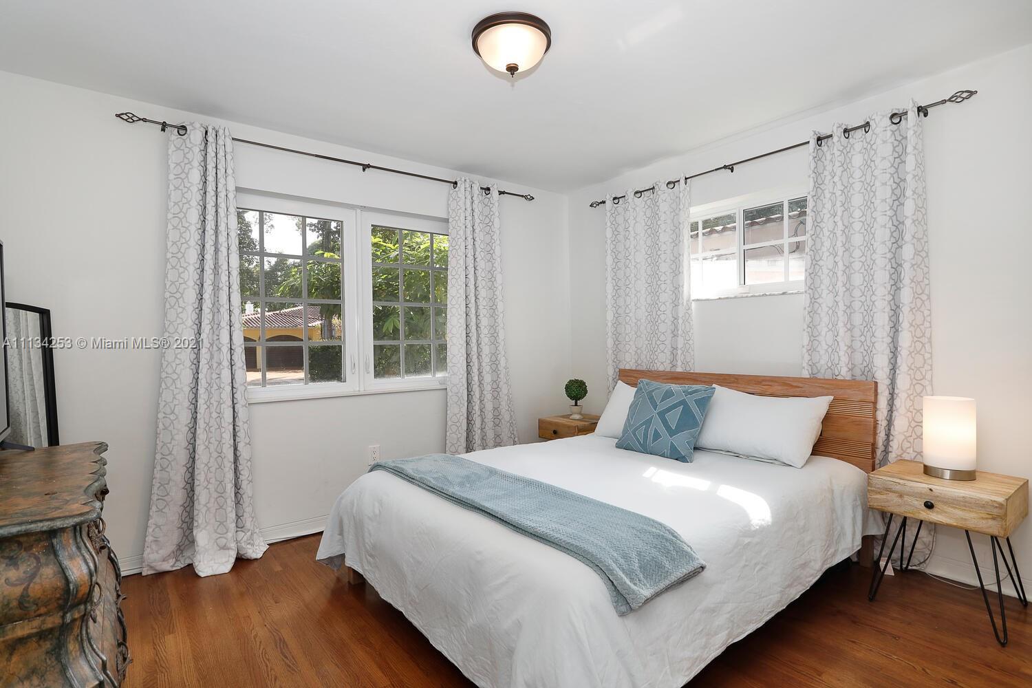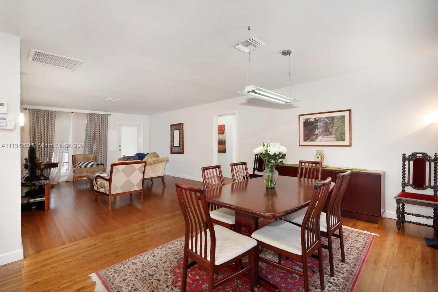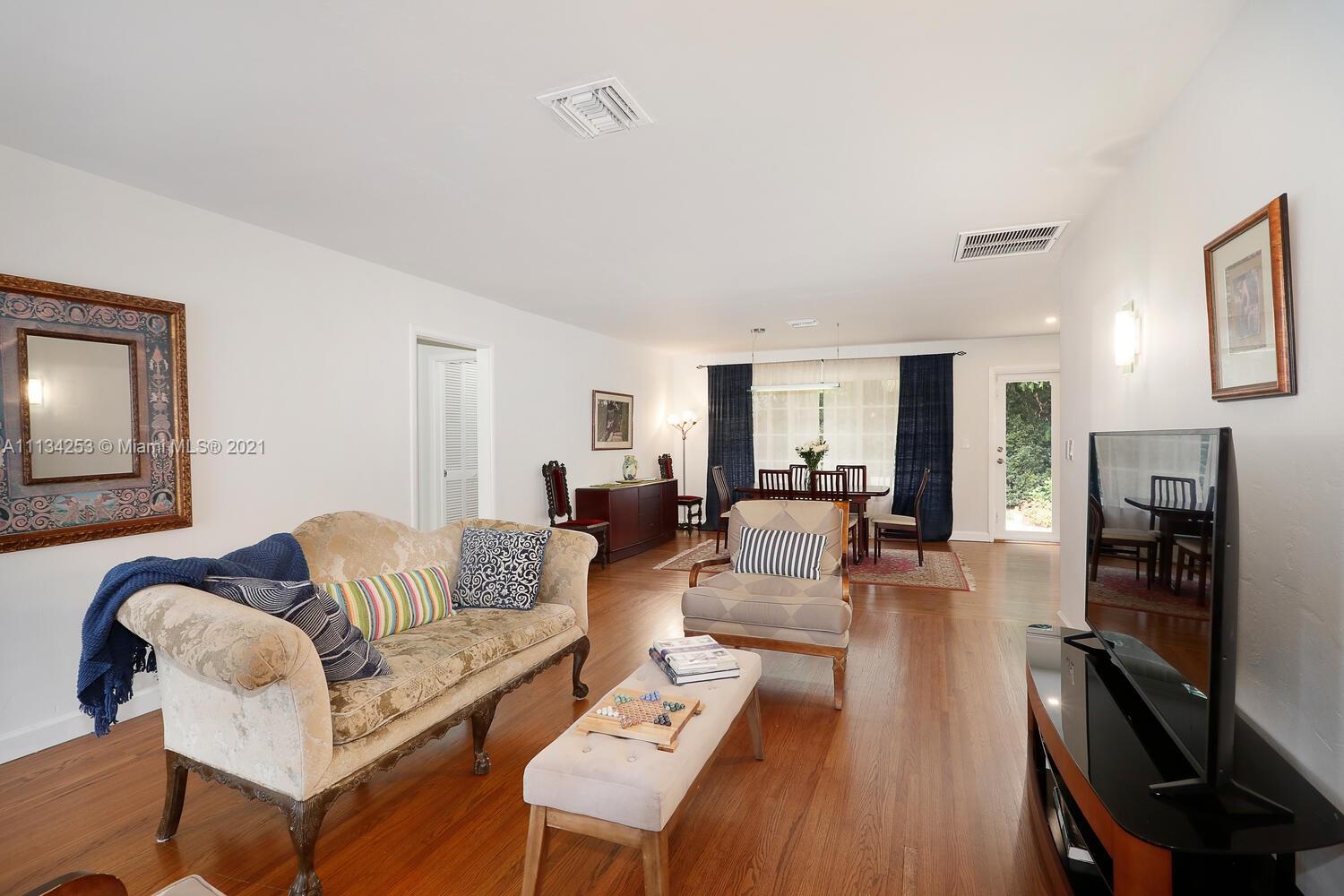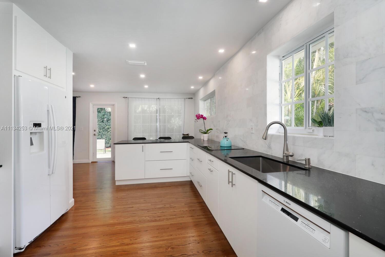 Charming home on a quiet, tree-lined North Gables street. Minutes to world-class shopping, dining & entertainment in downtown Coral Gables. Light-filled living spaces with beautiful hardwood flooring throughout. Updates include impact windows & doors, both bathrooms & AC system. New, modern-style kitchen features white cabinetry, stone countertops & breakfast bar. Enjoy outdoor living in the private back yard with lush tropical foliage & ample room to add a pool. One-car garage. Close to Coconut Grove & Miami International Airport.