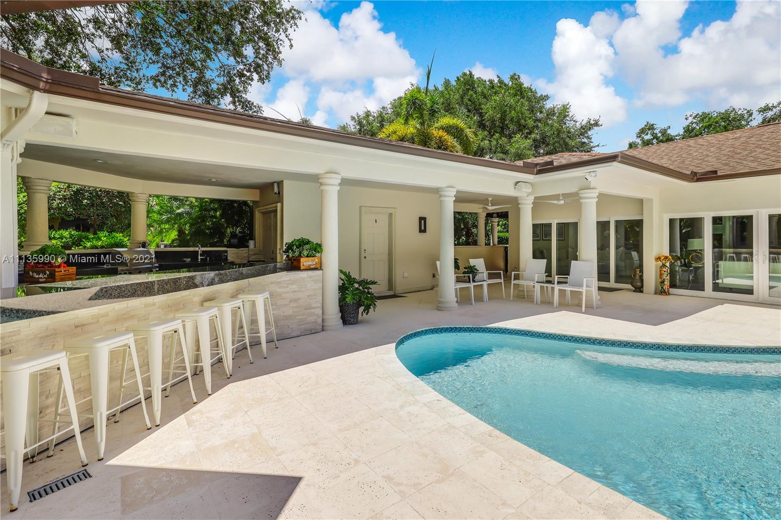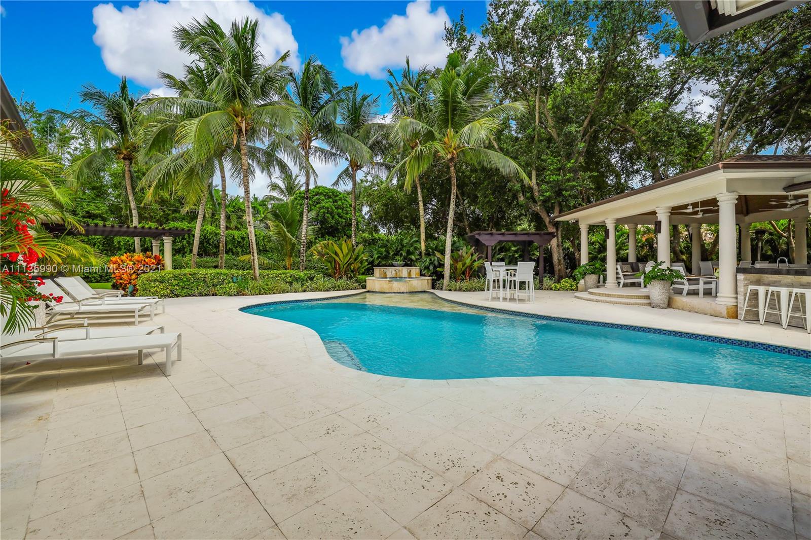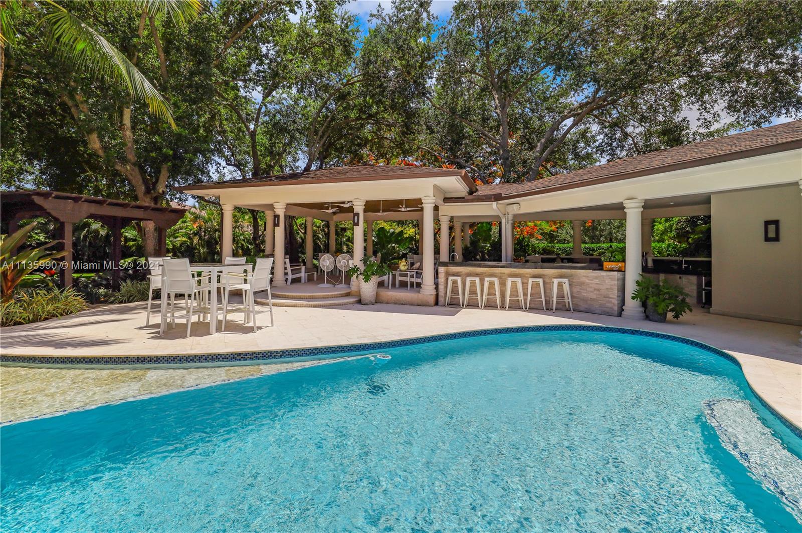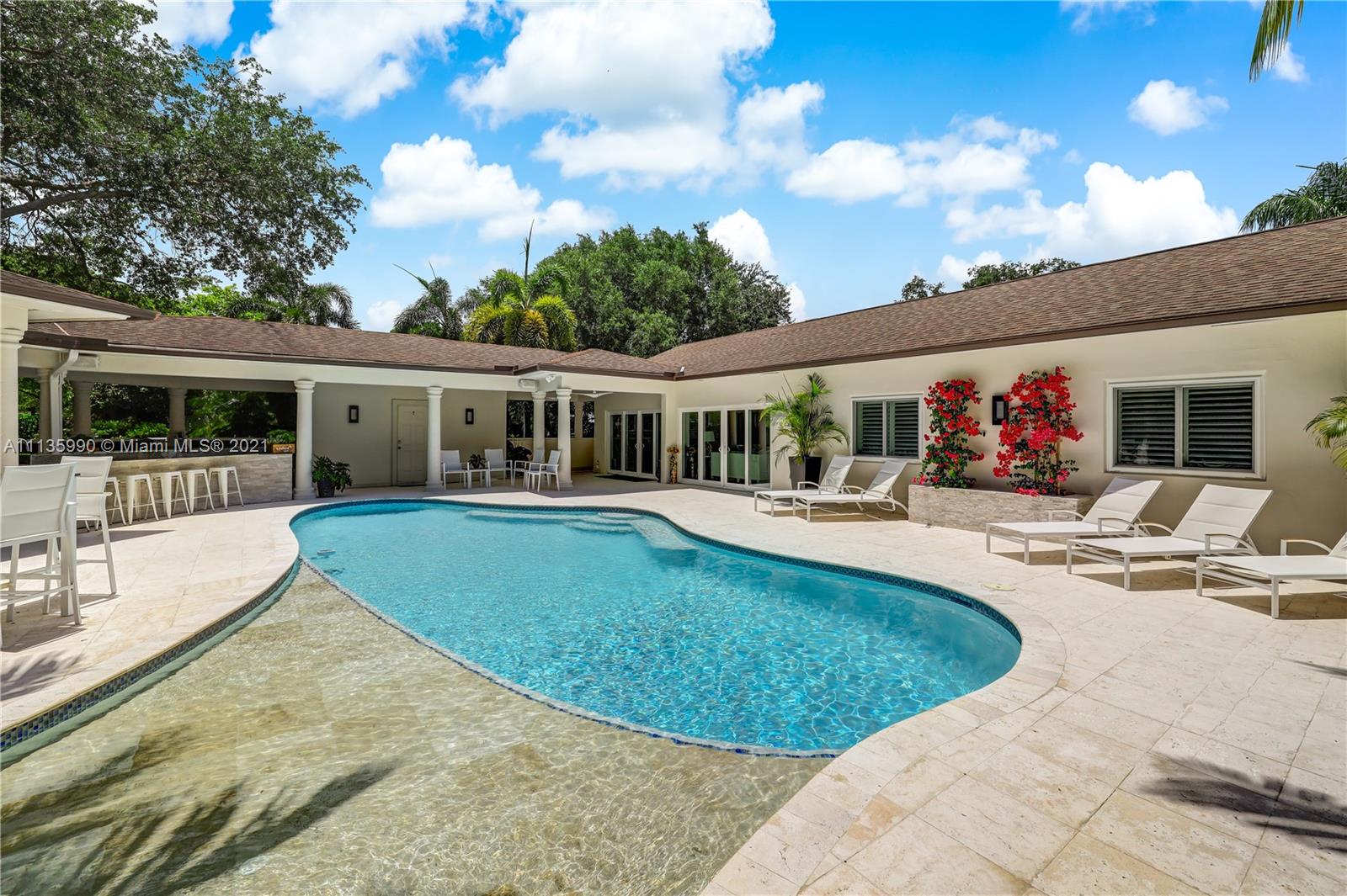 Beautifully updated Pinecrest property features 5 bedrooms and 6.5 baths. The residence sits on a lovely acre lot covered with beautiful trees. The main house features 3 bedrooms and 3.5 baths, a family room, and a formal dining, living area. The charming separate guest house has 2 additional bedrooms and full baths, as well as a kitchen and living room. The yard offers wonderful entertaining spaces: A large gazebo, a fire pit, generator, pool heater, an outdoor kitchen and BBQ, and a separate cabana bath. Note: SQ FT is larger than tax roll, along with beds/baths.