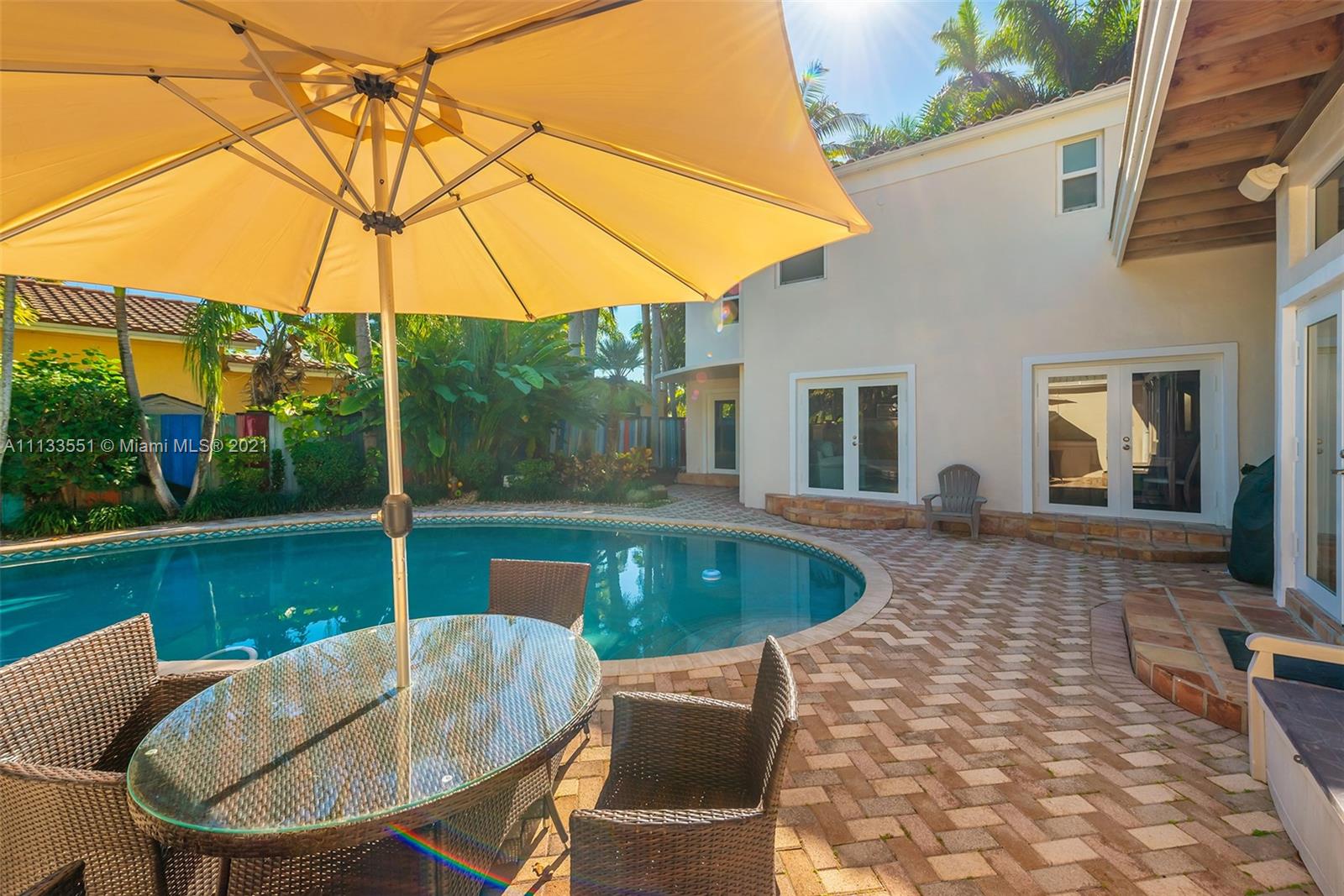 Hollywood Lakes Two-story Tropical Oasis. Warm and inviting sunlit interior with lots of character and charm featuring large family room, dining room and entertainer’s kitchen, lots of entertainment spaces including a Florida sunroom and living room making for great family living. Large fenced and private backyard built to entertain with large pool and mature & lush landscaping. Impact windows and French doors throughout. Home exemplifies elegance and comfort. Features 5 Bedrooms, 3.5 Baths (Two Bedrooms on First Floor). Convenient Rear alley access. Situated in the heart of Hollywood, 5 minutes to the beach, shops, dining/restaurants.