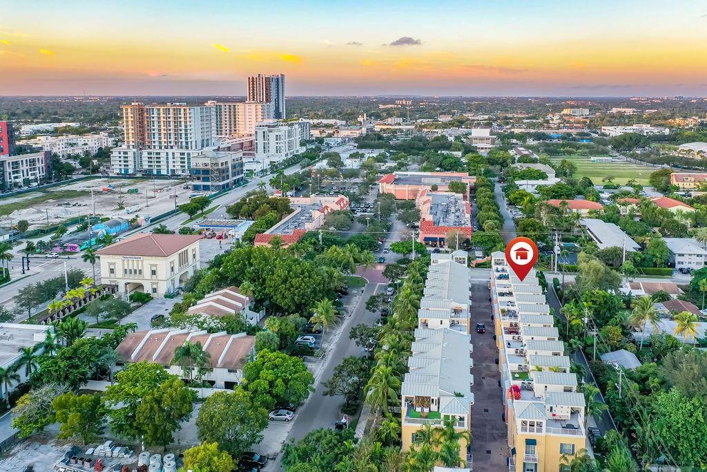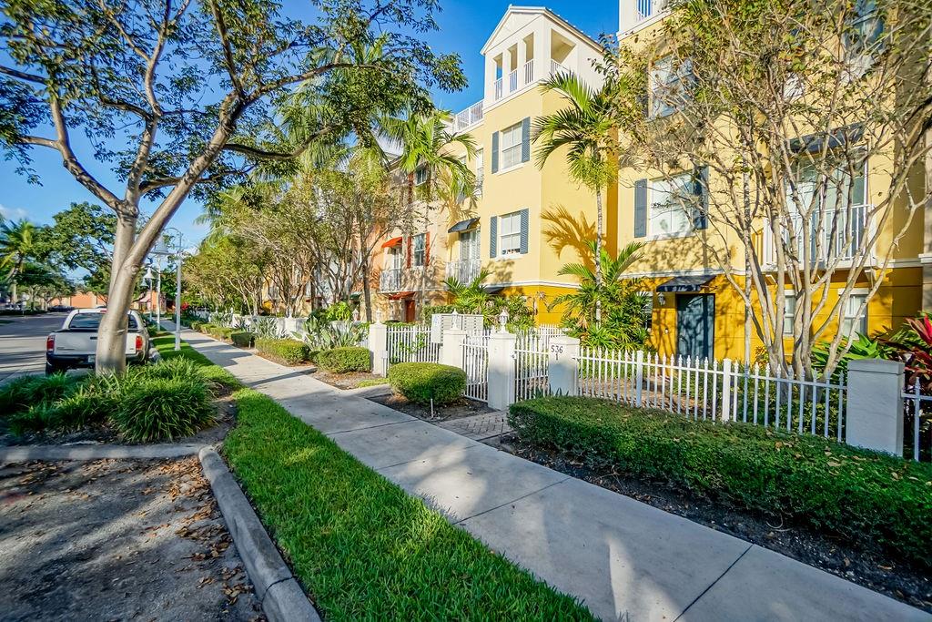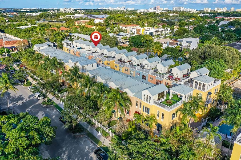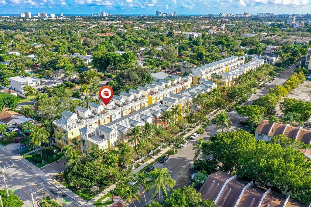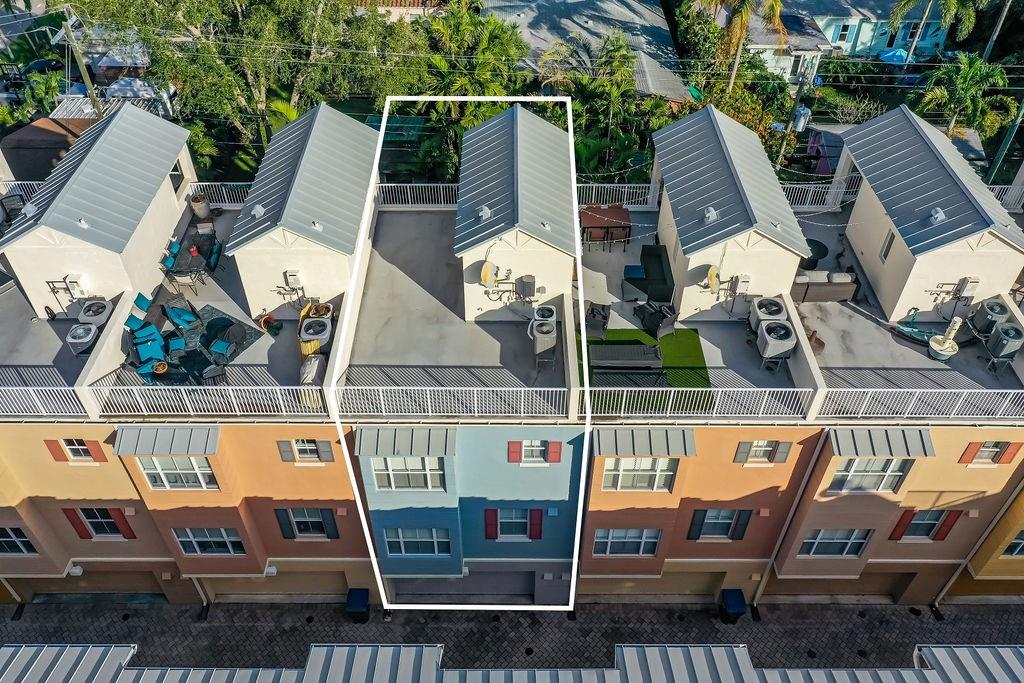 The Ellington in Victoria Park is in the heart of it all! This four level townhome offers one of the best values in Victoria Park. The 1st floor features a 2 car garage, office/den/guest room with ensuite bath. The entire home has been freshly painted and new carpeting installed on the 3rd level. The 2nd level offers volume ceilings, tile flooring, an open living/dining/kitchen area with great natural light to the east. Enjoy a GAS range/oven in the kitchen with stainless steel appliances and fresh white cabinetry. Dual primary bedrooms encompass the 3rd level with ensuite baths. The large rooftop terrace offers sweeping views from east to west! The fee simple townhome offers hurricane impact protection, a gas tankless water heater, a fabulous heated community pool, and gated entry!