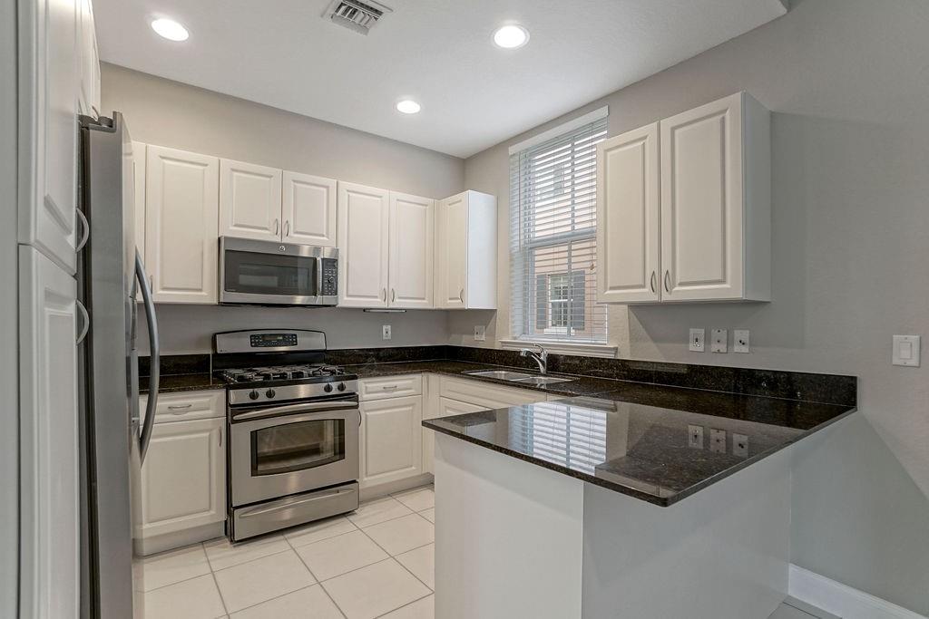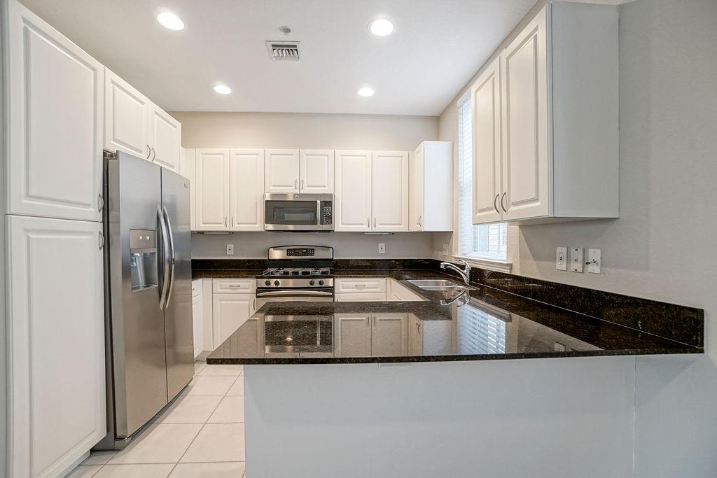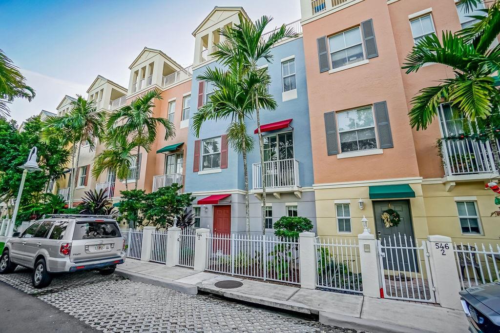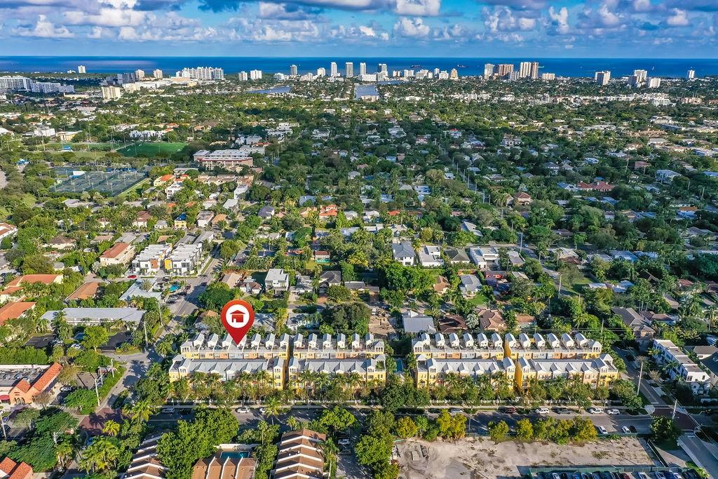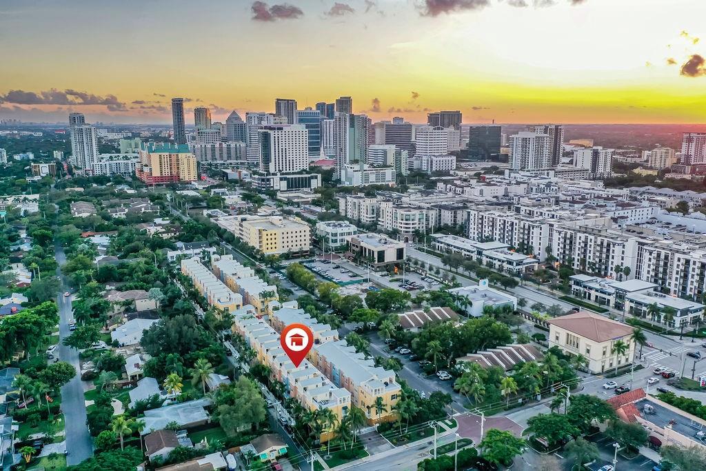 The Ellington in Victoria Park is in the heart of it all! This four level townhome offers one of the best values in Victoria Park. The 1st floor features a 2 car garage, office/den/guest room with ensuite bath. The entire home has been freshly painted and new carpeting installed on the 3rd level. The 2nd level offers volume ceilings, tile flooring, an open living/dining/kitchen area with great natural light to the east. Enjoy a GAS range/oven in the kitchen with stainless steel appliances and fresh white cabinetry. Dual primary bedrooms encompass the 3rd level with ensuite baths. The large rooftop terrace offers sweeping views from east to west! The fee simple townhome offers hurricane impact protection, a gas tankless water heater, a fabulous heated community pool, and gated entry!