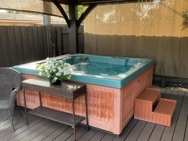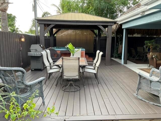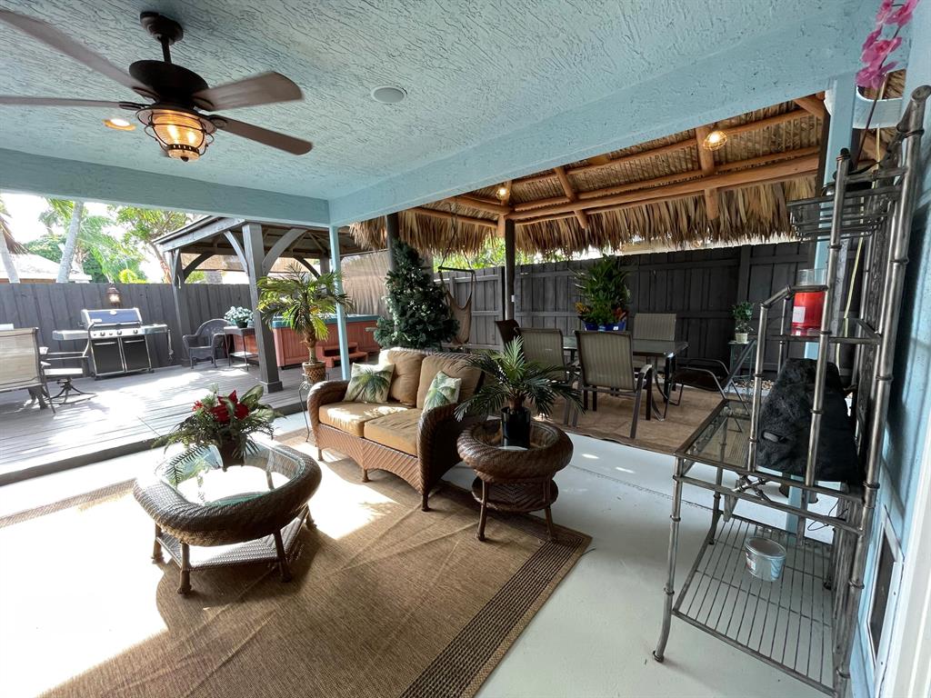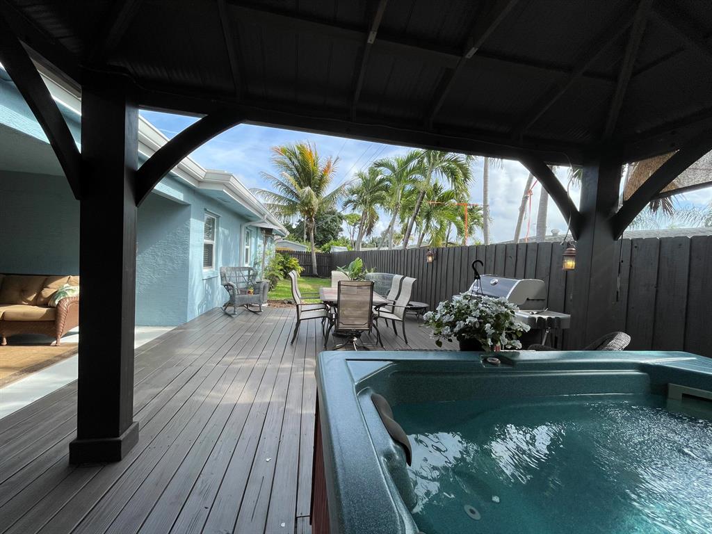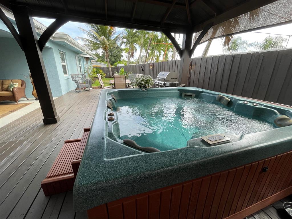 DO NOT miss the opportunity to own this unique oasis in a great location in Cresthaven. NO HOA! Great curb appeal Close drive to the beaches! This beauty has 3 bedrooms and 2 bathrooms with the potential for a 4th bedroom and a 3rd bathroom. The master bedroom is gigantic! It has a walk-in closet, and the master bathroom has a jacuzzi and a separate shower totally remodeled in 2021. This recently upgraded (2020) home offers: a new roof, hurricane impact windows & doors, new flooring, recently painted in and out, and fenced in beautifully landscaped backyard with a jacuzzi under a cedar wood gazebo with a metal roof , a tiki hut built by a Native American Indian, Lanai, deck. The prior owner was an engineer. Gorgeous kitchen with granite countertop. Pet door. Huge laundry room. Murphy bed.