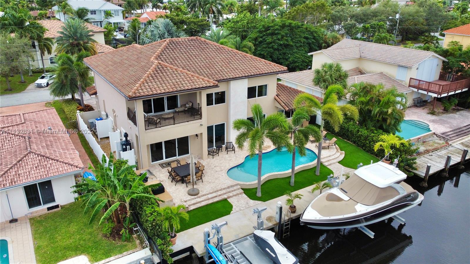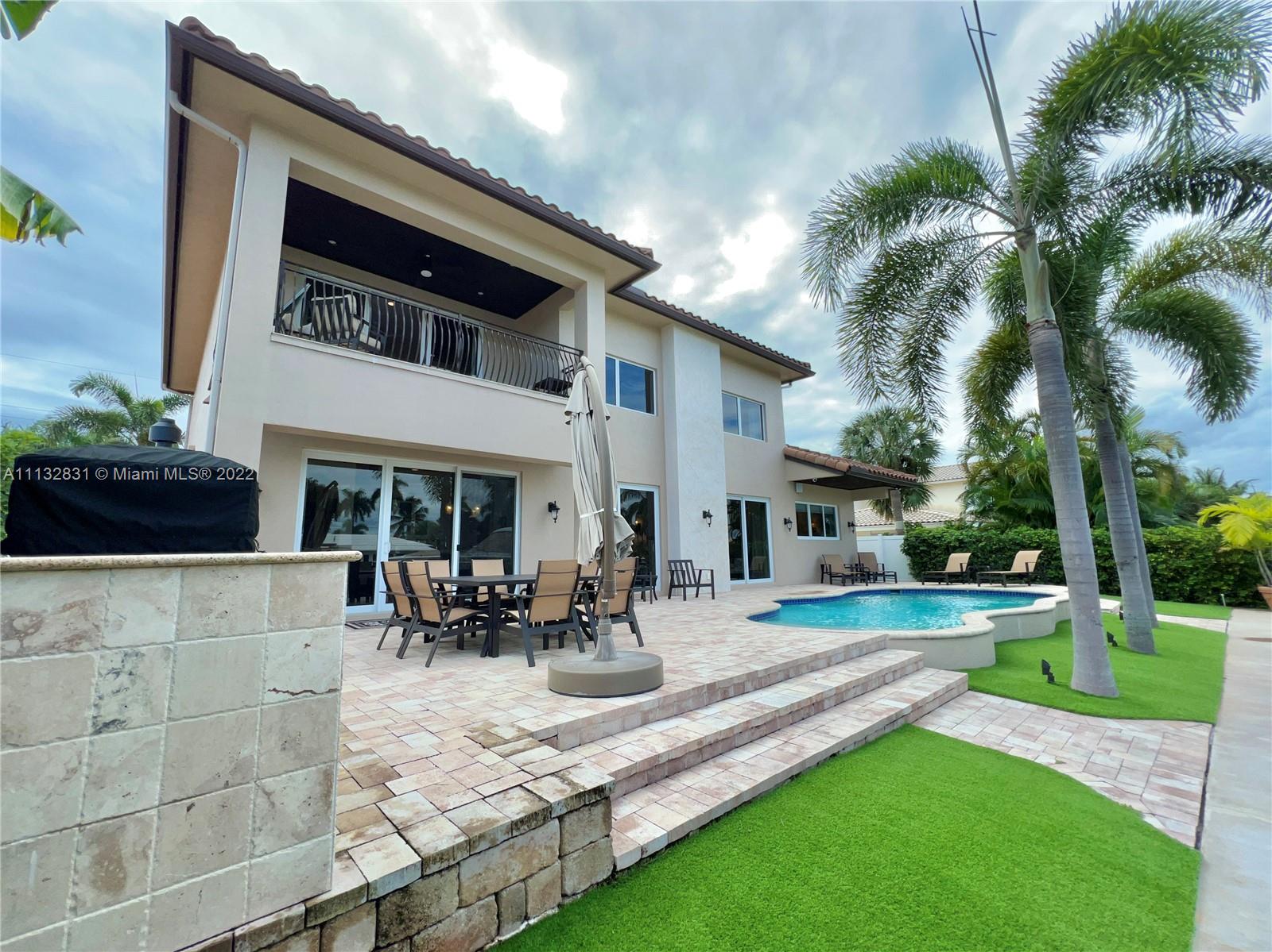 Amazing WATERFRONT/BOATERS PARADISE home that you've been waiting for. Newly built in 2013 with no detail overlooked or expense spared, it is truly turn-key. As you enter this waterfront masterpiece you are greeted with the serenity that comes from living on the water, it is open, bright, and spacious; features include volume coffered ceilings, marble and wood flooring, granite counters, generous loft - perfect study area or office complete with a covered balcony overlooking the water. The outdoor area is perfect for entertaining poolside, complete with built-in grill & pizza oven; bring your yacht, Jet skis and water toys, there are lifts for both, the garage is air conditioned for your land toys; for the family that is looking to enjoy the best of South Florida Living. Bring Offers.