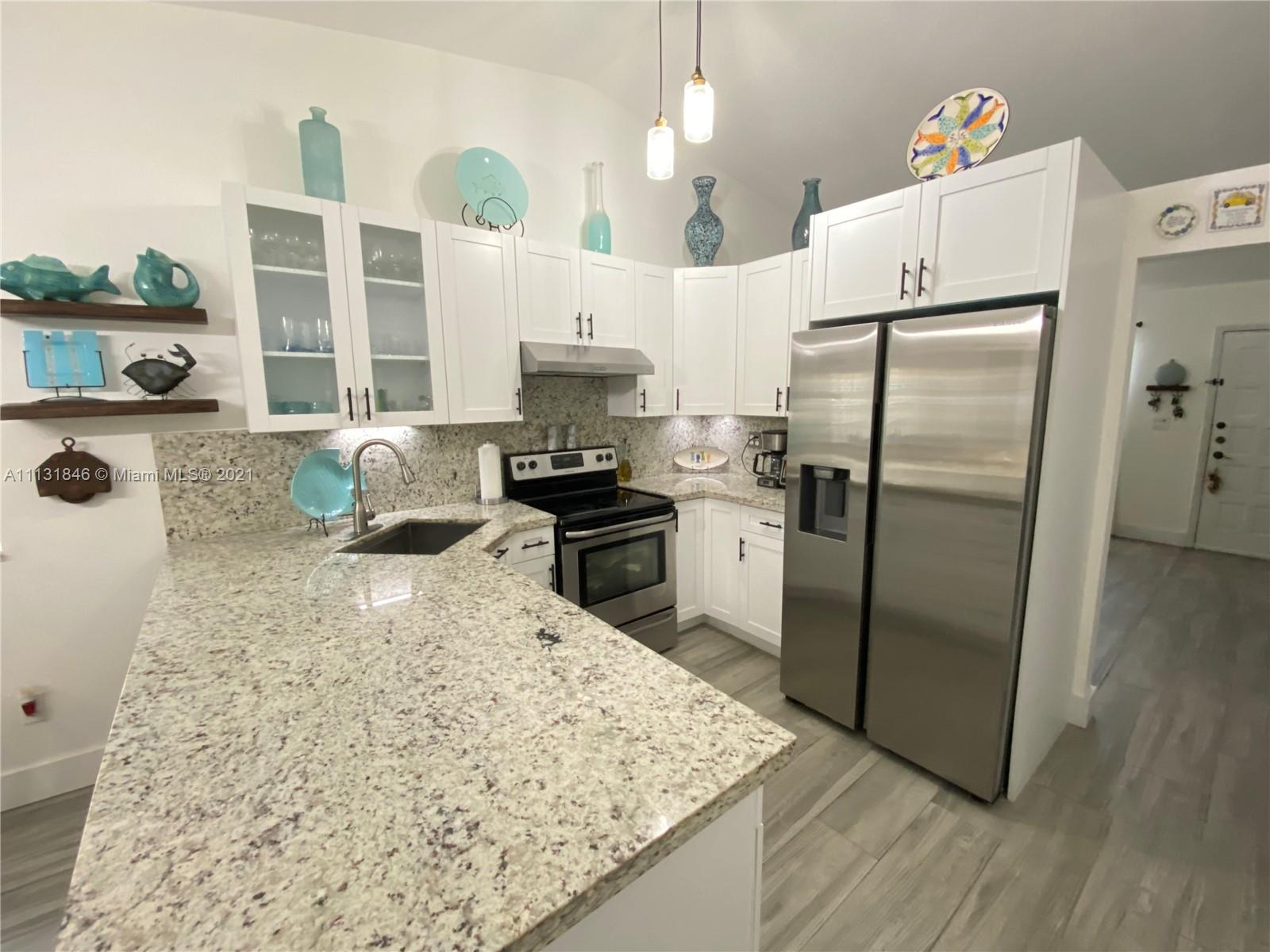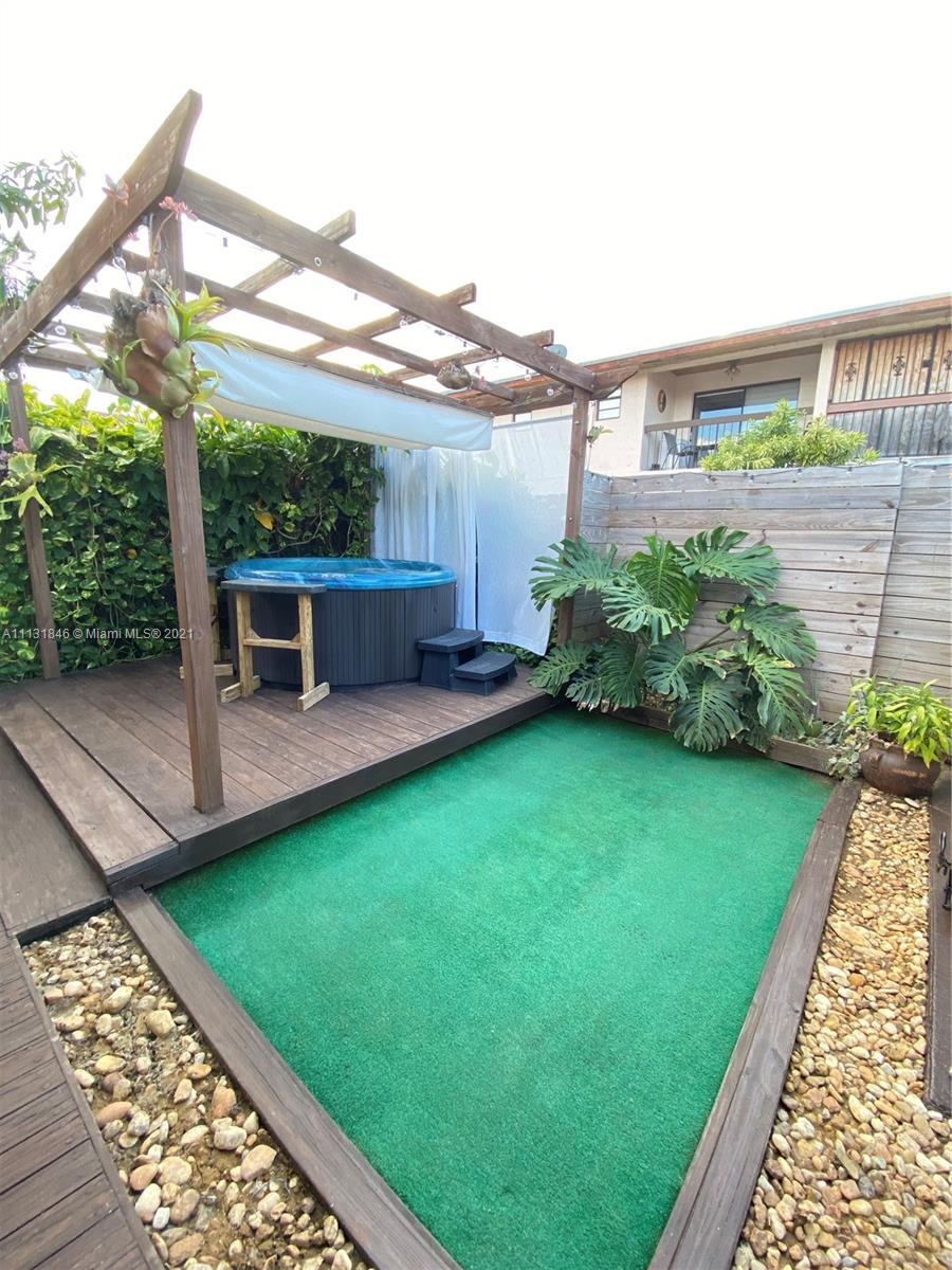 This one of a kind, fully-renovated 2/2 home features wood plank porcelain tile throughout the entire house, spacious kitchen for cooking and entertaining for all your guest to enjoy. Master bedroom with two walk in closets and beautifully upgraded bathroom. Home features an open and inviting floor plan. Walk outside and relax under a covered patio great for entertaining while looking over to your 6 person jacuzzi. You have a full size outdoor kitchen for cooking and grilling. Home has brand new roof, new AC and hurricane panels. No HOA. This beautifully renovated home will not last!