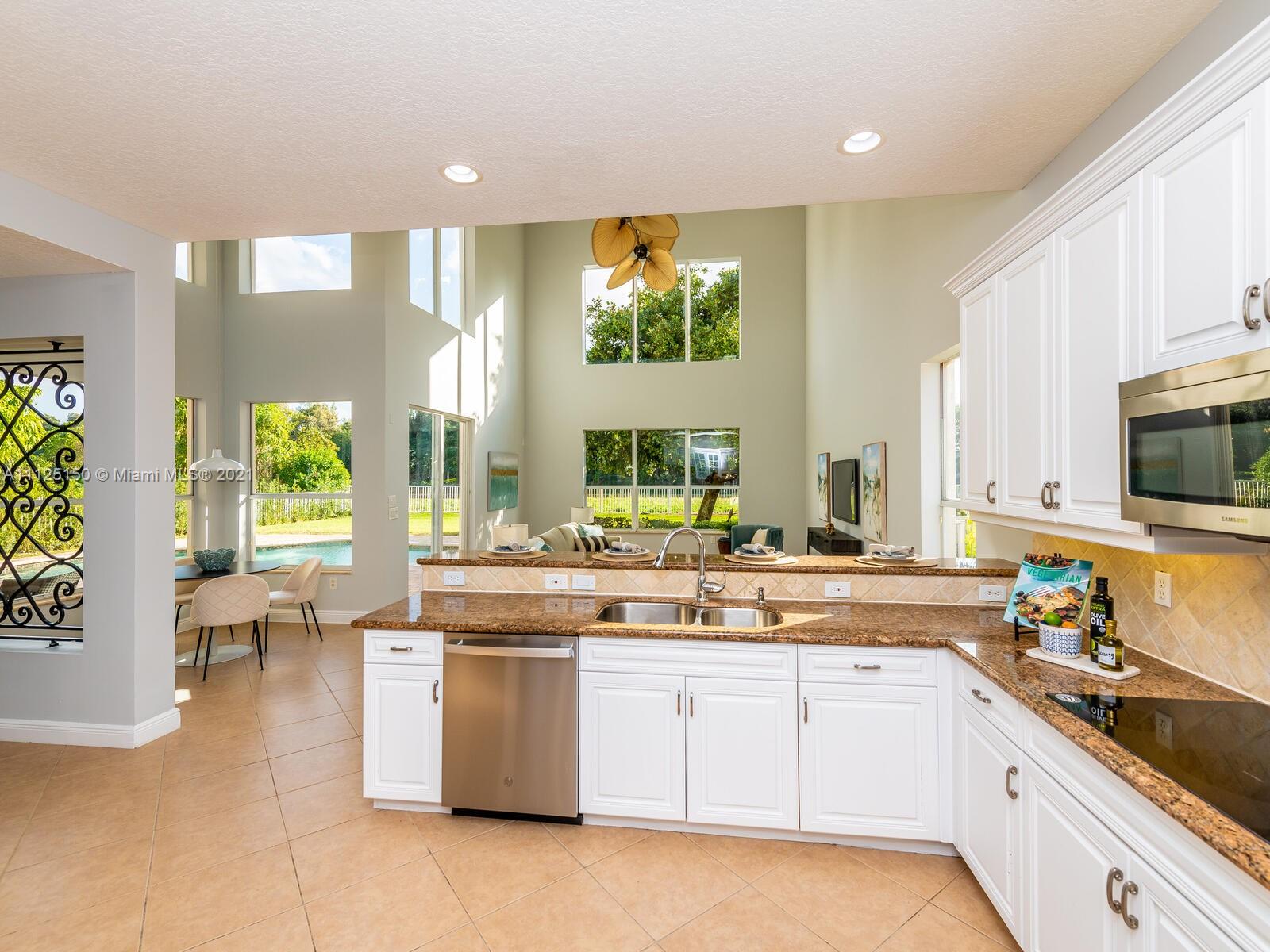 Elegant estate brimming with 3,488 sqft of luxurious interiors in the coveted community of Sunset Lakes offering stunning water views all around you, and resort style amenities. Upon entering, you will find a stately office with rich built-in shelving, and a soaring open living room with floor to ceiling windows and views of the private backyard. A gourmet kitchen opens seamlessly to the great room with 2-story ceilings and a cozy sun filled breakfast nook all which makes for the perfect setting to host large gatherings with sprawling granite countertops, stainless steel appliances including a double wall oven, breakfast bar that comfortably seats 4 and much more. Enjoy all the luxuries of spending time on the large paver patio that surrounds a crystal blue in-ground pool.